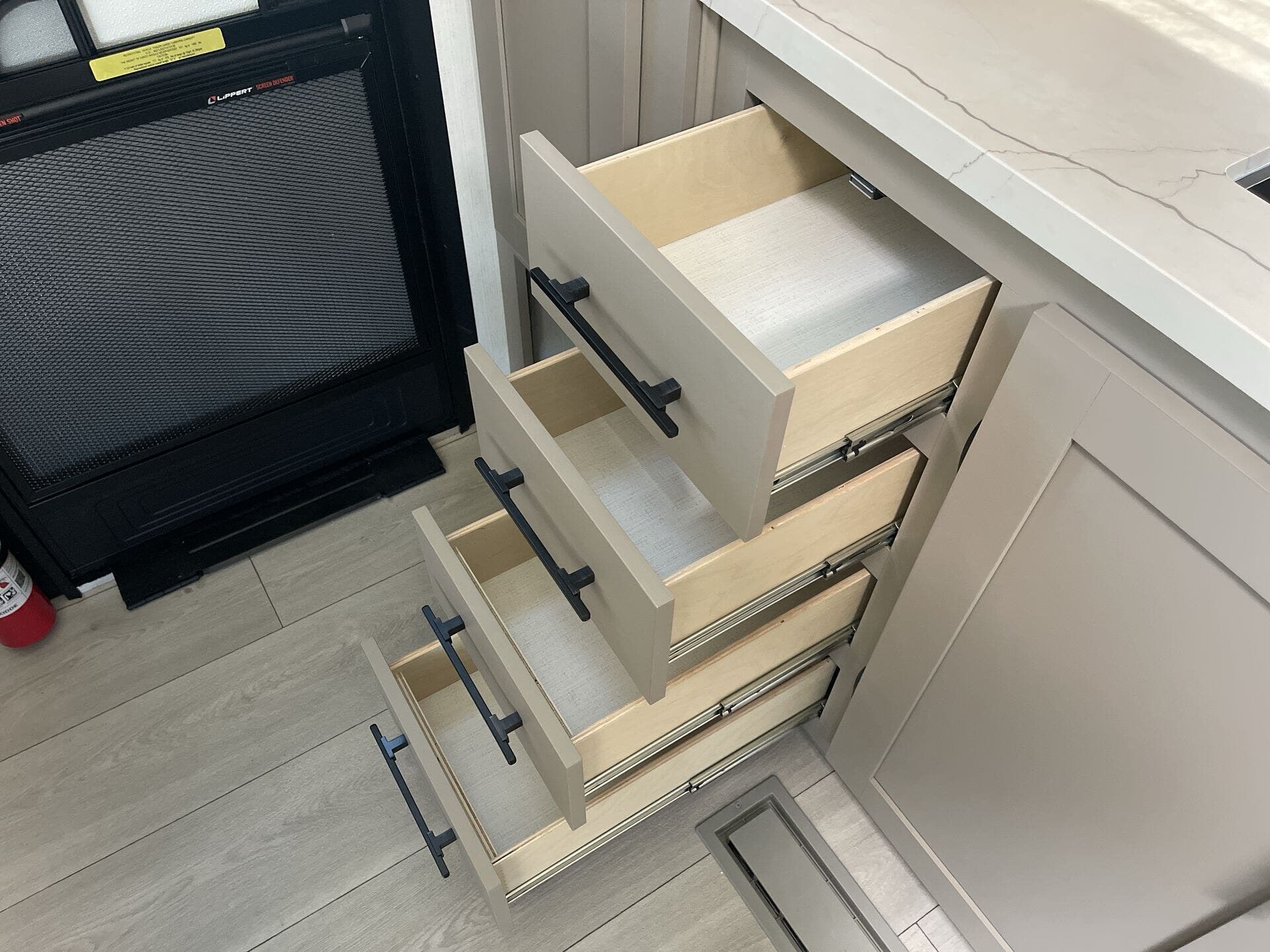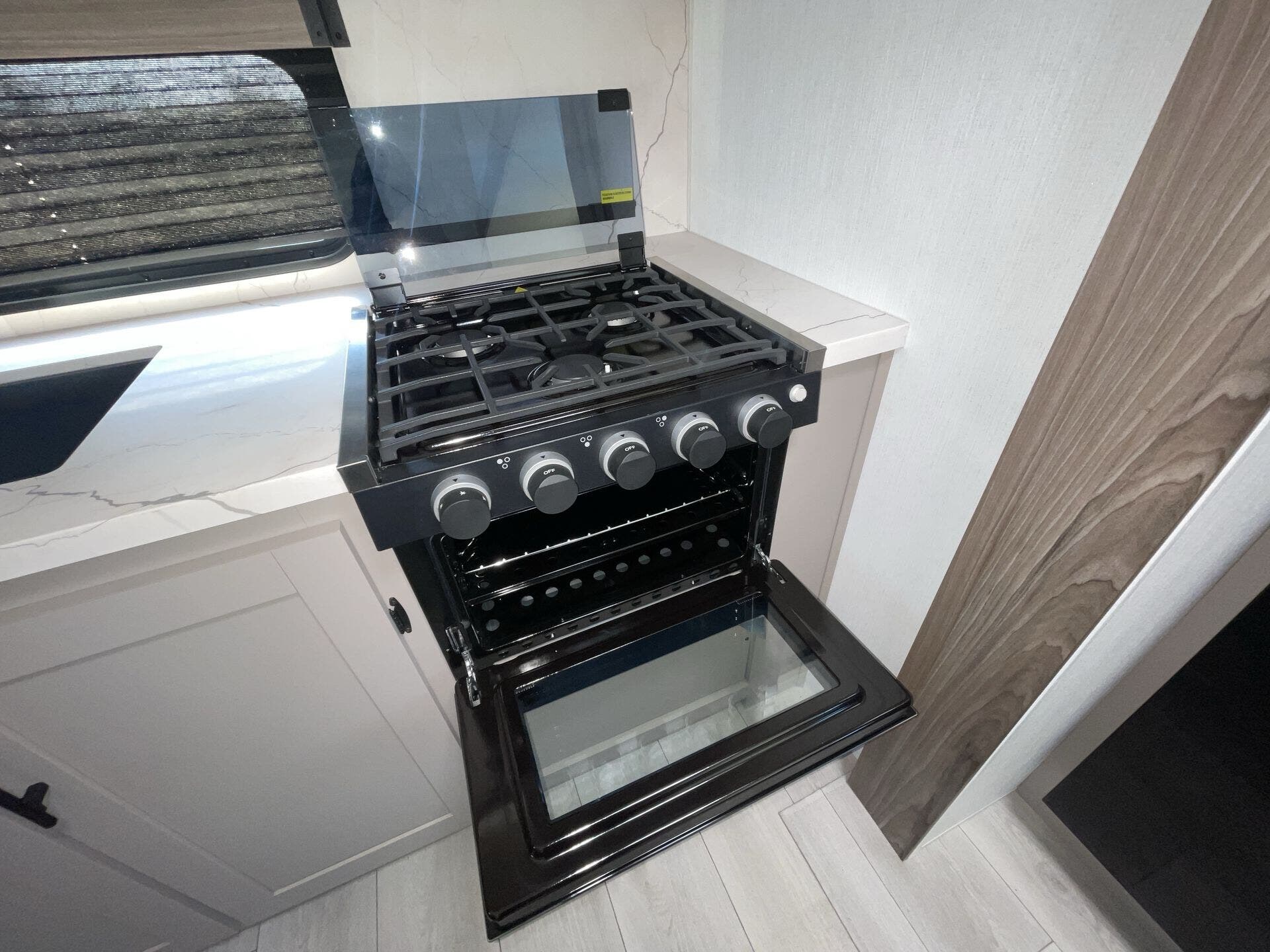 - Fireplace, microwave, oven, and refrigerator to enhance the galley and living area