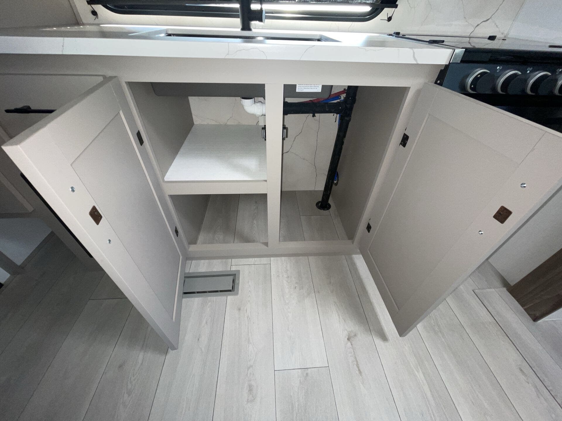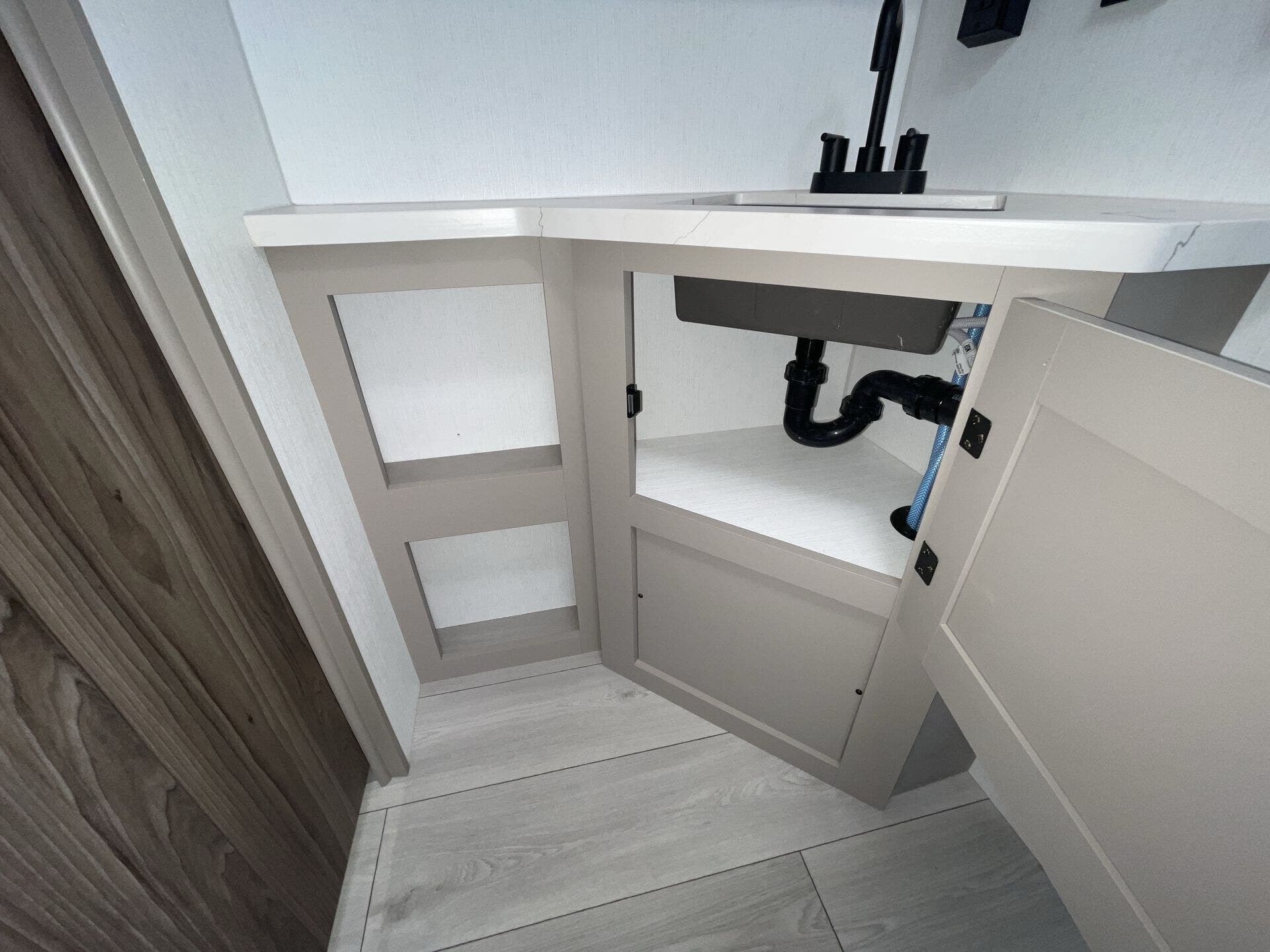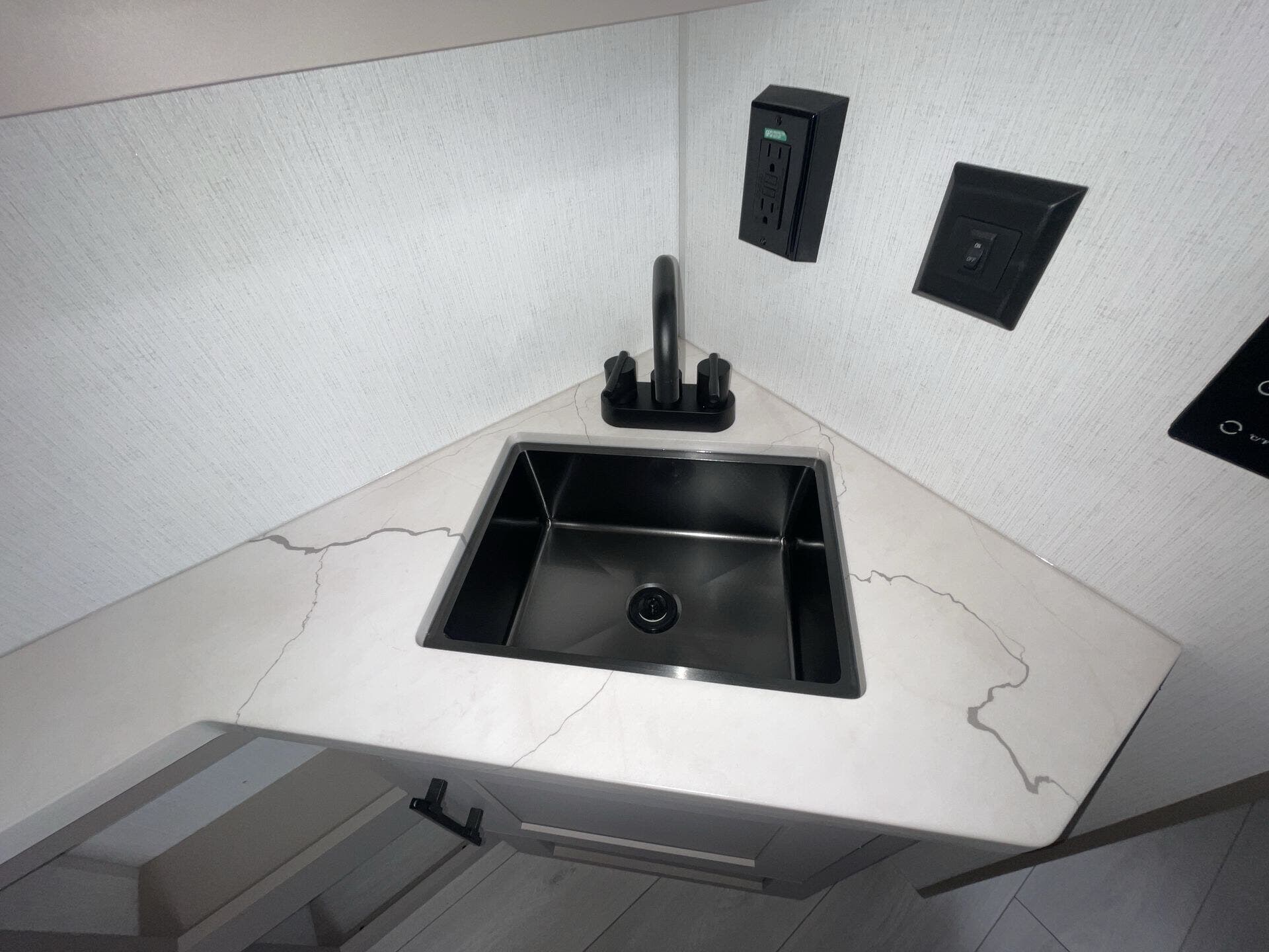 - Fresh water: 45 gallons • Grey water: 64 gallons • Black water: 32 gallons