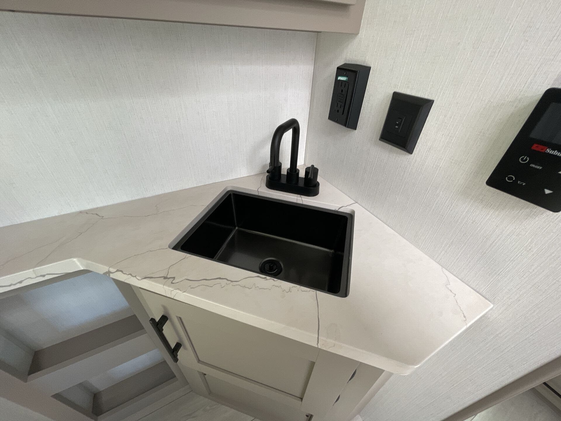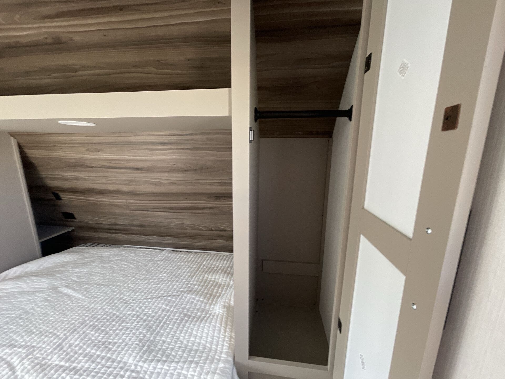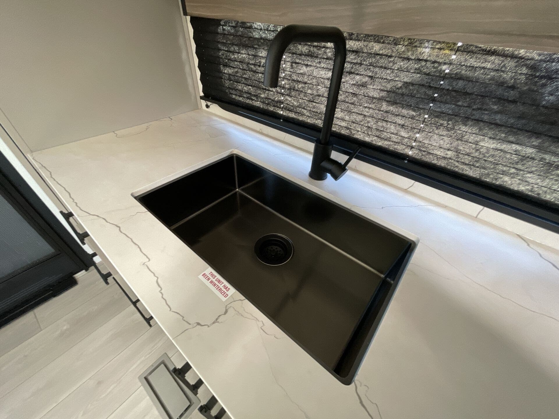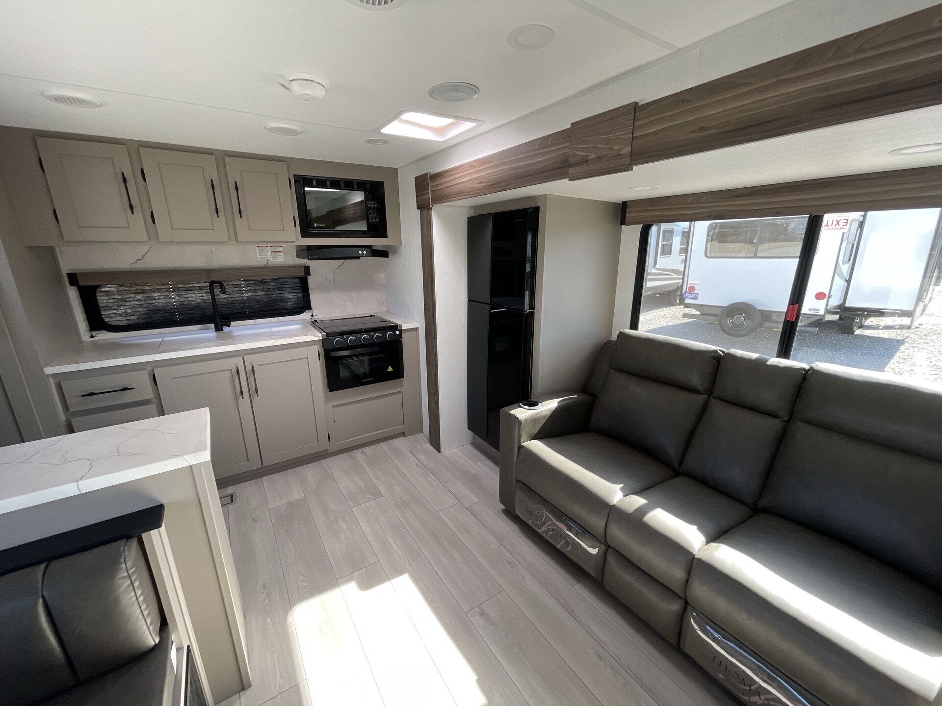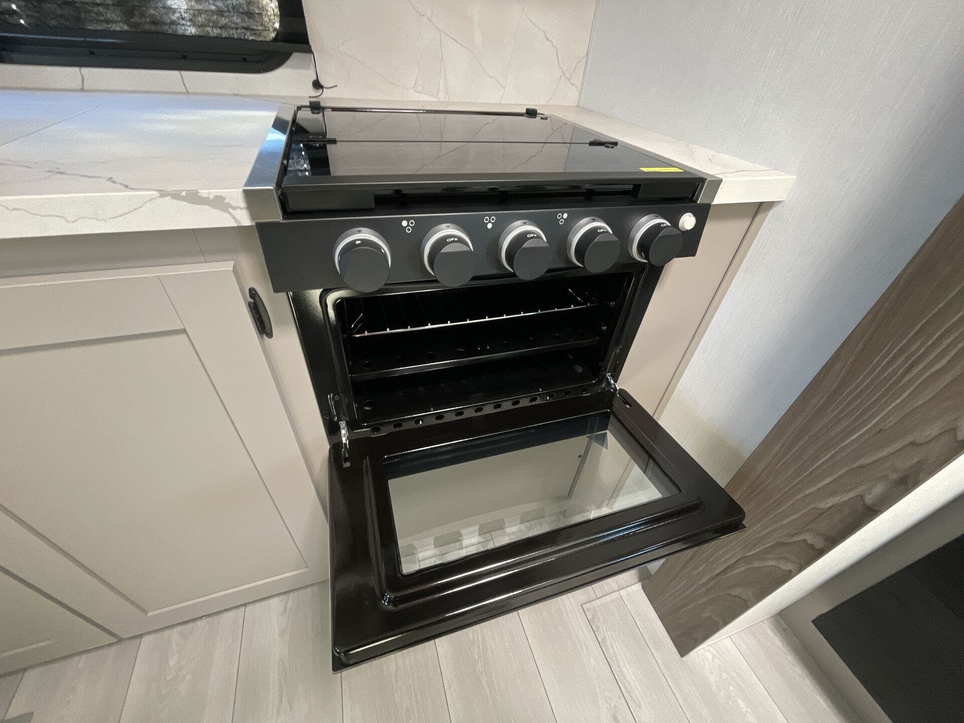 Inside, the rear kitchen layout provides a functional and inviting living space, giving you plenty of room to cook, relax, and entertain. The kitchen is thoughtfully equipped with modern appliances, generous counter space, and ample storage, while the cozy seating area and comfortable sleeping quarters create a welcoming atmosphere. Bright interiors and quality finishes add a residential feel that elevates every stay.