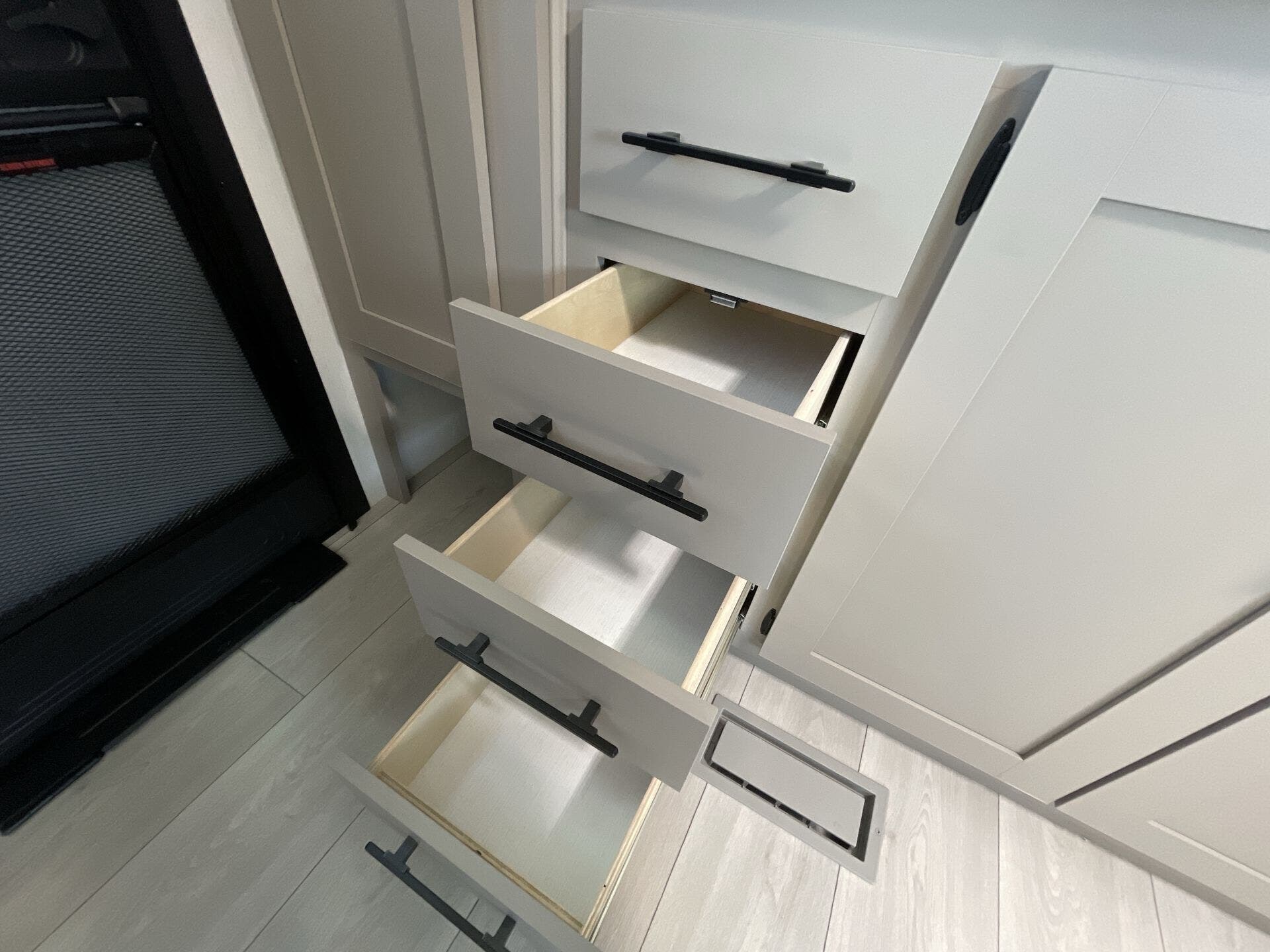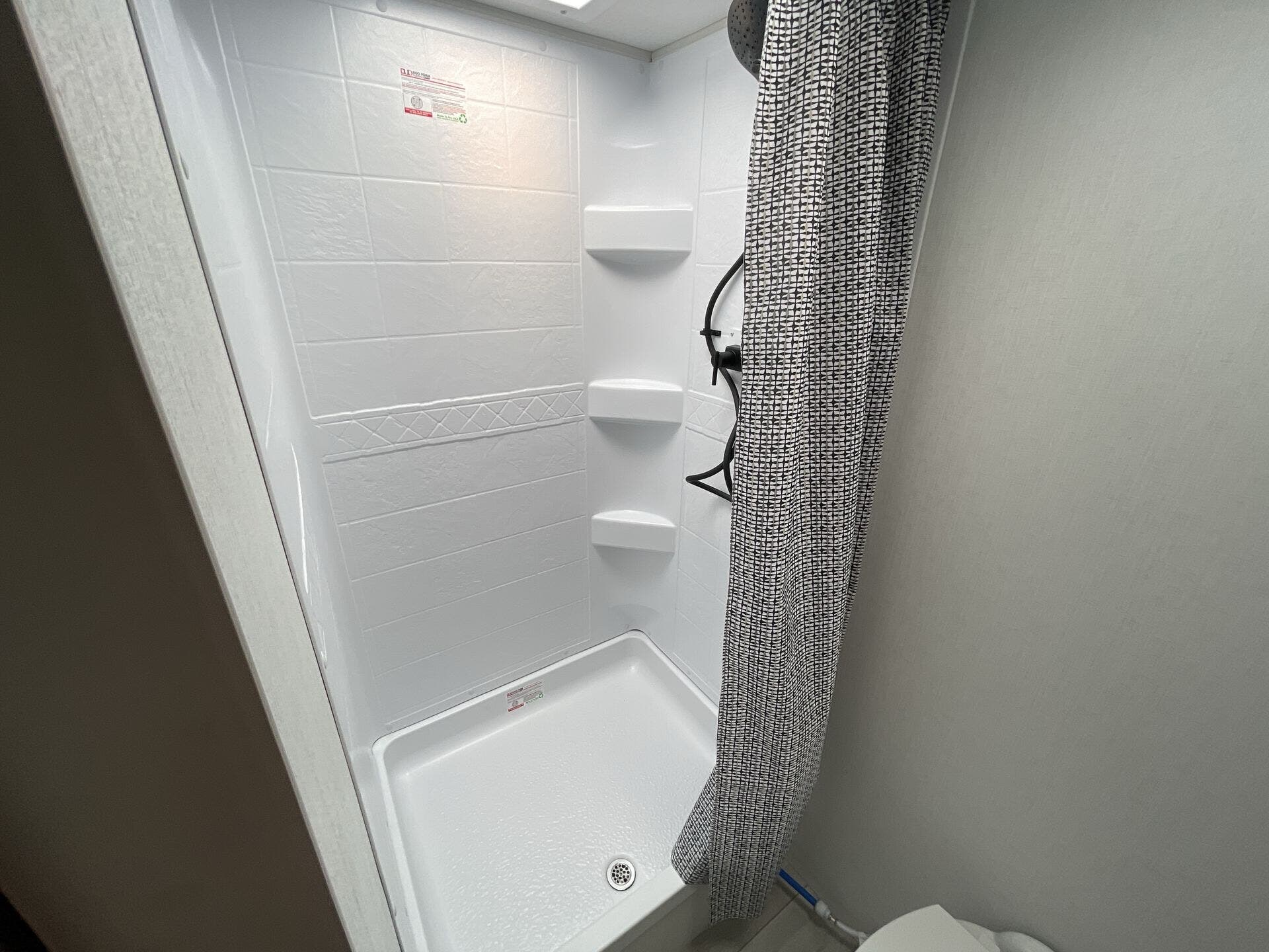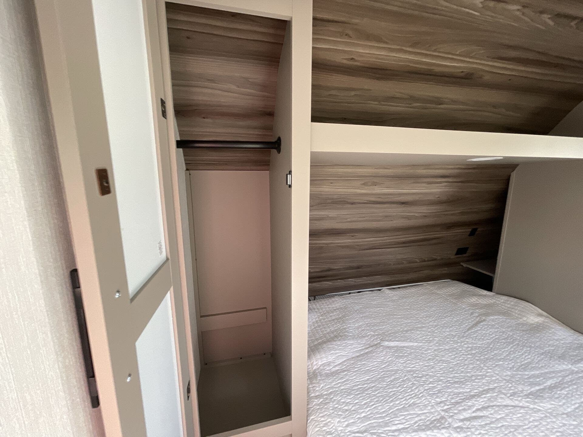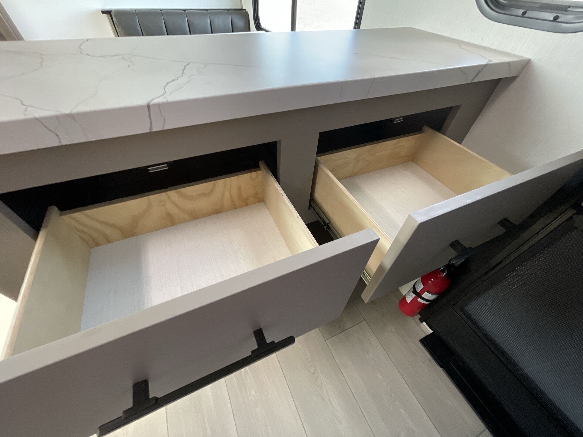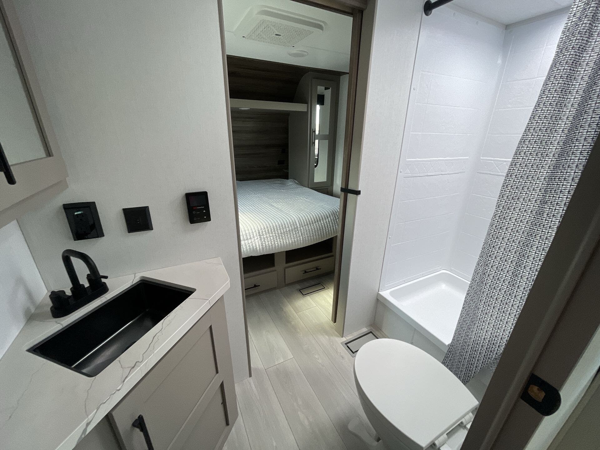 Inside, the rear kitchen layout provides a functional and inviting living space, giving you plenty of room to cook, relax, and entertain. The kitchen is thoughtfully equipped with modern appliances, generous counter space, and ample storage, while the cozy seating area and comfortable sleeping quarters create a welcoming atmosphere. Bright interiors and quality finishes add a residential feel that elevates every stay.