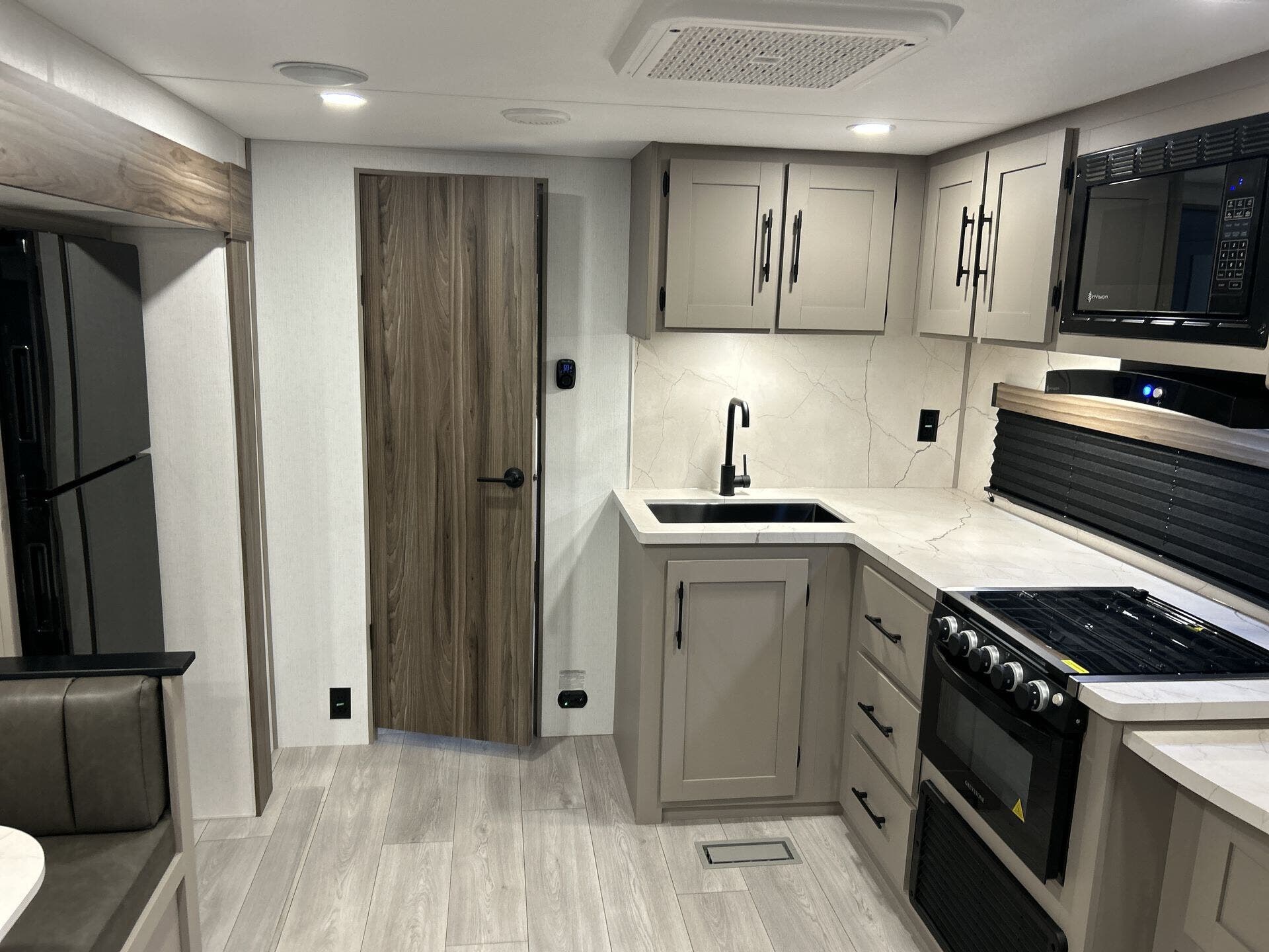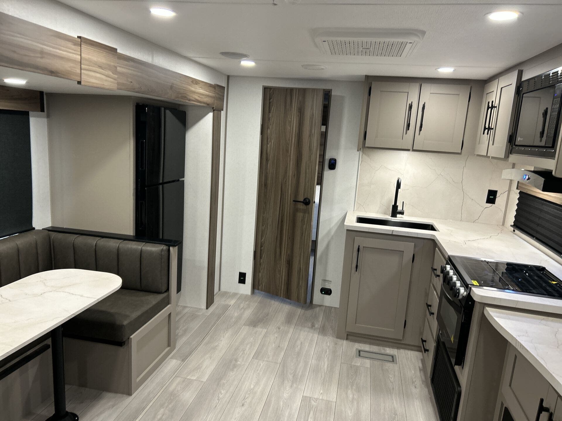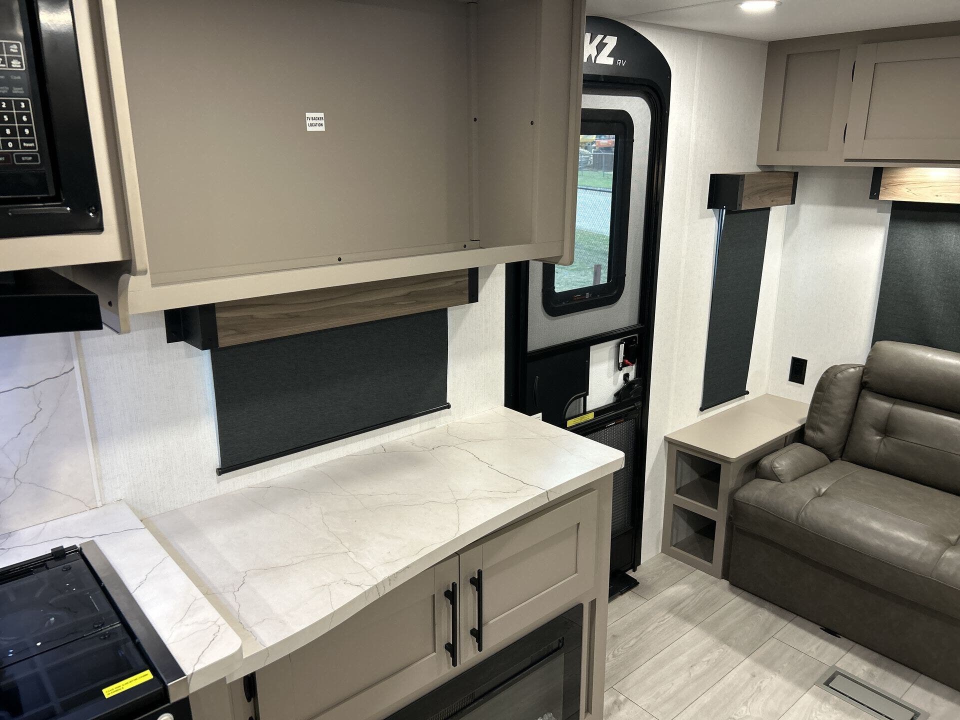 The 251RL floorplan showcases a thoughtful layout: Front Bedroom, Mid Kitchen, and Rear Living Area. A single slideout expands the living space to enhance comfort during extended stays. Inside, you’ll find a cozy Queen bed, a dedicated living area for relaxing evenings, a fireplace for ambience, and a well-equipped kitchen that makes meal prep easy on the road. The layout provides ample seating and storage, making it ideal for families or groups up to six sleepers.