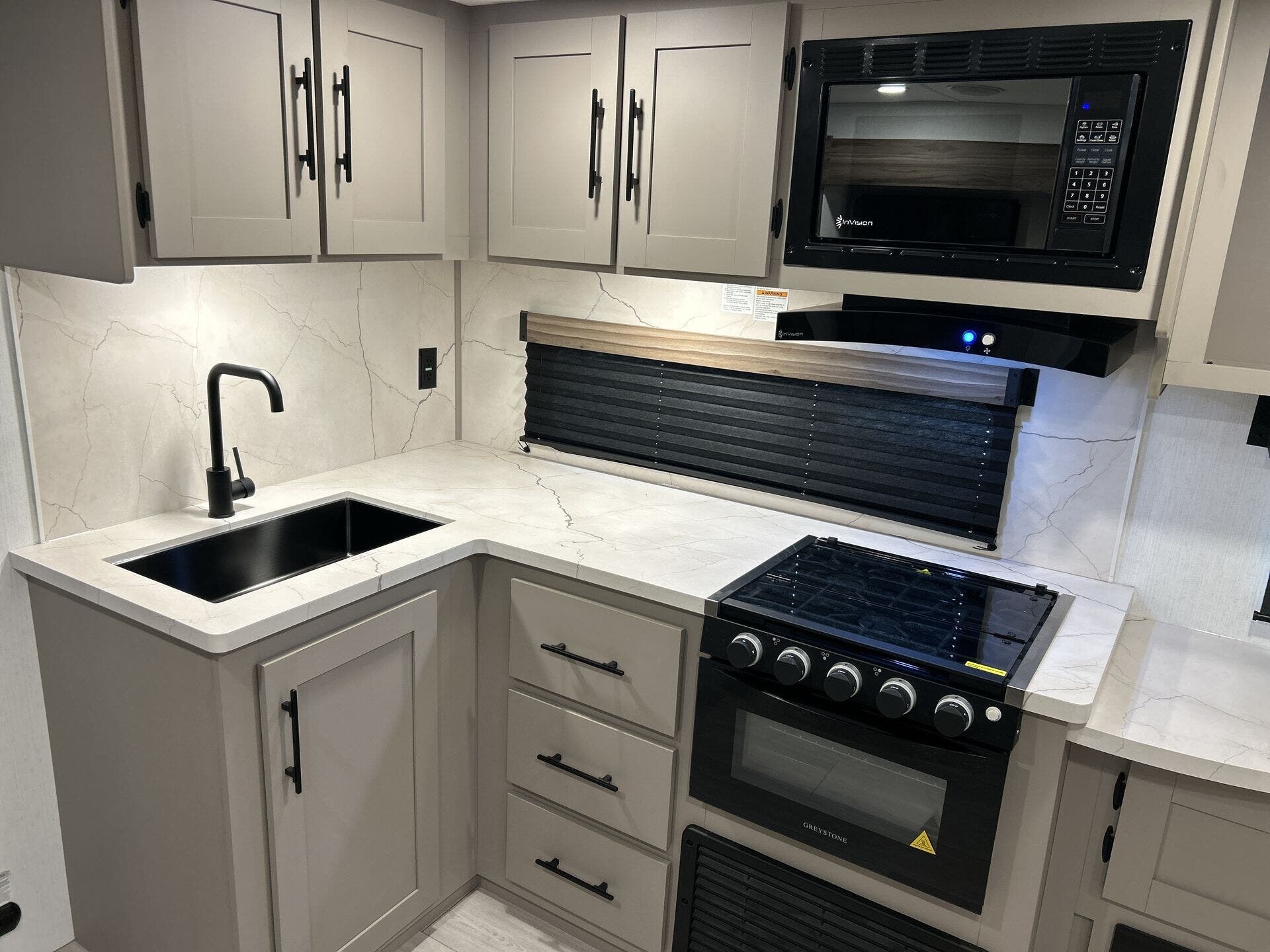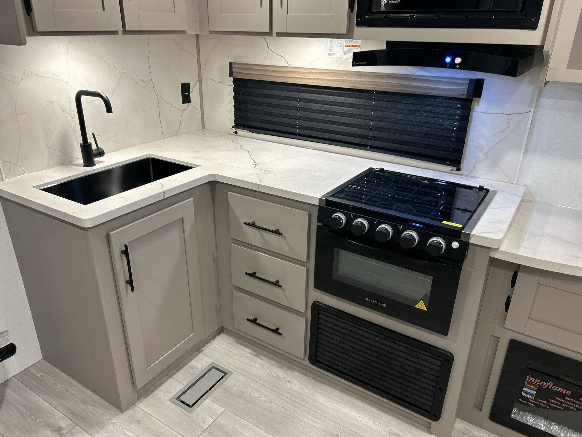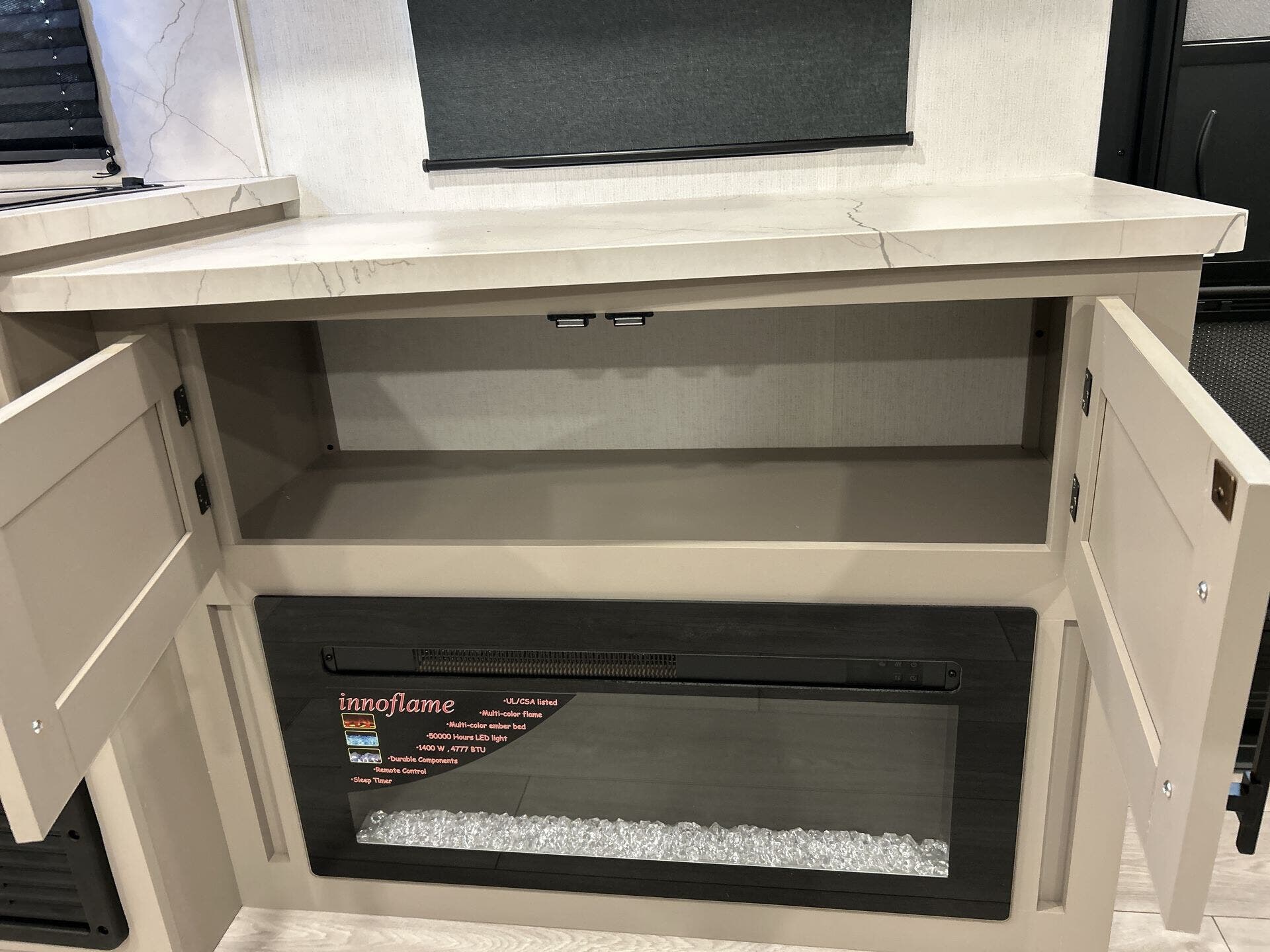 The 251RL floorplan showcases a thoughtful layout: Front Bedroom, Mid Kitchen, and Rear Living Area. A single slideout expands the living space to enhance comfort during extended stays. Inside, you’ll find a cozy Queen bed, a dedicated living area for relaxing evenings, a fireplace for ambience, and a well-equipped kitchen that makes meal prep easy on the road. The layout provides ample seating and storage, making it ideal for families or groups up to six sleepers.