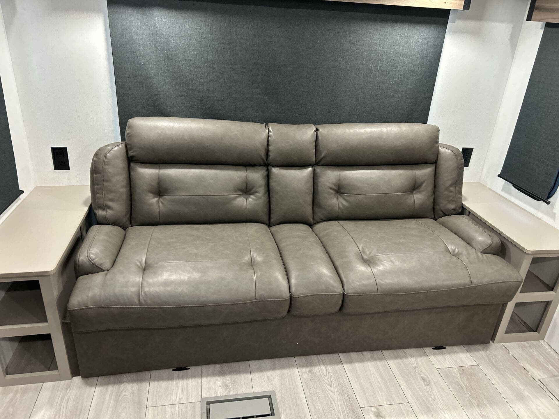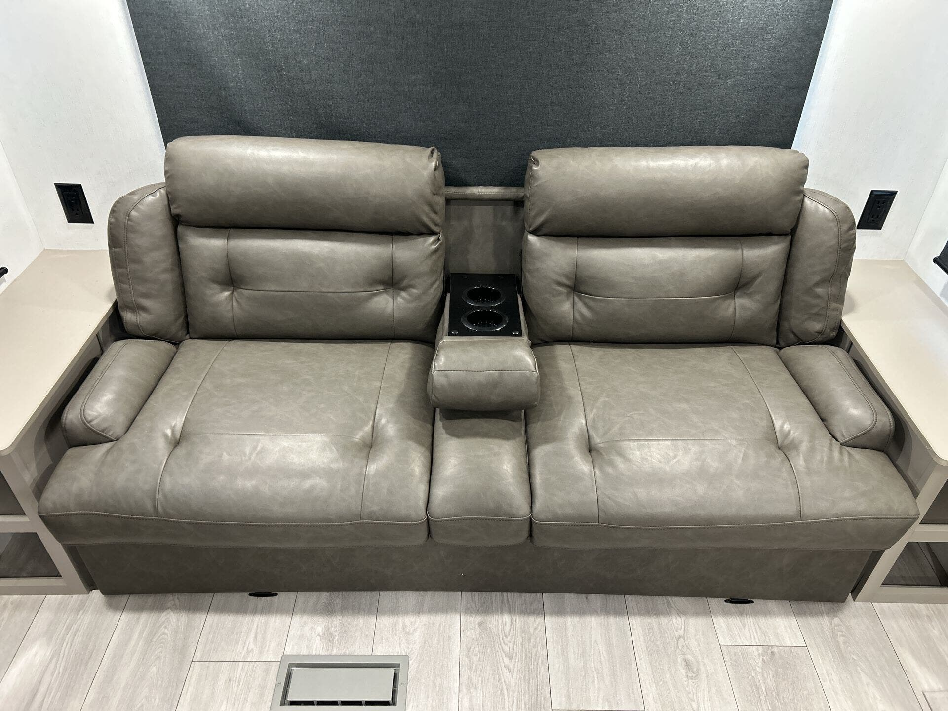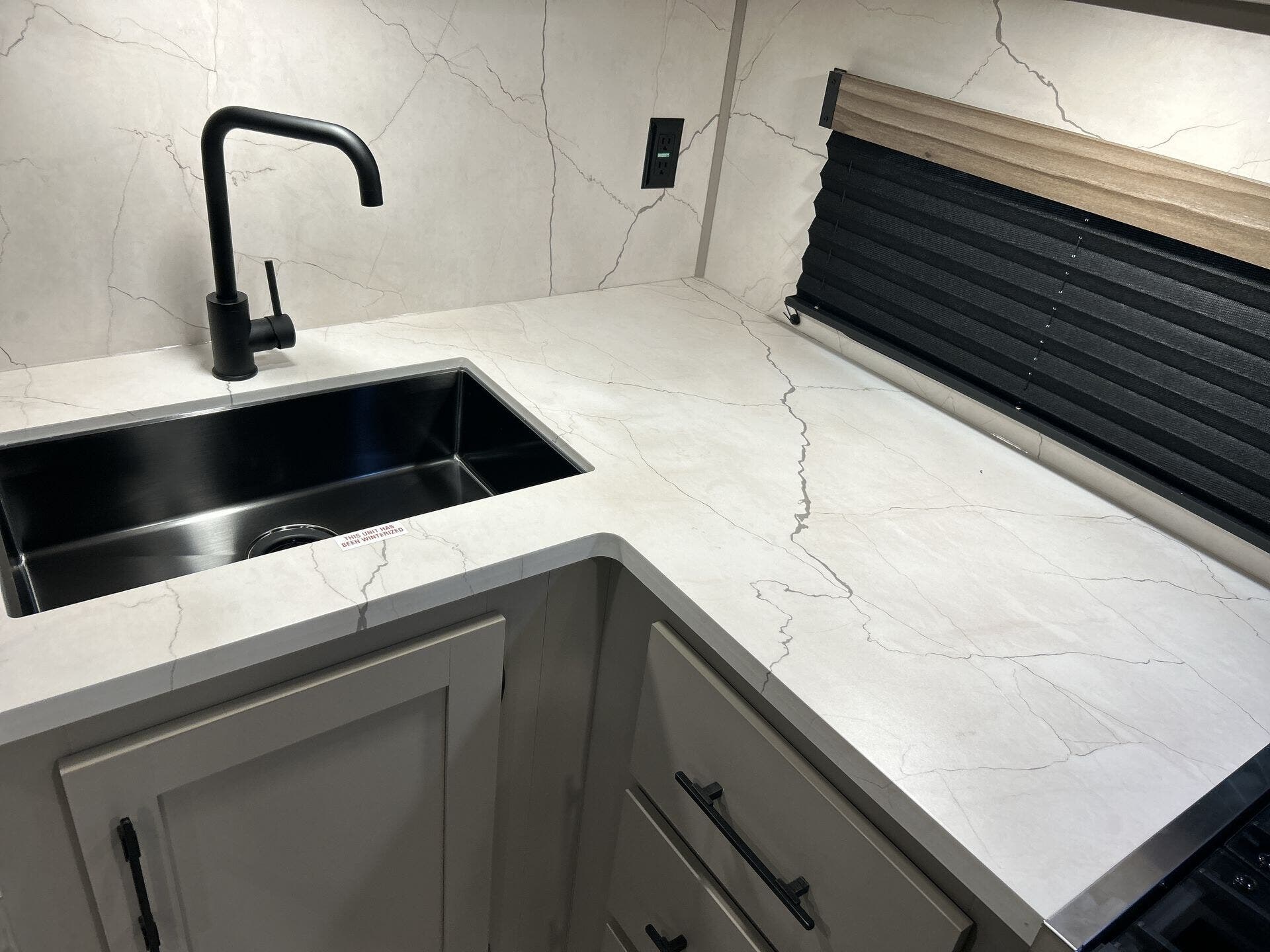 This travel trailer is packed with features that enhance everyday living on the road. It includes a microwave, oven, and refrigerator to simplify meal prep, plus a TV with an antenna for entertaining downtime. Safety is a priority with CO and LP detectors, a fire extinguisher, smoke detector, and a medicine cabinet for organizing essentials. The exterior amenities—power awning, outside kitchen, and ladder—make outdoor living convenient, while the enclosed underbelly helps protect utilities in varied weather conditions.