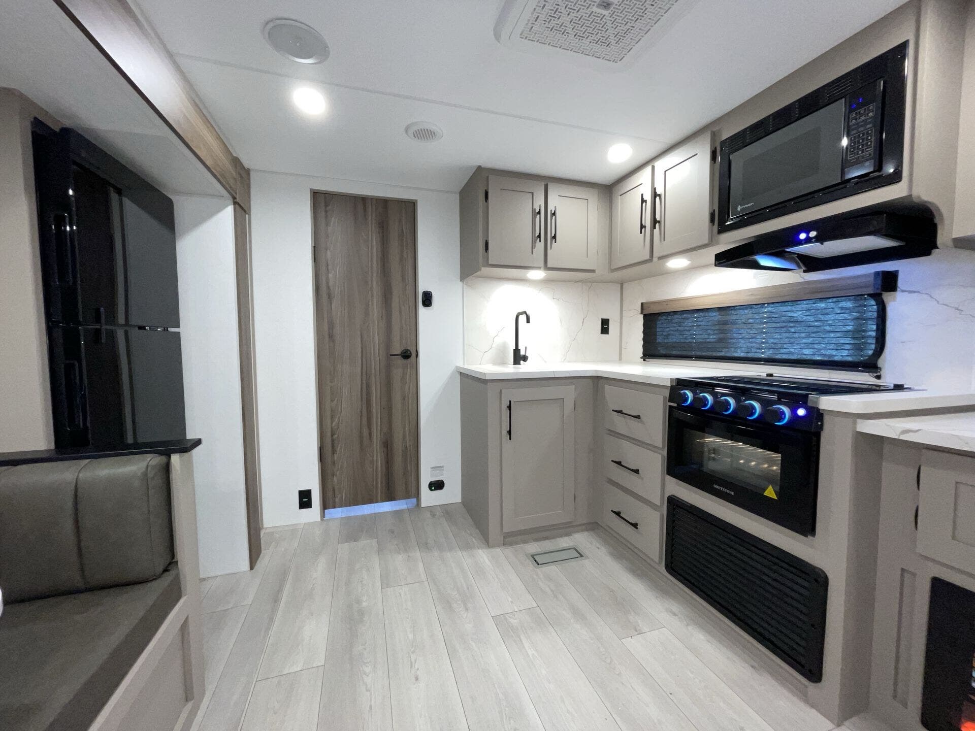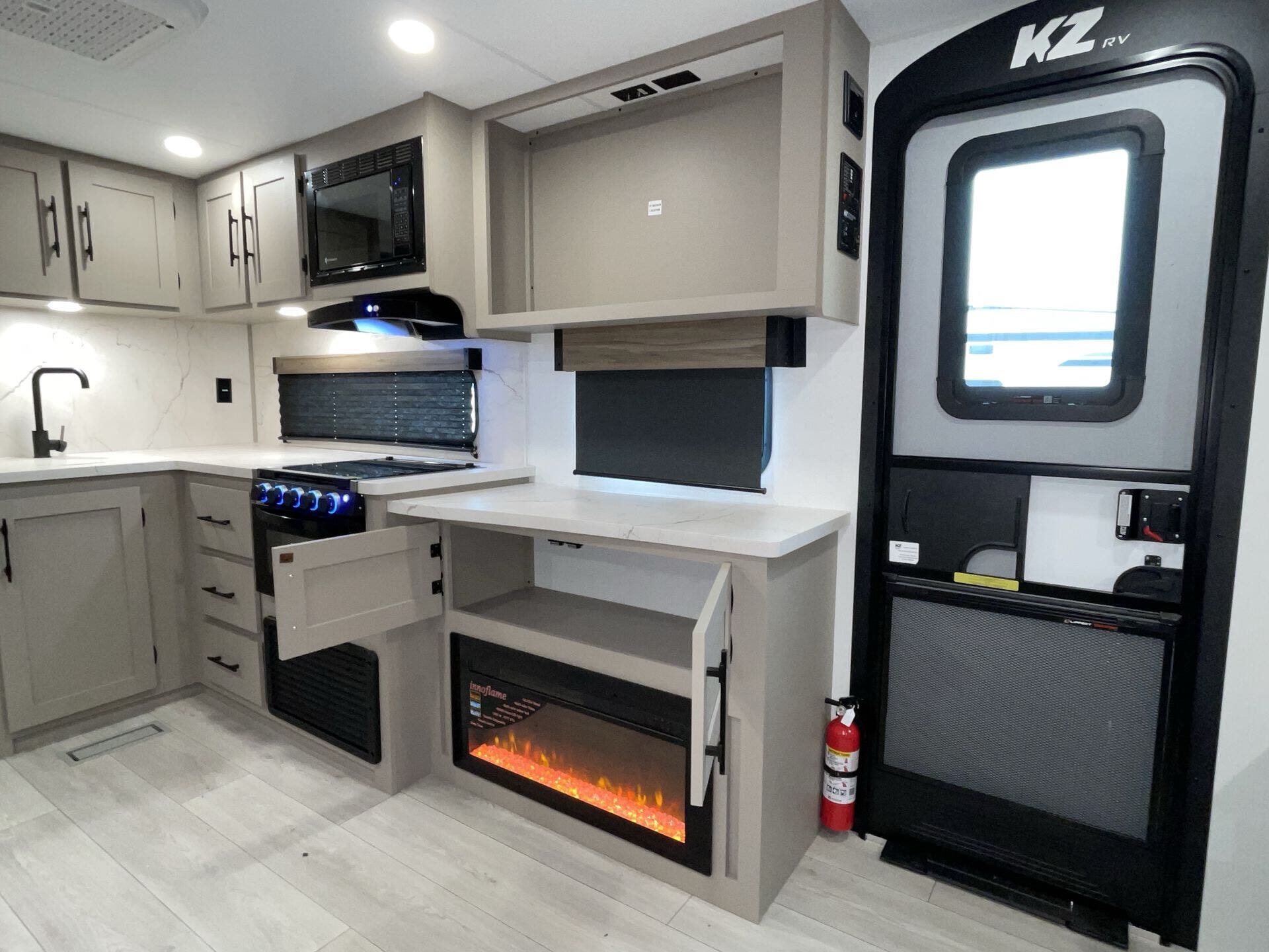 The 2026 K-Z Connect SE 251RL is a comfortable travel trailer with a layout that’s easy to enjoy from the first trip out. The rear living area gives you a relaxing space with seating and a dinette where you can kick back, eat meals, or spend time together after a day outside. The slide-out helps open up the living area, making the space feel bigger and more comfortable. Plus, by night you will have extra room for sleeping arrangements.The kitchen is set up with good counter space and storage so cooking on the road is simple and practical.