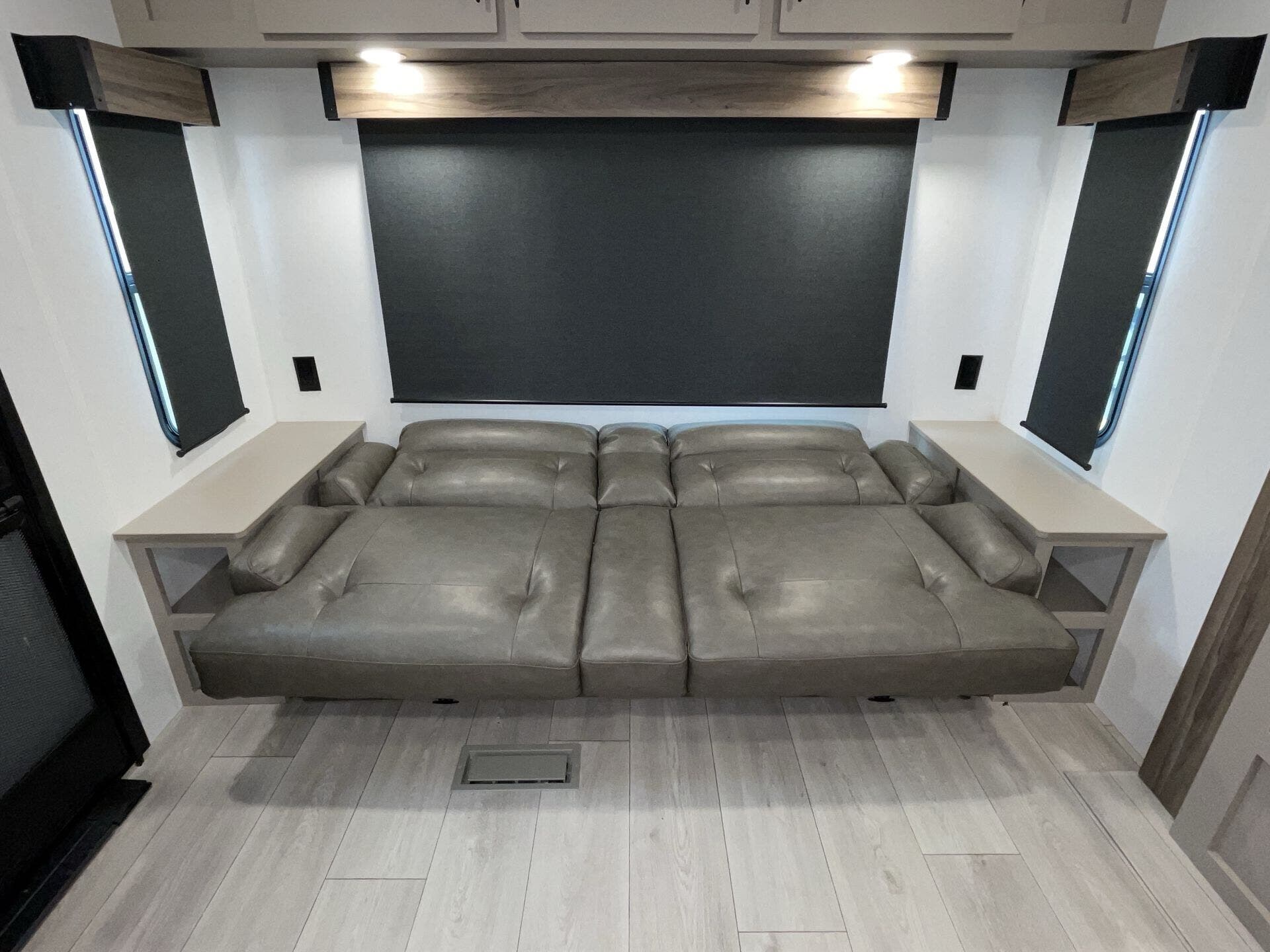 Awning, Enclosed Underbelly, Exterior Speakers, Ladder, Outside Kitchen, Power Awning, Roof Deck, Roof Vent, Skylight, Slideout, Stabilizer Jacks -