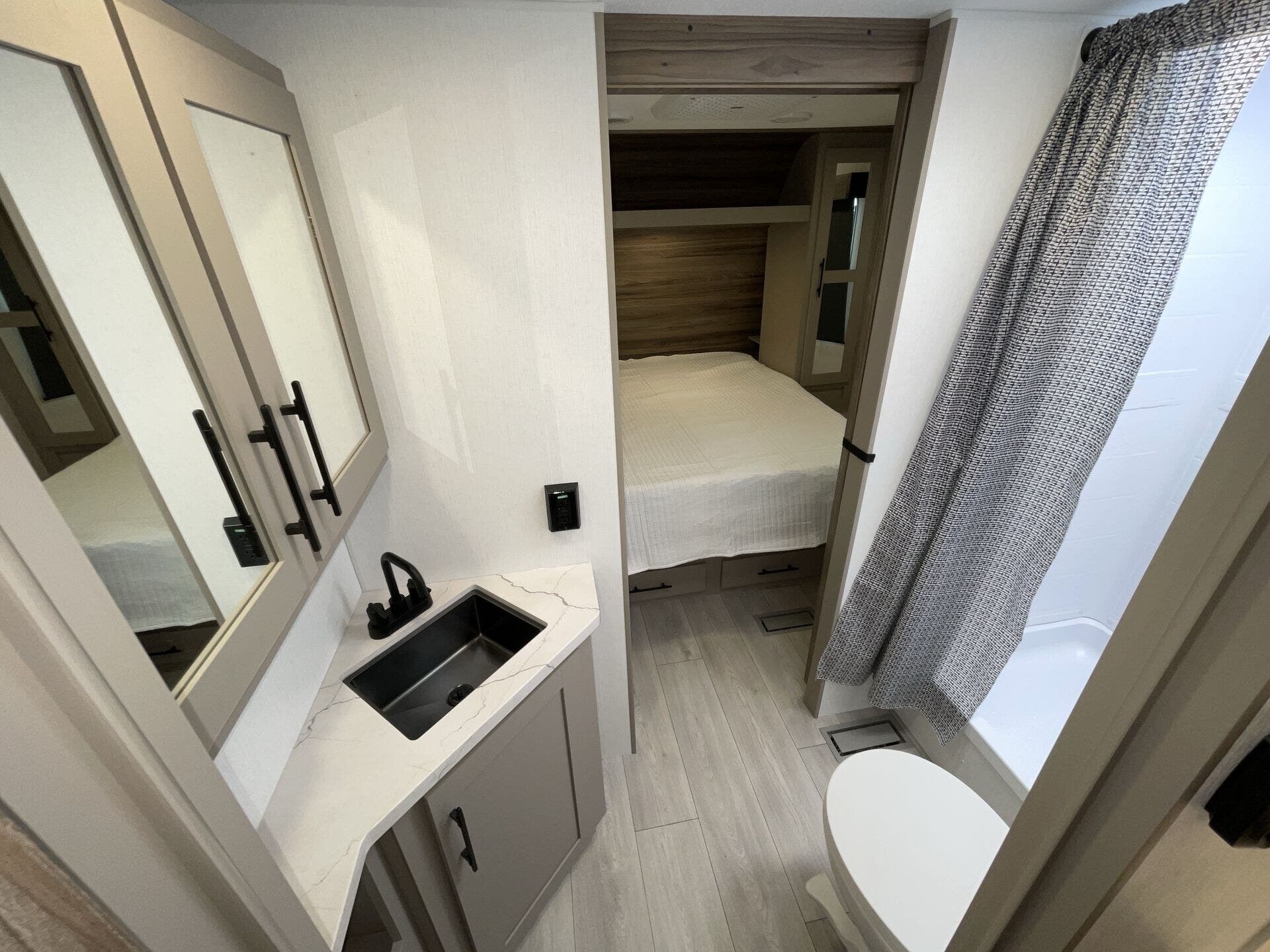 Up front, the private queen bedroom gives you a quiet place to unwind at the end of the day, along with closet space for longer trips. The bathroom is roomy and easy to use, and storage throughout the trailer makes it easy to pack everything you need. With a comfortable layout, solid build quality, and a manageable size for towing, the Connect SE 251RL is a great option for weekend camping or extended stays.