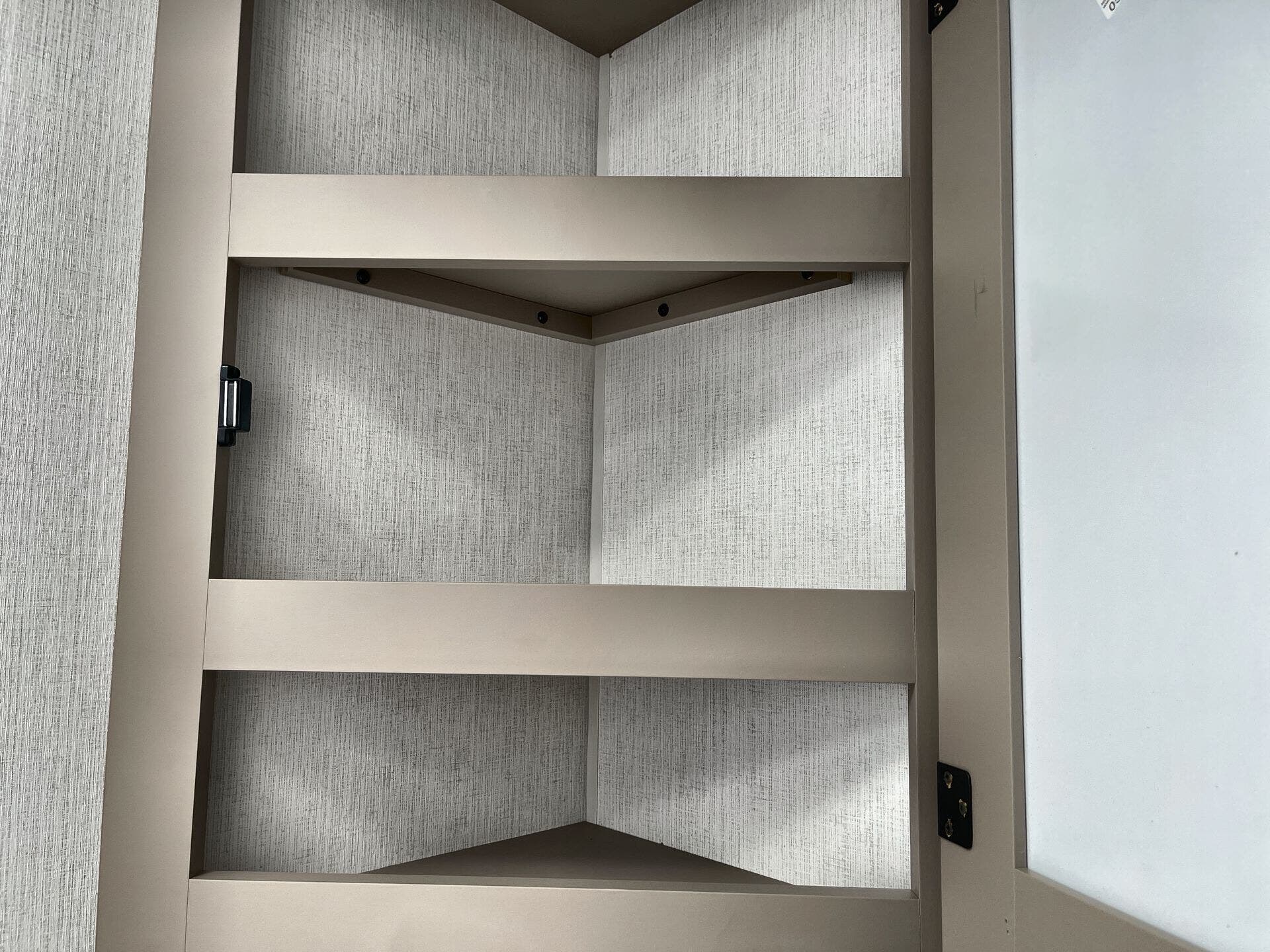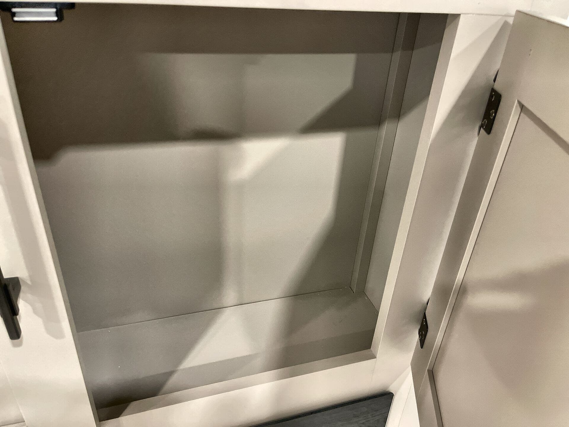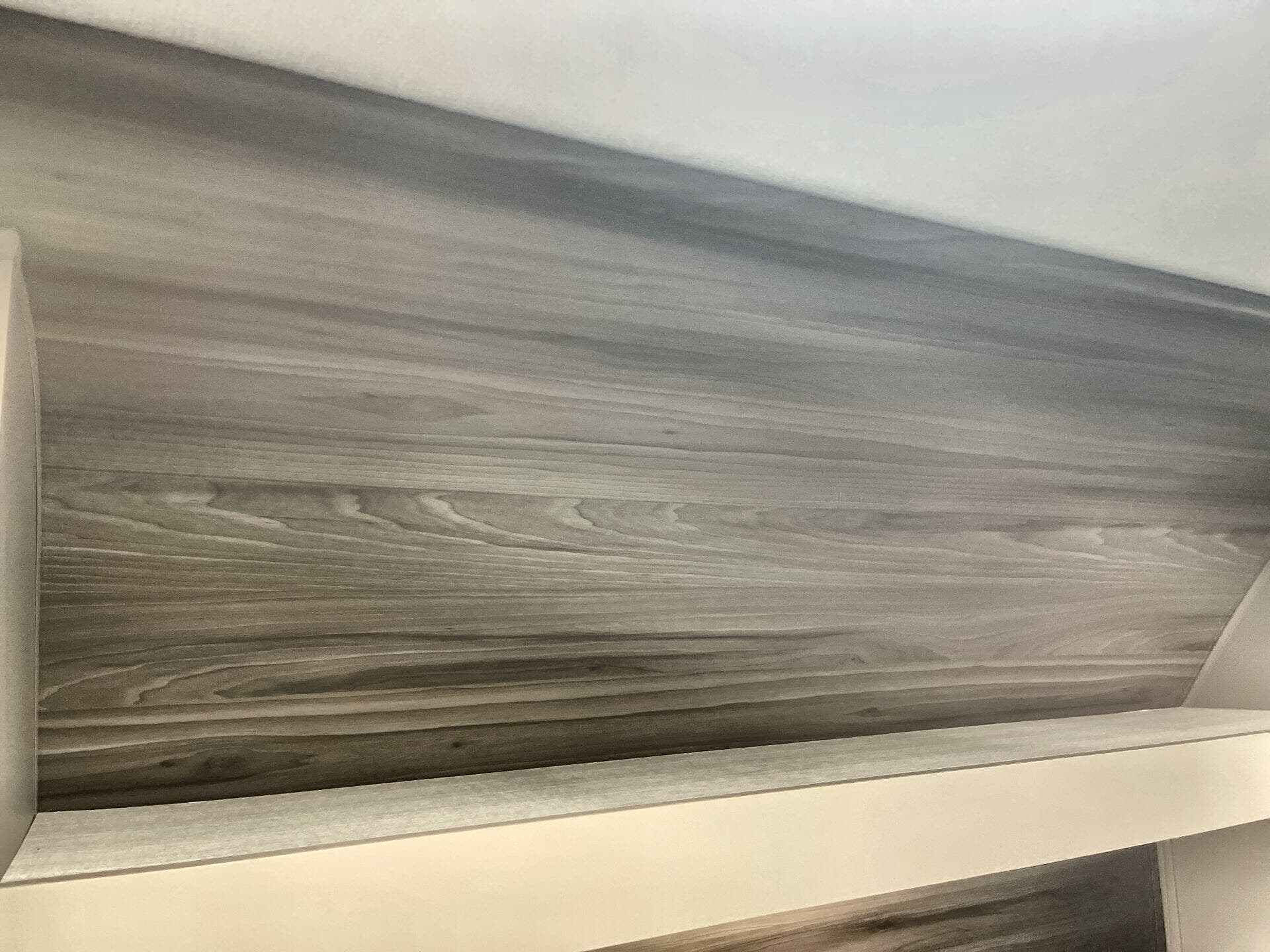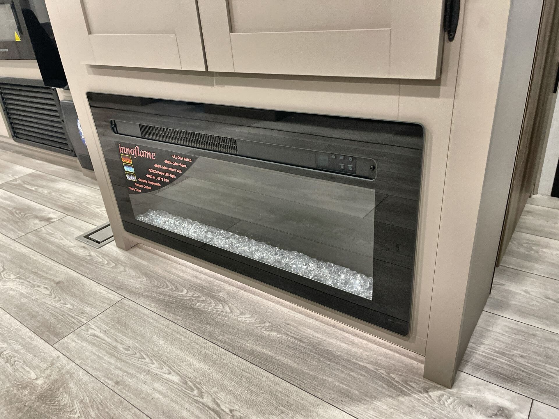 Inside, you’ll find a well-appointed interior with a large slide-out that opens up the living and dining space. The rear double-over-double bunks offer plenty of room for kids or guests, while the private front bedroom features a walk-around queen bed and sliding doors for added privacy. The kitchen is fully equipped with a three-burner cooktop, oven, microwave, and 10 cu. ft. refrigerator, plus ample storage and counter space. A booth dinette and jackknife sofa provide additional seating and sleeping flexibility, all in a bright, modern decor.