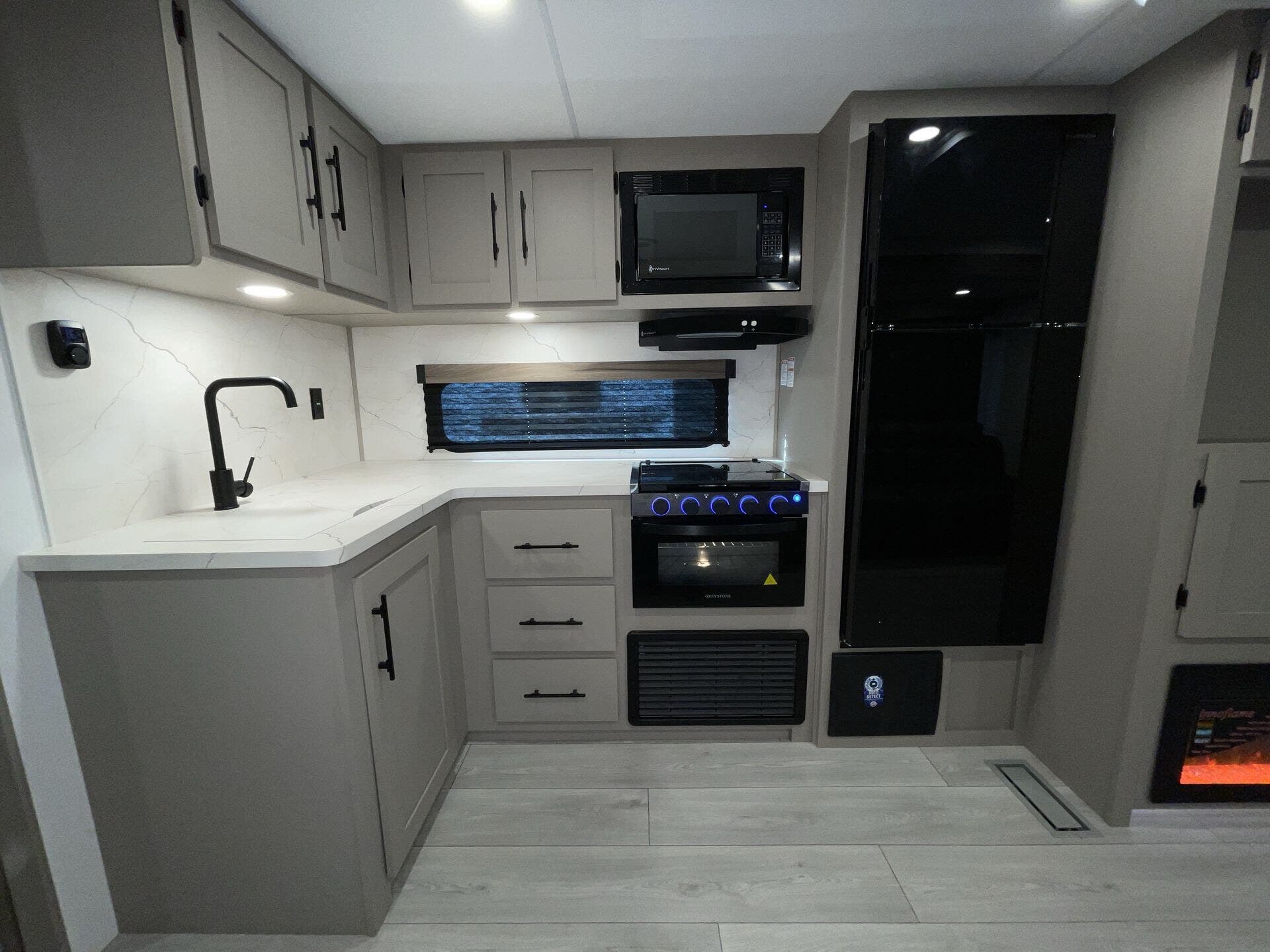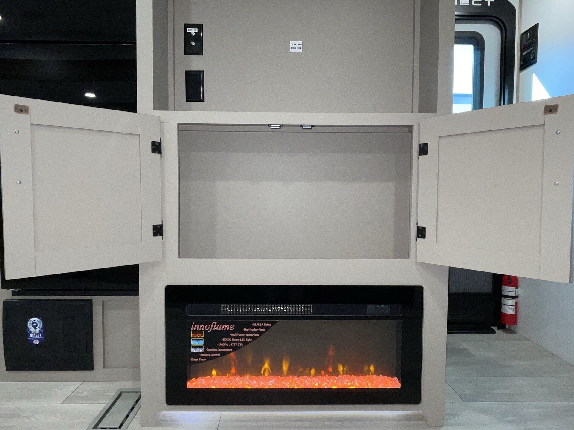 The 271BHKSE pairs a thoughtful flow with comfortable amenities. A dedicated front bedroom provides privacy, while the mid kitchen keeps cooking within easy reach of the living area. The main living space includes a sofa bed and a dinette bed, creating flexible sleeping arrangements without sacrificing seating. A cozy fireplace adds ambiance on cool evenings, and solid surface countertops elevate everyday meal preparation. With a well-equipped kitchen, you’ll enjoy reliable power, water, and climate control during every trip.