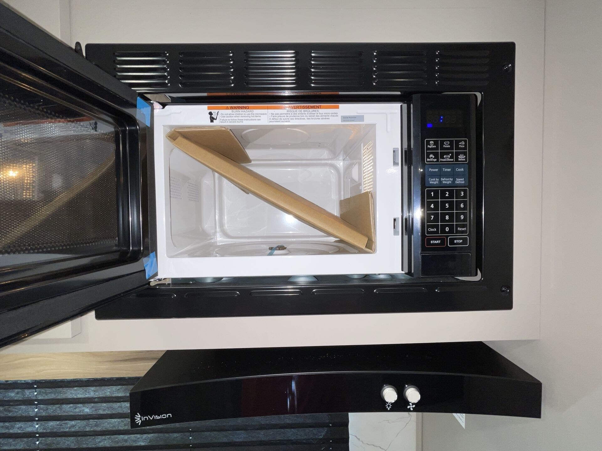 - Full kitchen suite: microwave, oven, stove top burner, and refrigerator