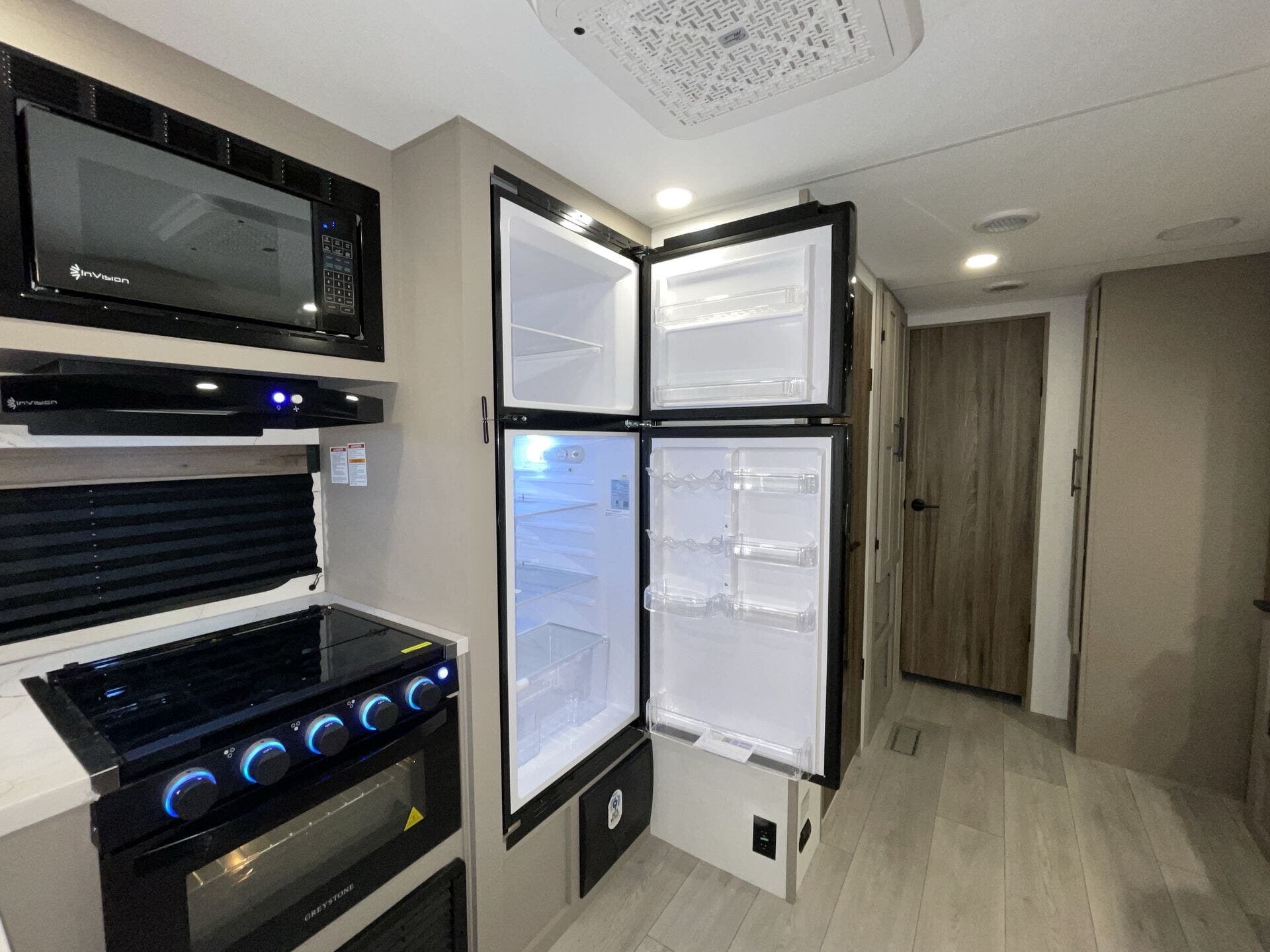 Up front, the private queen bedroom provides a comfortable place to unwind, while the kitchen offers good counter space, a large refrigerator, and plenty of cabinets for storage. Outside, the outdoor kitchen and power awning help extend your living space at the campsite. At about 33 feet long, sleeping up to 8 people, and with a dry weight around 6,600 lbs, the Connect SE 281BHK offers a nice balance of family space and manageable towing.