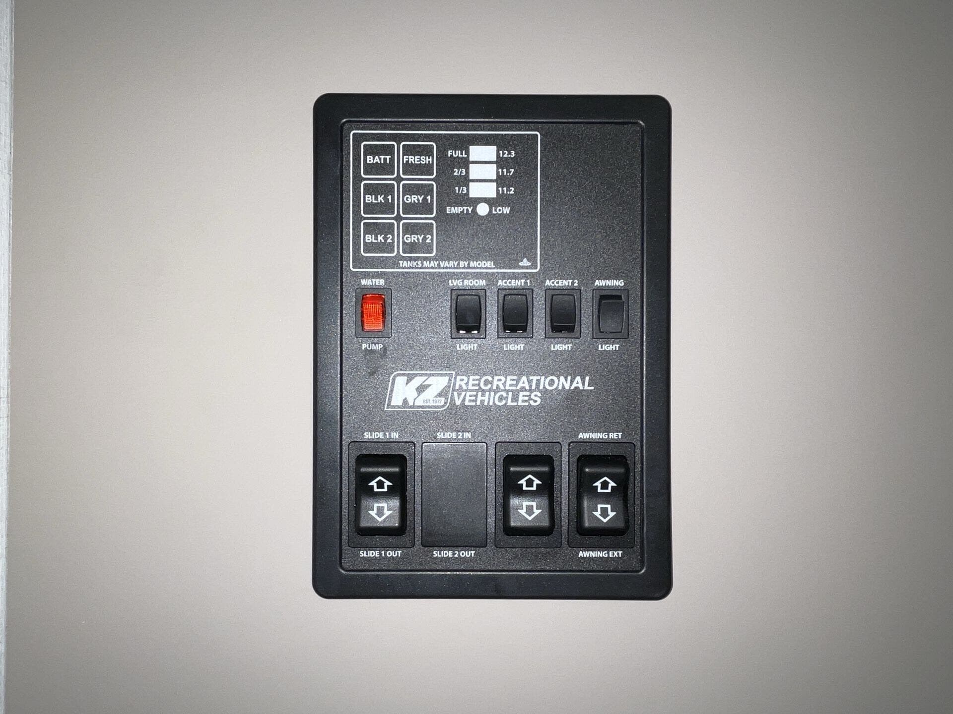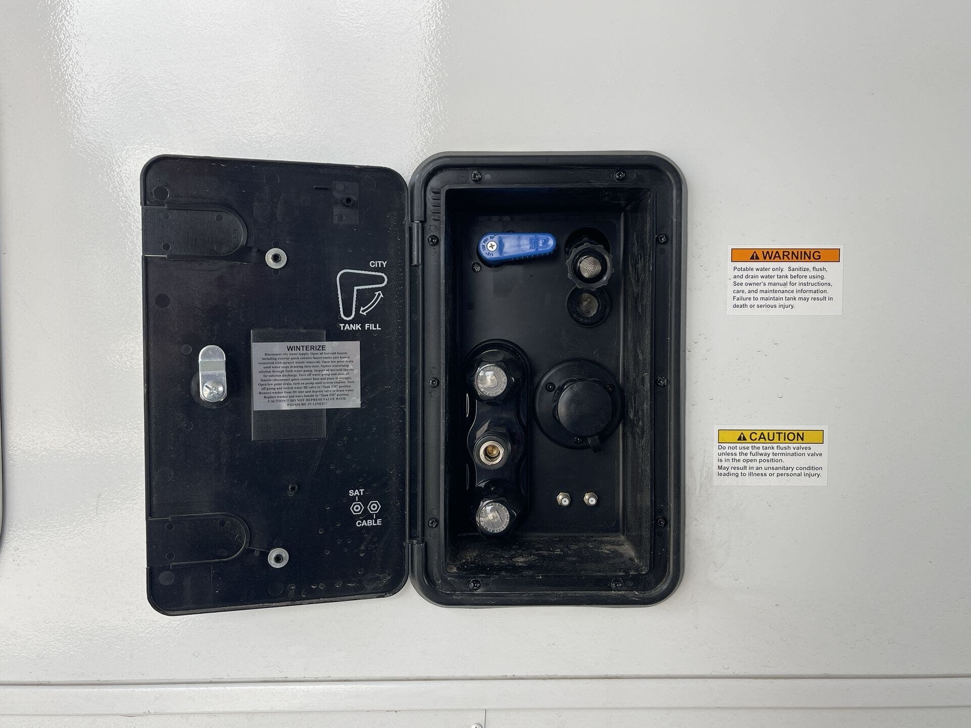 Backup Camera, CO Detector, Fire Extinguisher, LP Detector, Propane, Smoke Detector, TV, TV Antenna -