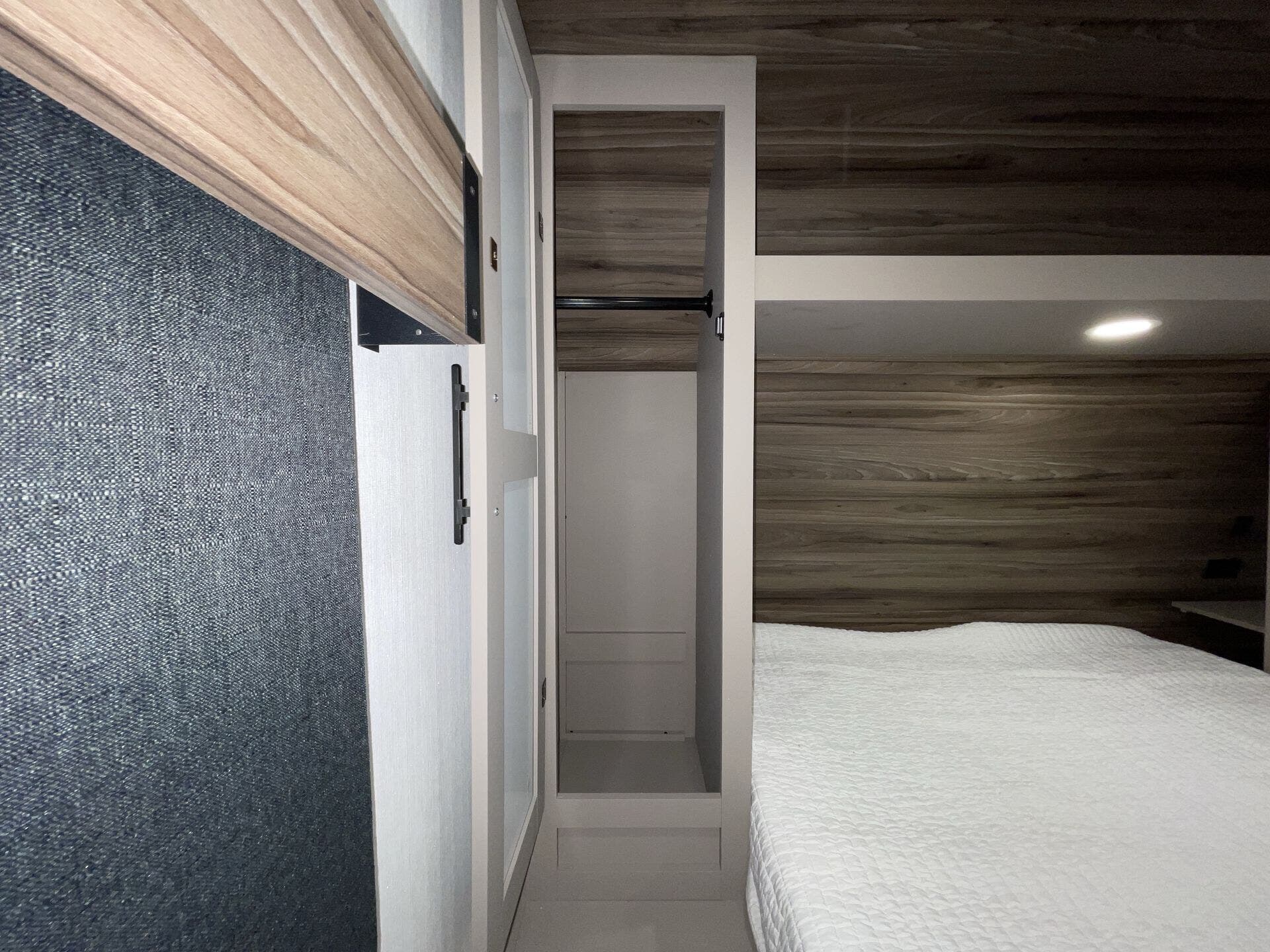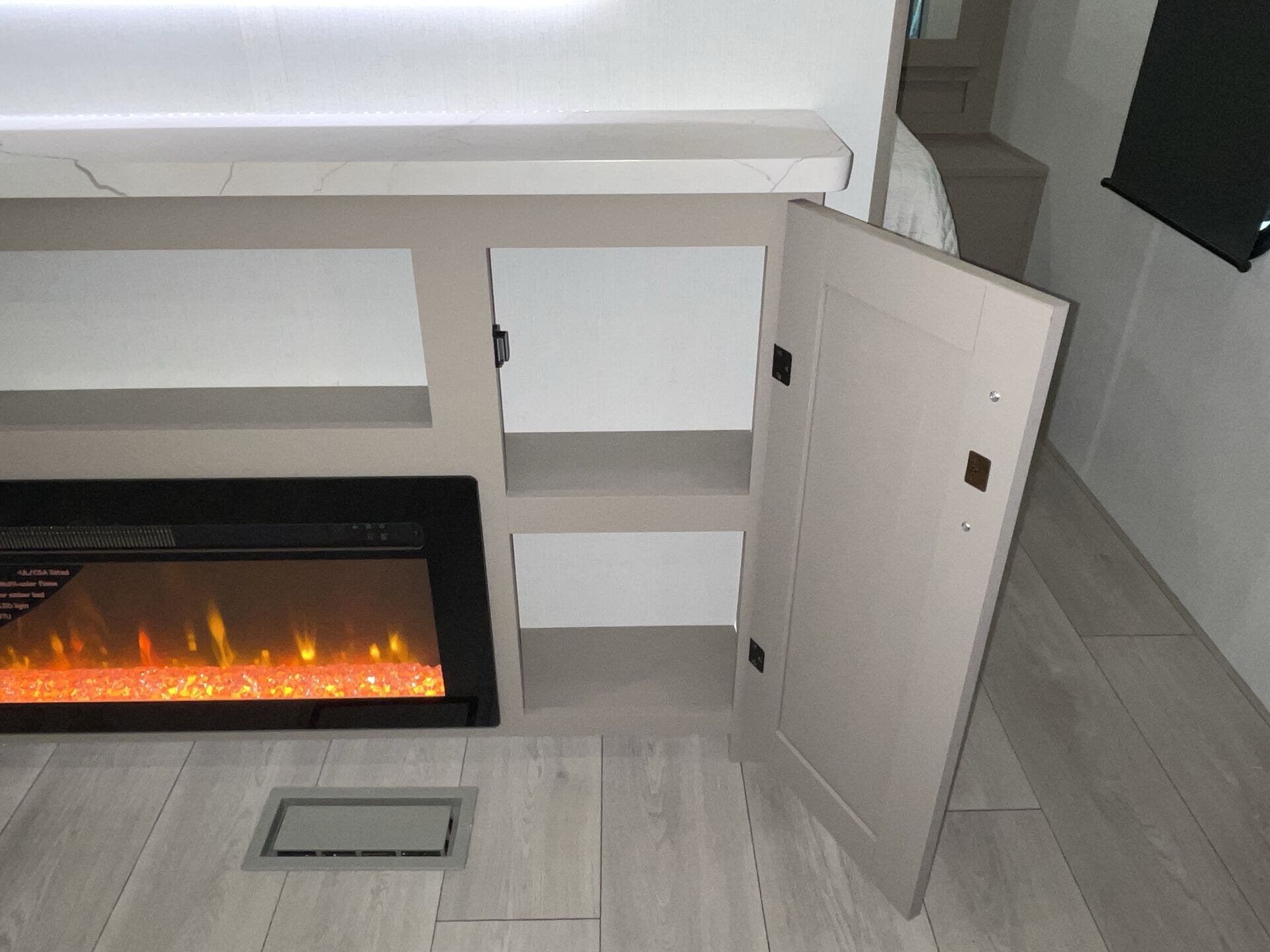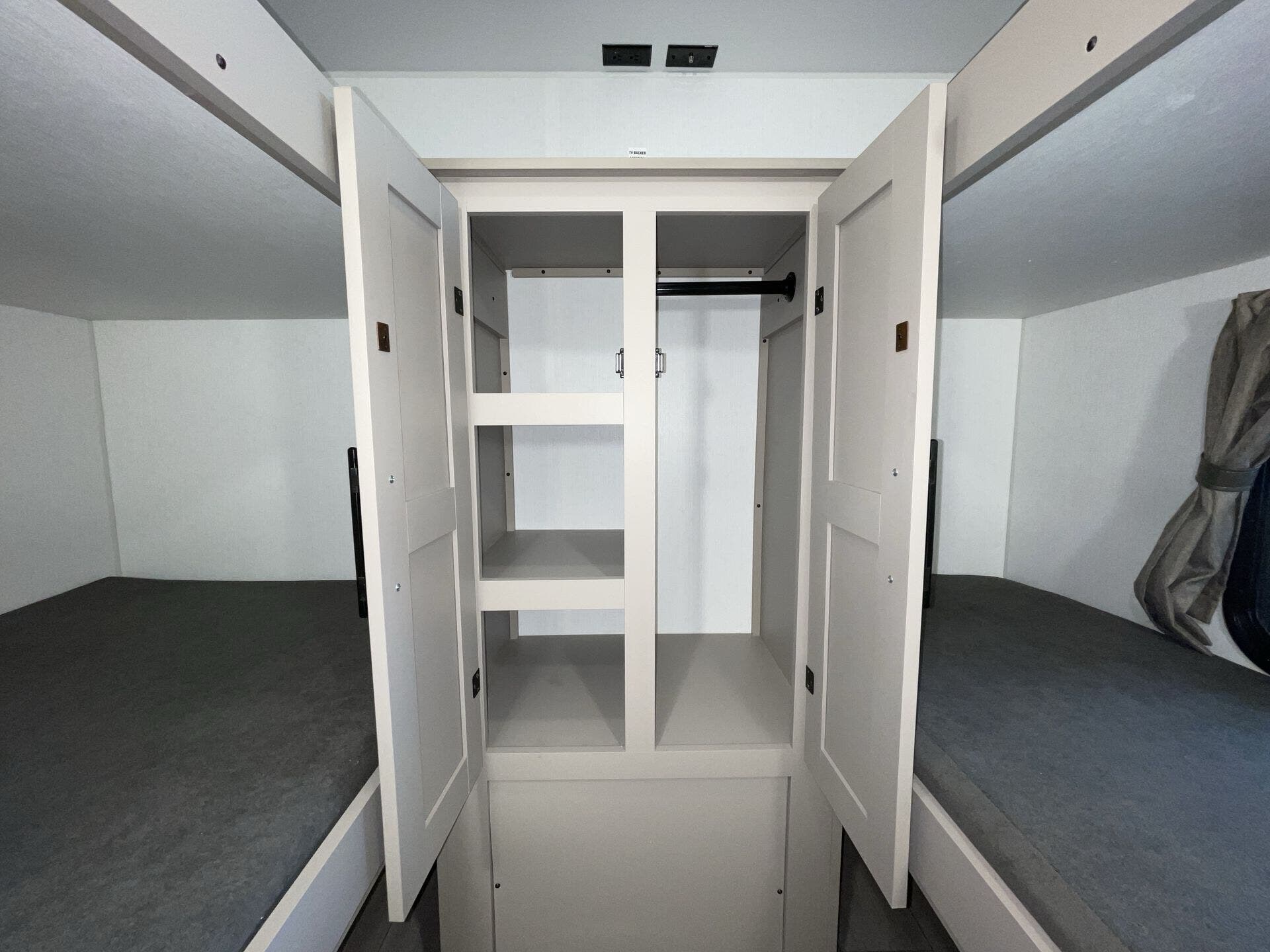 Booth Dinette, Bunk Beds, Bunkhouse, Dinette Bed, Fireplace, Kitchen Sink, Medicine Cabinet, Overhead Cabinetry, Pantry, Pet Friendly, Queen Bed, Roof Vents, Shower, Sofa Bed, Solid Surface Countertops, Toilet, U-Shaped Dinette, Wardrobe(s) -