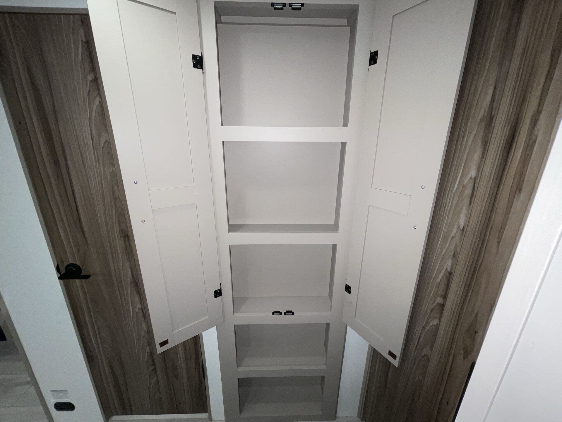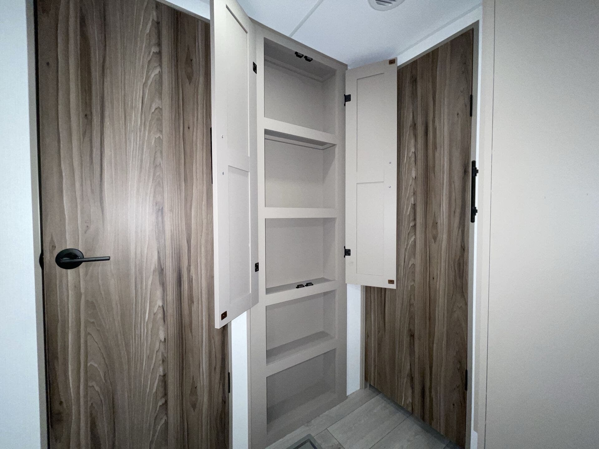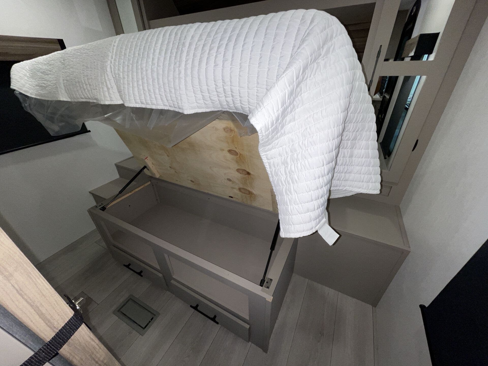 Booth Dinette, Bunk Beds, Bunkhouse, Dinette Bed, Fireplace, Kitchen Sink, Medicine Cabinet, Overhead Cabinetry, Pantry, Pet Friendly, Queen Bed, Roof Vents, Shower, Sofa Bed, Solid Surface Countertops, Toilet, U-Shaped Dinette, Wardrobe(s) -
