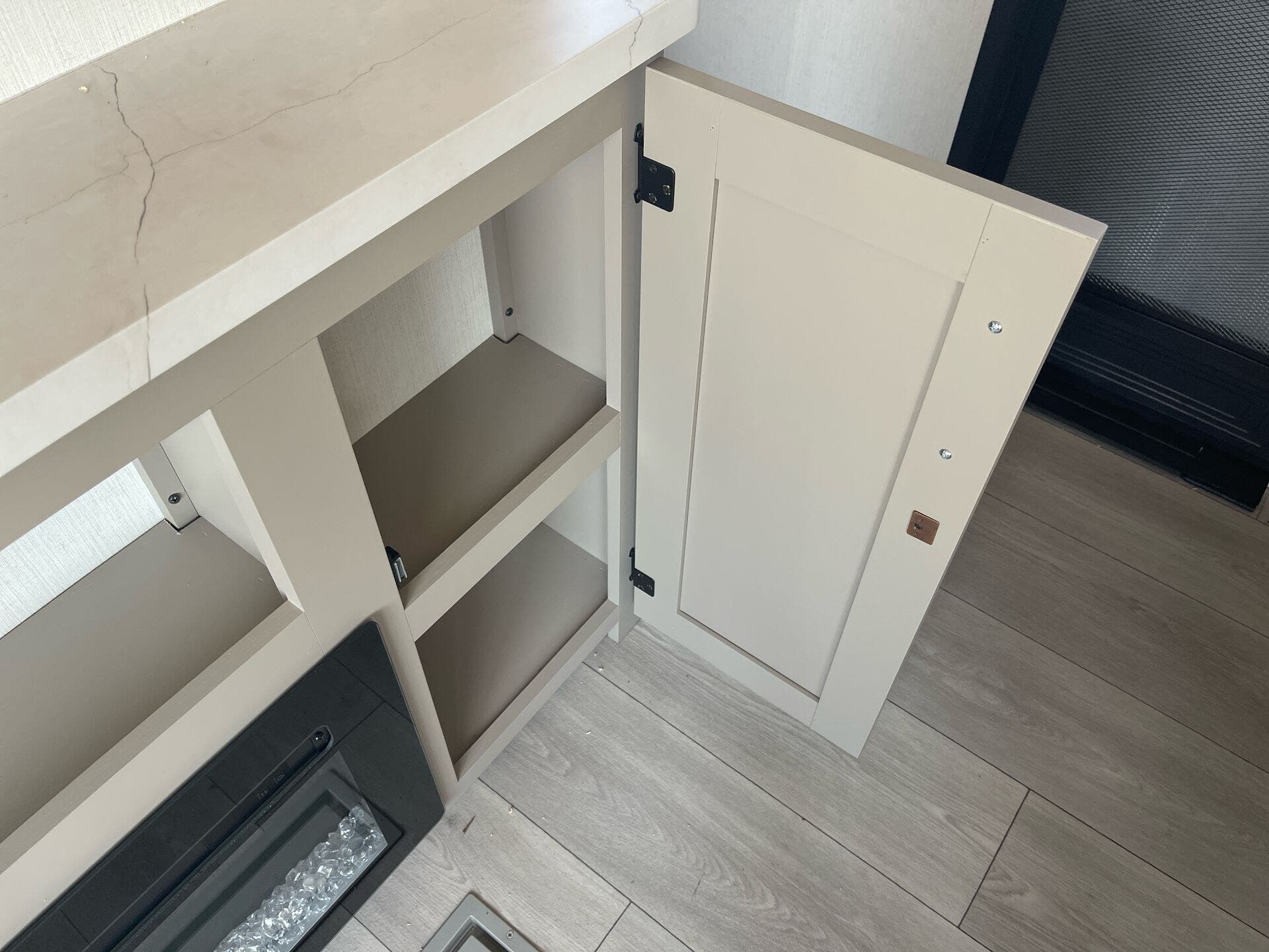 Bunk Beds, Fireplace, Medicine Cabinet, Queen Bed, Roof Vents, Shower, Toilet, U-Shaped Dinette -