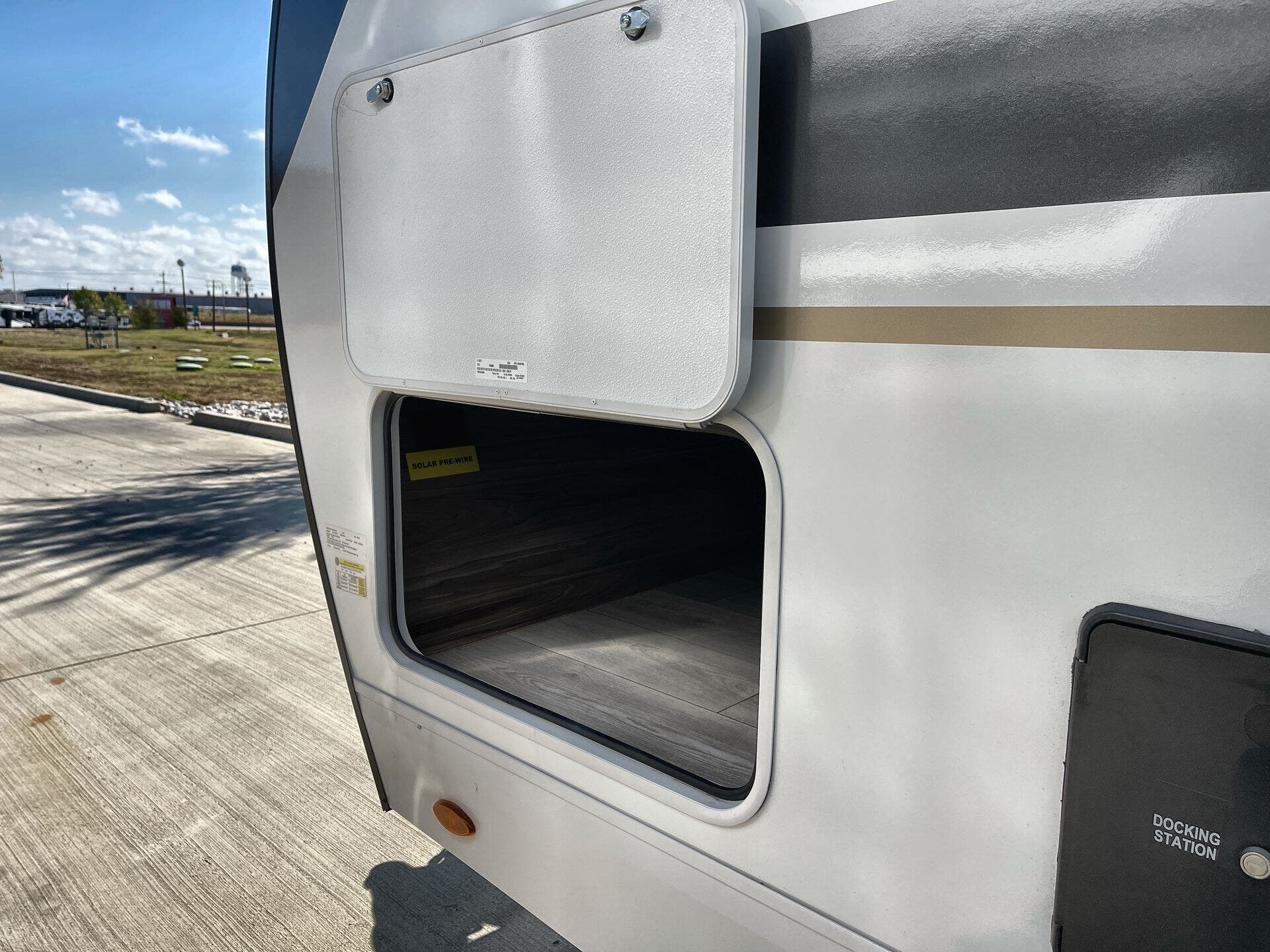 Awning, Enclosed Underbelly, Exterior Speakers, Ladder, Outside Kitchen, Power Awning, Roof Deck, Roof Vent, Skylight, Slideout, Stabilizer Jacks -