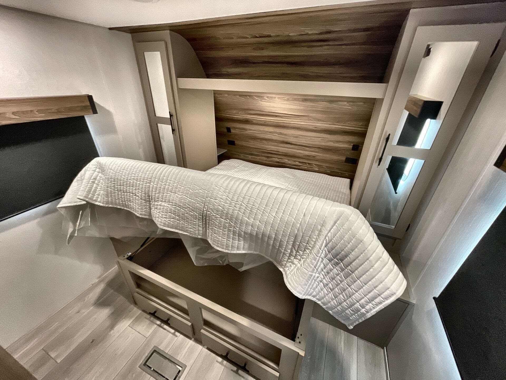 Floorplan 312BHK emphasizes flexible living and sleeping zones within a bunkhouse-style layout, designed to accommodate families or guests while on the road. While specific room-by-room measurements aren’t listed here, the 312BHK designation signals a smart arrangement that makes efficient use of interior space for comfort and practicality in a towable RV format.