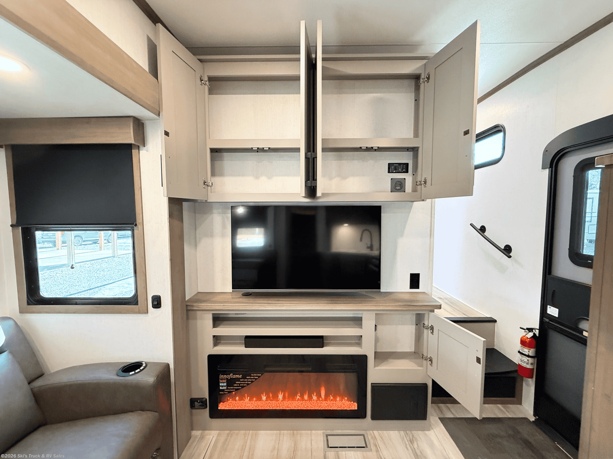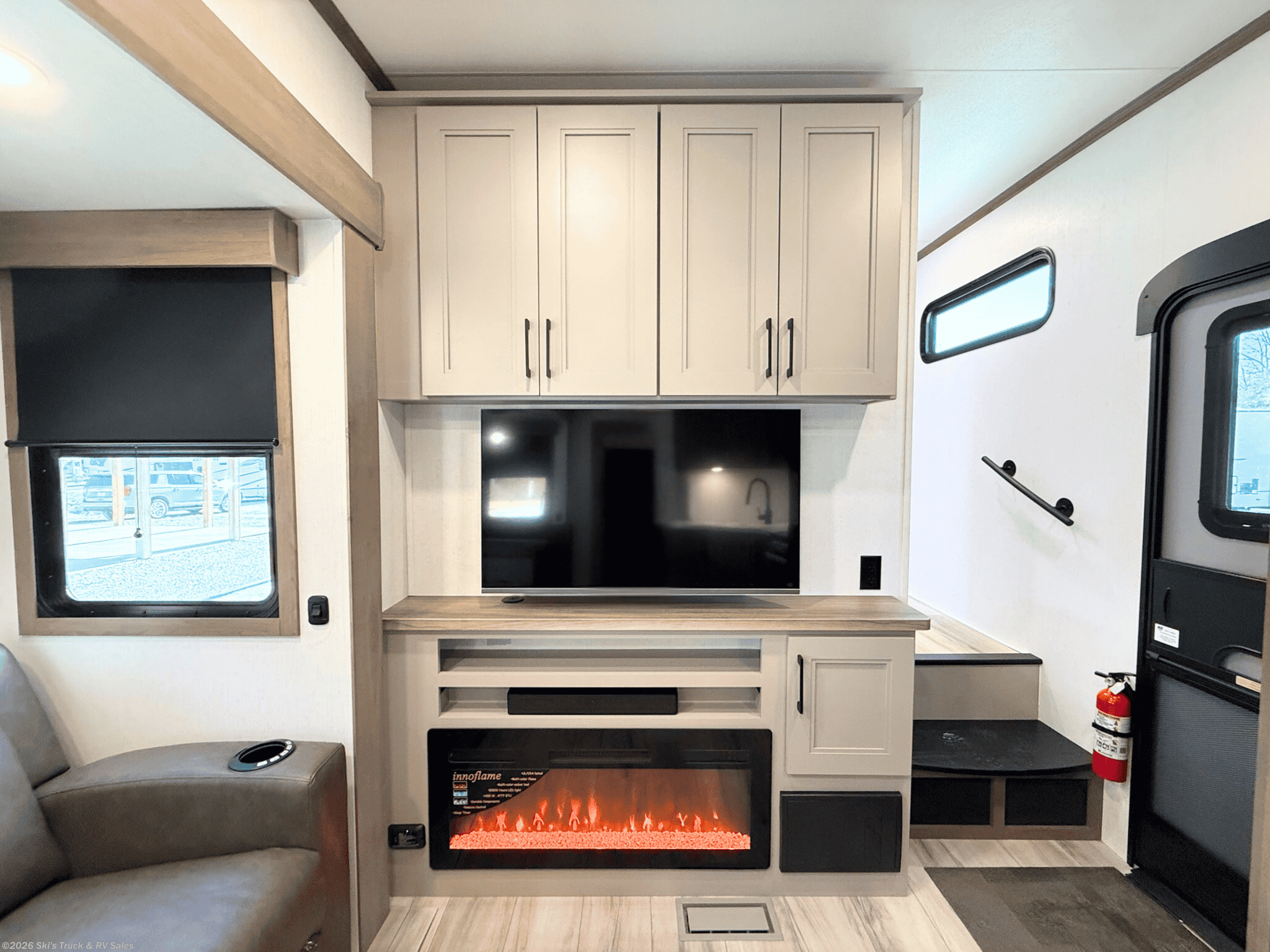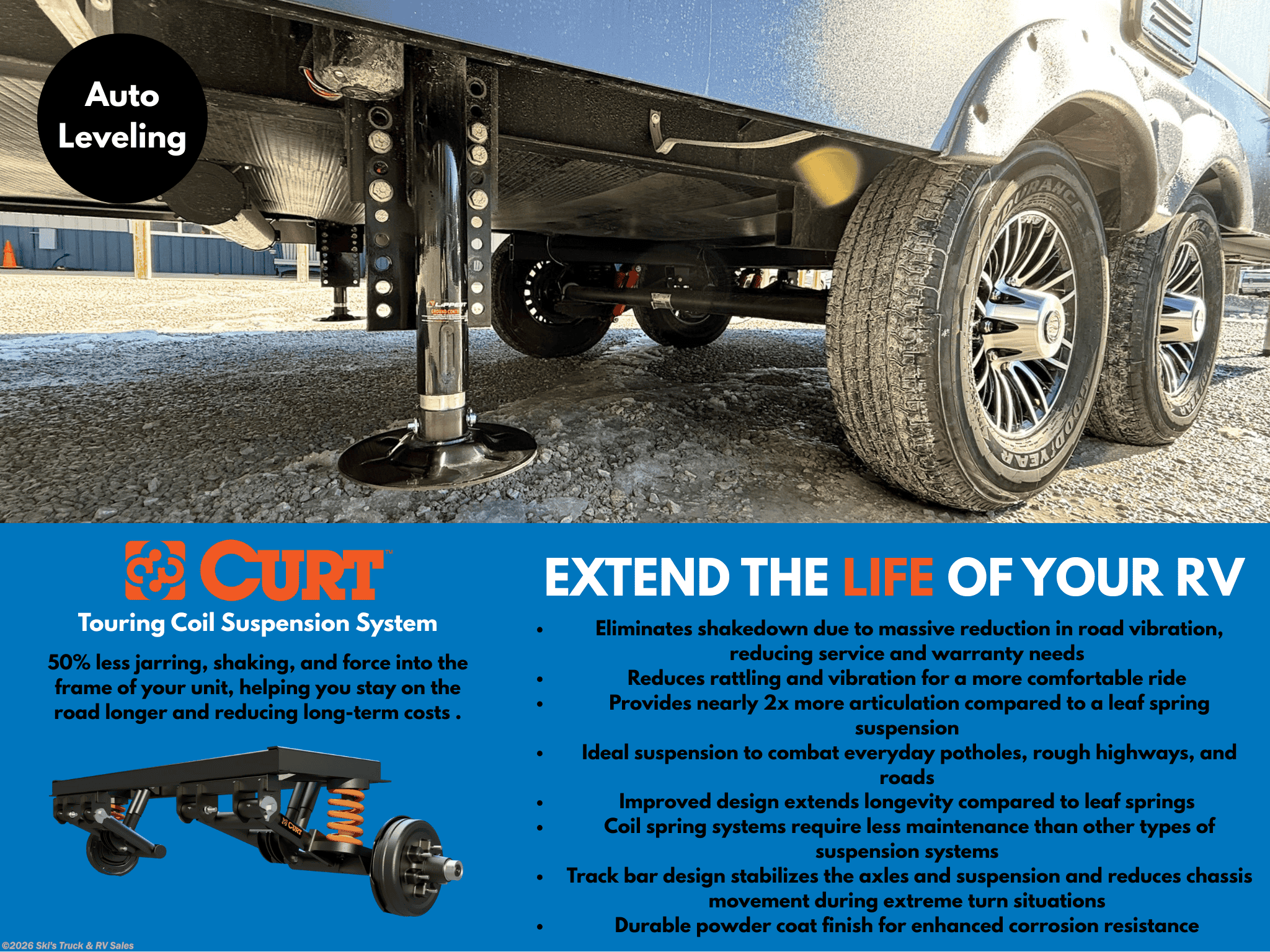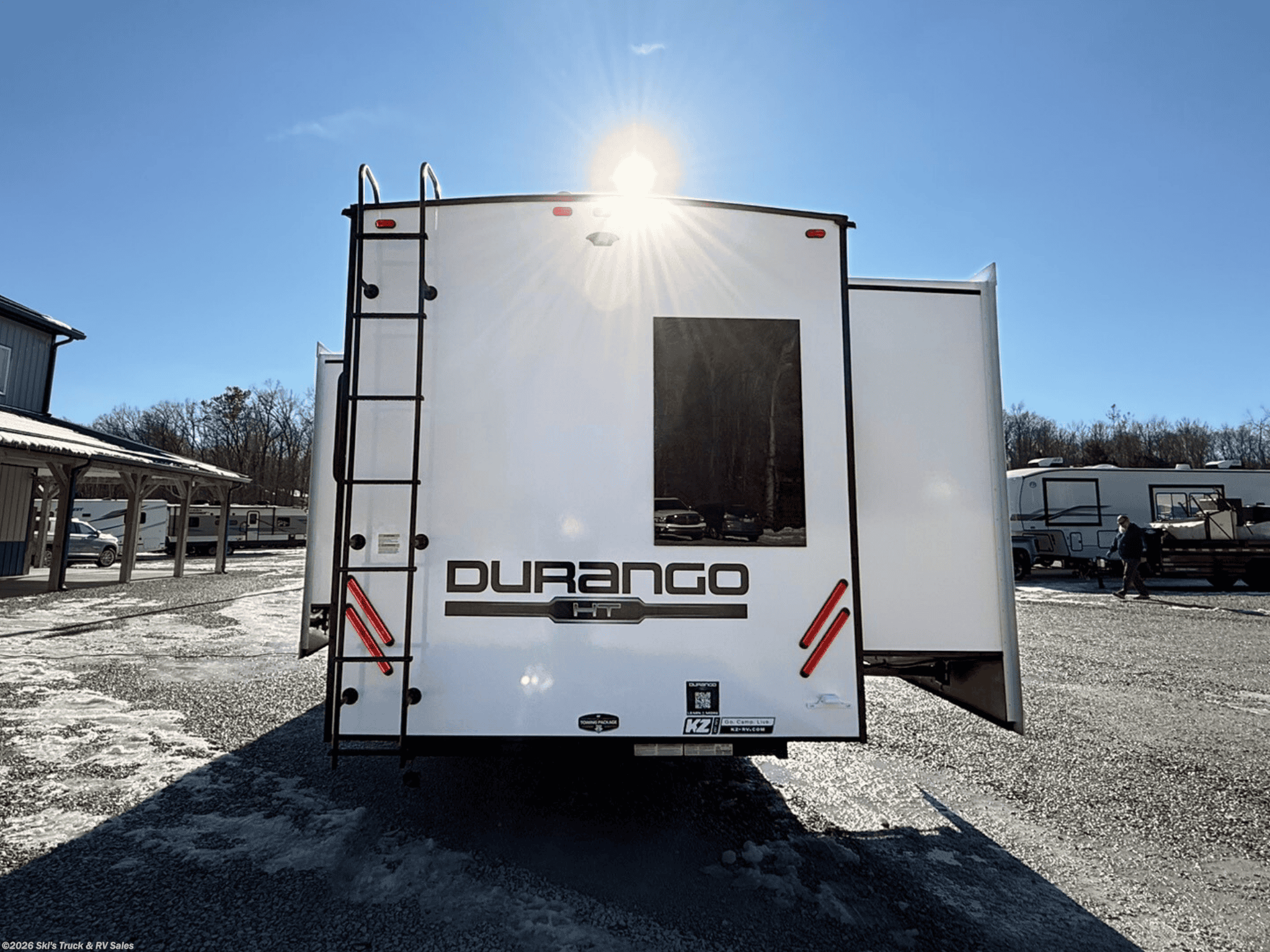 2026 KZ Durango D296BHT Half-Ton Fifth Wheel Bunkhouse; 35 Foot; 3 Slides; Sleeps 8 ; Hitch Weight: 1600 Lbs.; Dry Weight: 10,190 Lbs.; 50 Amp; Auto Leveling; 55 Gal. Fresh Water Cap.; 50 Gal. Black Water Cap.; 90 Gal. Gray Water Cap.; Two 30 Lbs. Propane Tanks; Two ACs: 15,000 / 15,000 BTUs; 35,000 BTU Furnace; 12 C.F. (12V) Refrigerator; On Demand Water Heater; Microwave; 3-Burner Stove/Oven; Three TV Jacks; 40 In. TV; Sound Bar; Speakers; One Fireplace; Pantry; Stainless Steel Sink; U Shaped Dinette; Theater Seats; Queen Bed; Single Bunks; Pull Out Trundle Bed; Washer/Dryer Prep.; 19 Foot Power Awning with LED Lights; Solar Package; Backup Camera Prep.; Outside Refrigerator; Outside Shower; Exterior Storage; Foldup Steps; Grab Handle; Roof Ladder; Hitch; Leash Latch; Key Alike System; Magnetic Door Holders; Climate Package; Frameless Tinted Windows; Azdel Sidewalls; Screen Defender; Screenshot; Roller Shades; Battery Disconnect; Black Tank Flush; Goodyear Tires; Aluminum Wheels; Spare Tire; Tire Monitoring System; CURT Coil Suspension with 8 Shocks and Anti-Lock Brakes; Two Year Limited Warranty; Financing Available; Great Fifth Wheel Bunkhouse for the Price: $58,995. Call Skis Truck & RV Sales at 765-344-1111 or visit us at for more information.