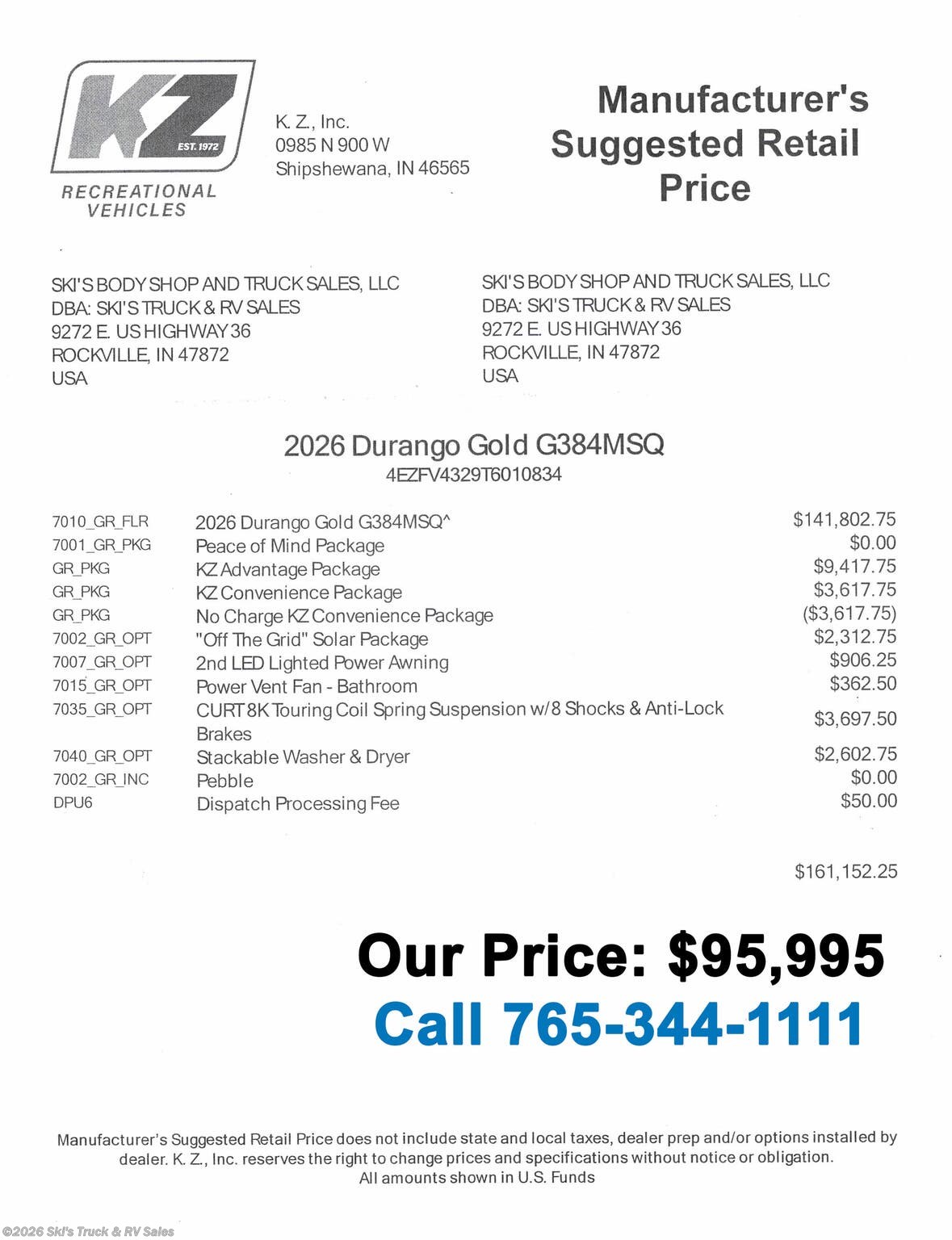 New 2026 K-Z Durango D281RKD