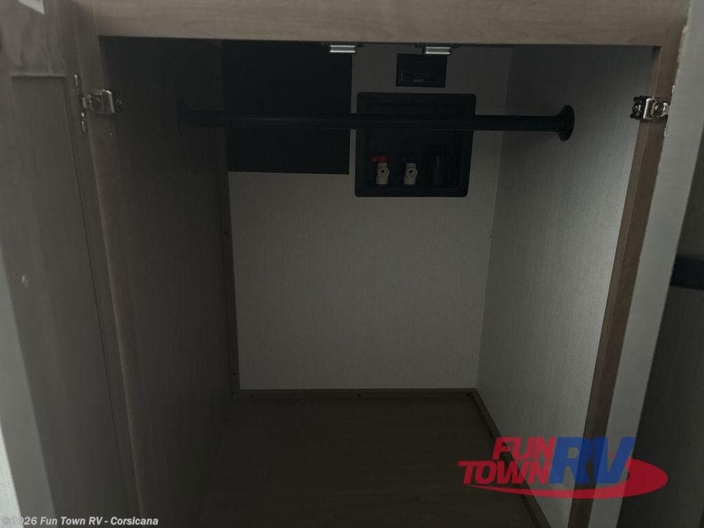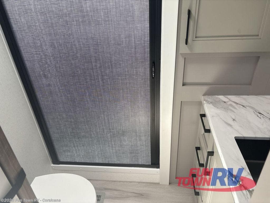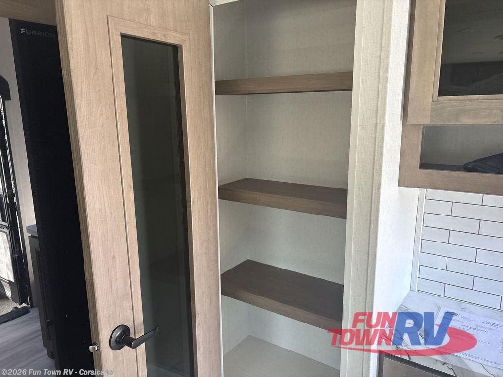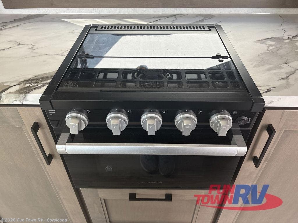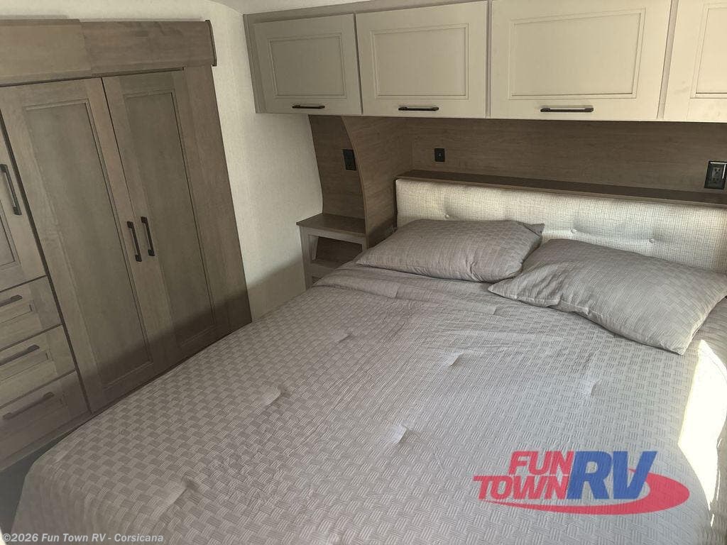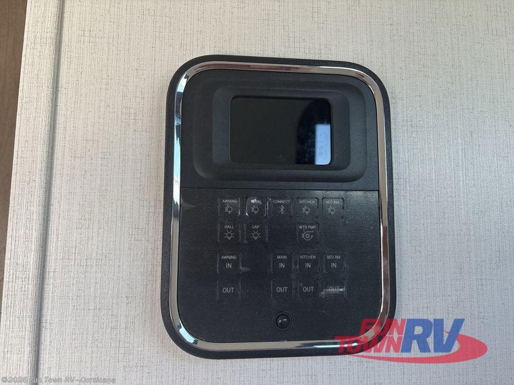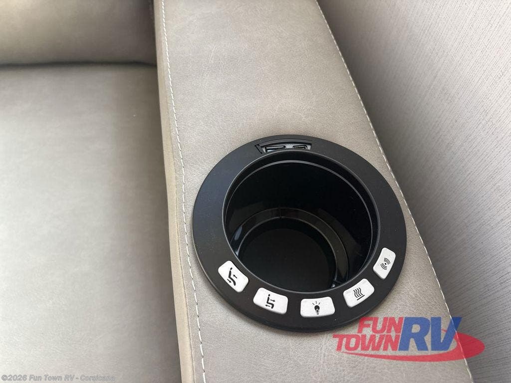 This fifth wheel will feel just like home with its kitchen island, theater seating, and front private bedroom! If you have any overnight guests, they can sleep on the rear hide-a-bed sofa. There is also a dinette with EZ adjust table for dining space, an entertainment center with a 43" Smart LED TV and an optional 40" fireplace. You will love the extra features that have been added, like the hutch in the kitchen for extra counter and storage space, the shower skylight in the spacious full bath, and the slide out wardrobe in the front bedroom!