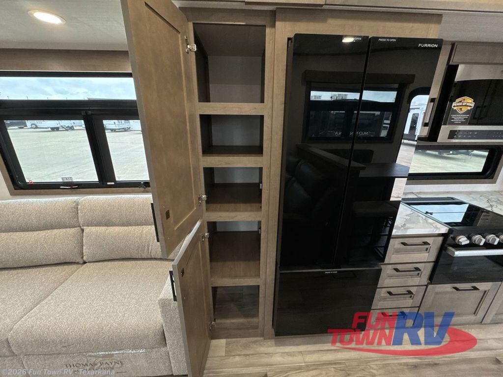 Head to your favorite state park in this spacious fifth wheel. You crew will love to visit in the rear living area that includes two hide-a-bed sofas, theater seating with USB ports, plus an entertainment center with a 65" TV! This area can double as your guests' bedroom at night, while you take the front private bedroom with a queen bed and a slide out wardrobe. In the morning, the little ones can enjoy their breakfast at the legless table, stools, and a bench, or take their plate outdoors to sit under the 19' power awning. There is also a spacious 12 cu. ft. refrigerator for food storage you are sure to appreciate!