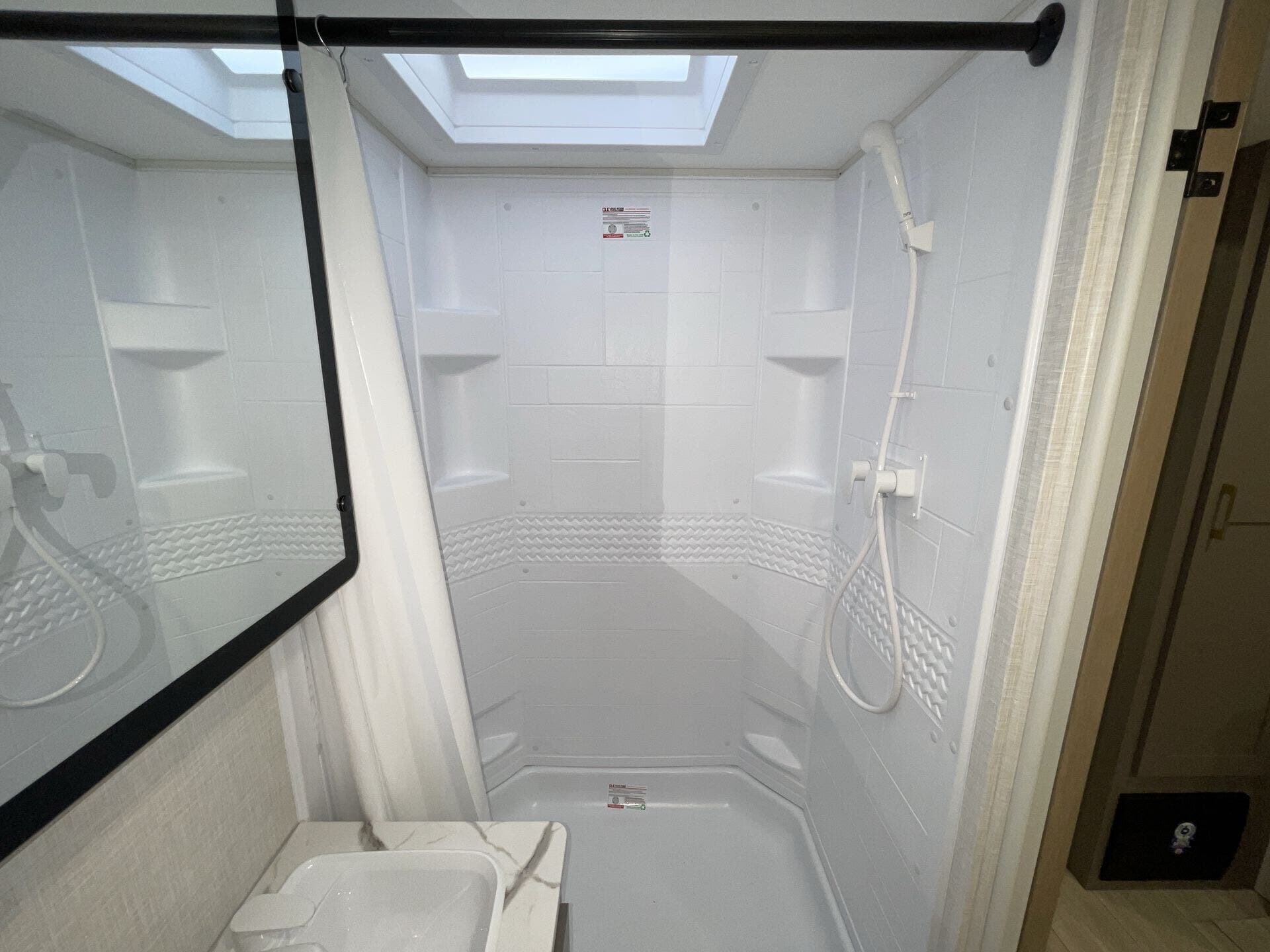 Awning, Detachable Power Cord, Leveling Jacks, Pass Thru Storage, Power Awning, Roof Vent, Screen Door, Skylight, Slideout, Spare Tire Kit -