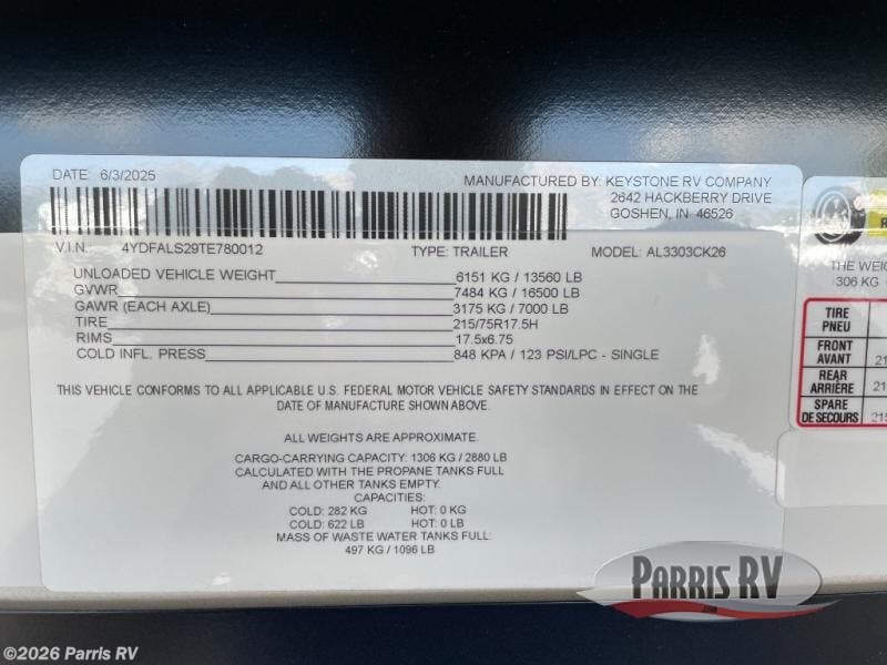 Request More Info on this 2026 Keystone Alpine 3303CK Offered for sale by Parris RV