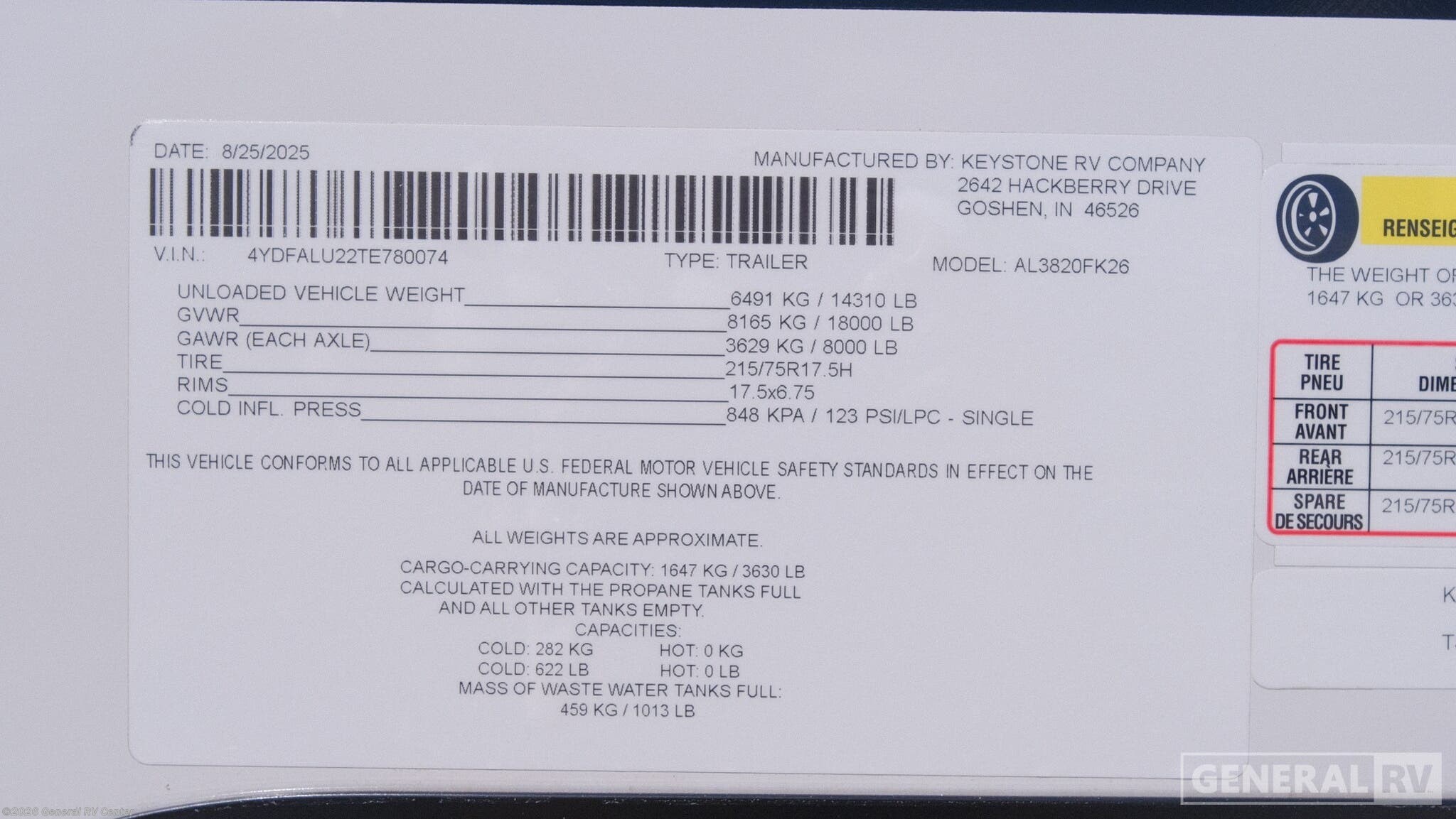 2026 Keystone Alpine 3820FK Specifications