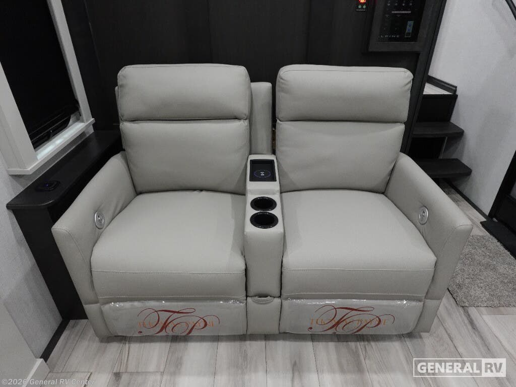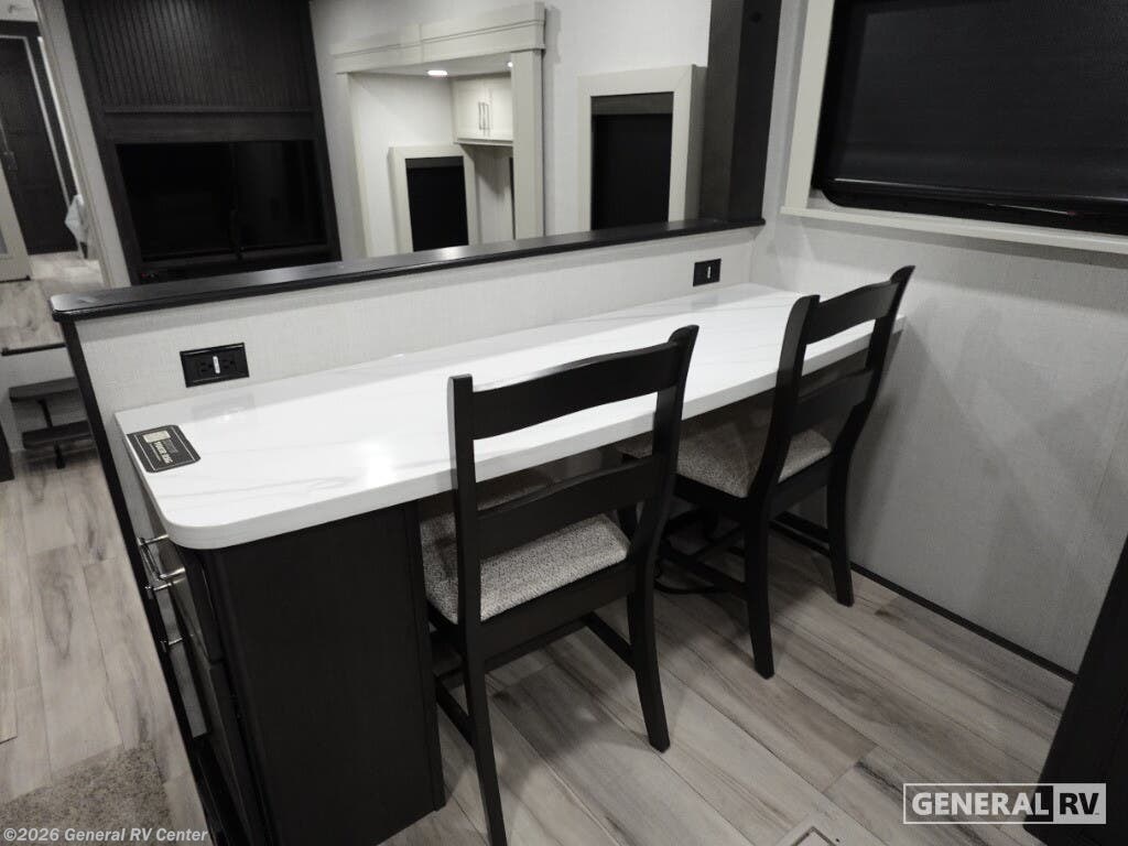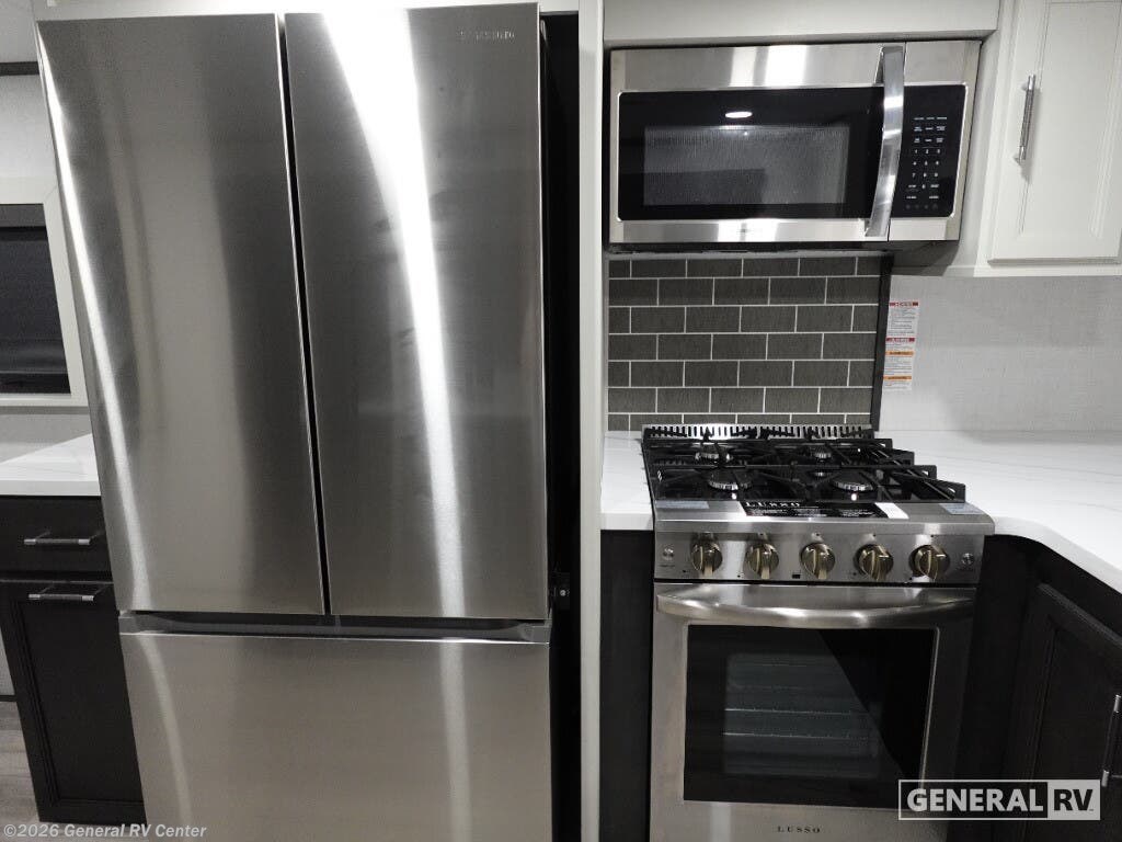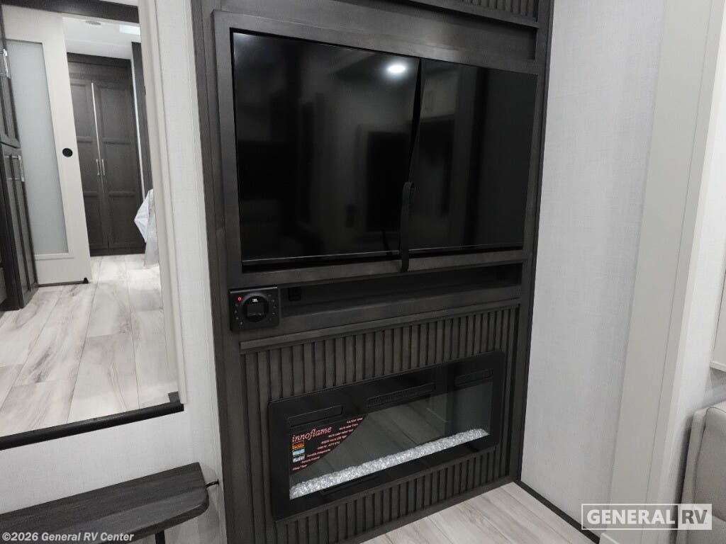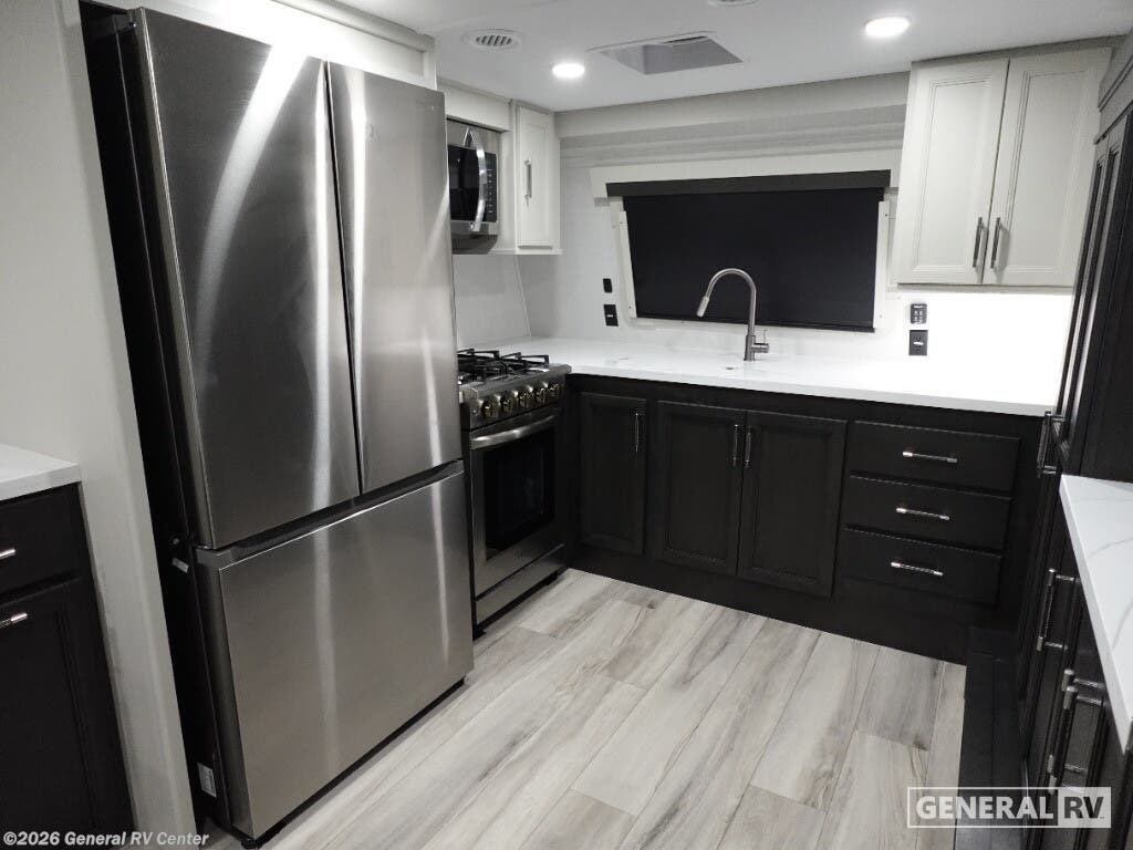 Experience the pinnacle of luxury and comfort with the 2026 Keystone Alpine 3820FK. This fifth wheel is designed to impress with its innovative front kitchen layout, perfect for culinary enthusiasts. The full-size, electric-powered refrigerator and convection cooking capabilities make meal prep a breeze. Enjoy the convenience of ample counter space and a thoughtfully arranged pantry, allowing you to bring all your favorite ingredients on the road. The center living area is a haven for relaxation, featuring plush theater seating and two tri-fold sofa sleepers, making it ideal for entertaining or unwinding after a day of adventure. The cozy fireplace adds a touch of warmth and ambiance, ensuring comfort in any season. Retreat to the center bedroom, where a king-sized bed awaits, offering a restful night’s sleep. The rear bath provides a spa-like experience with its spacious shower, while the RV is prepped for a washer and dryer, adding a layer of convenience to your travels. With two powered retractable awnings, outdoor enjoyment is effortless, whether rain or shine. The Alpine 3820FK is equipped with ample storage solutions, including colossal storage below, ensuring you have room for all your travel essentials. Visit your nearest General RV dealership to explore this luxurious model in person and start your next adventure with style and confidence.