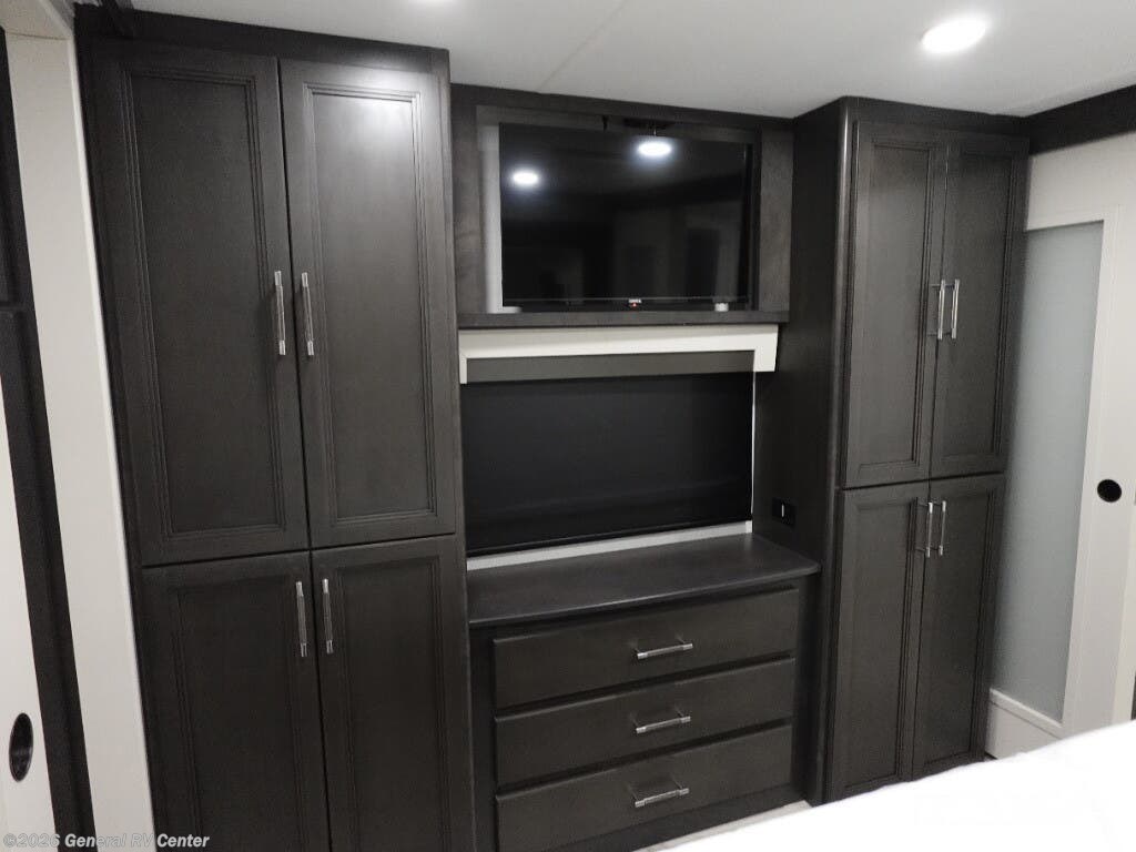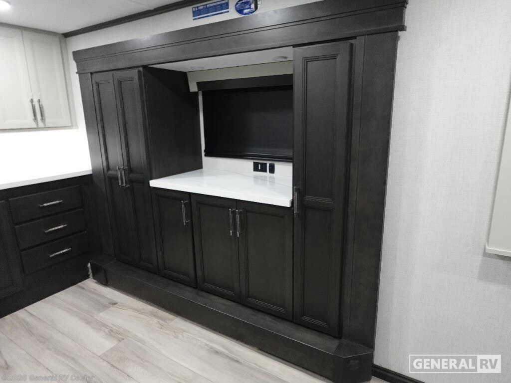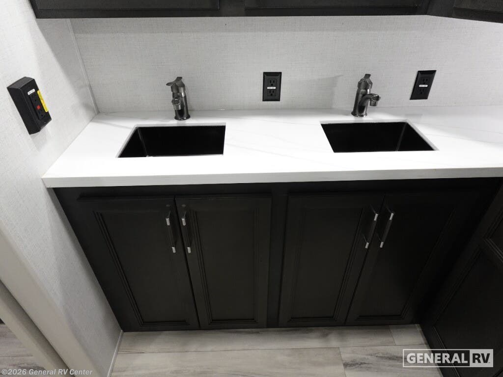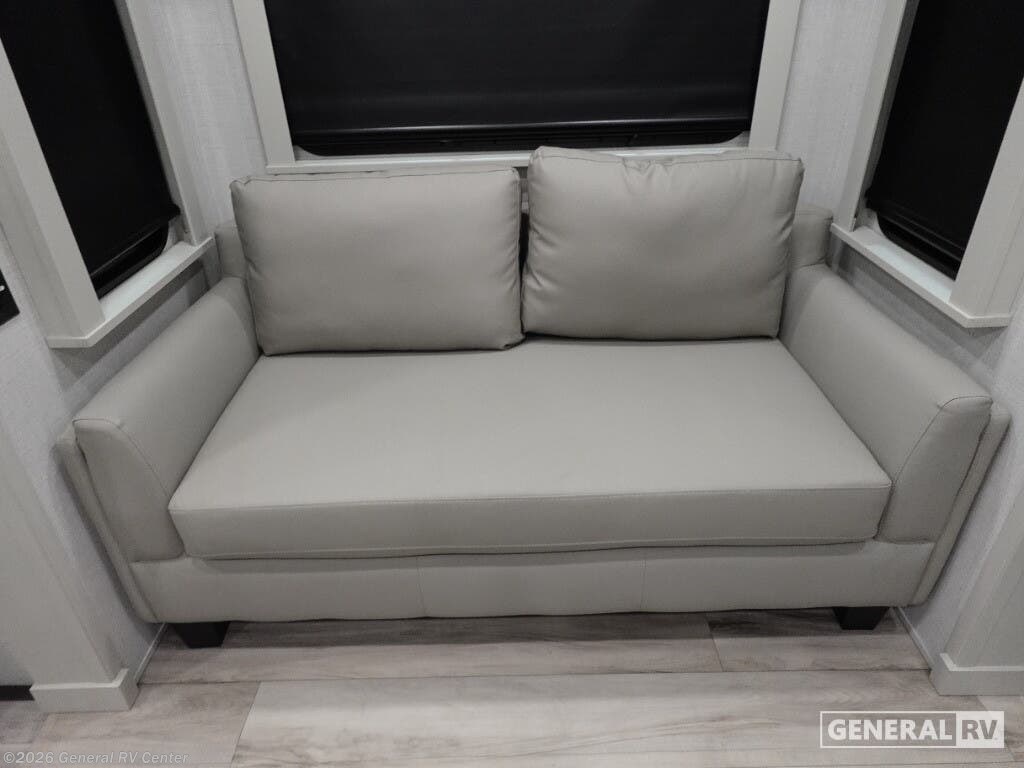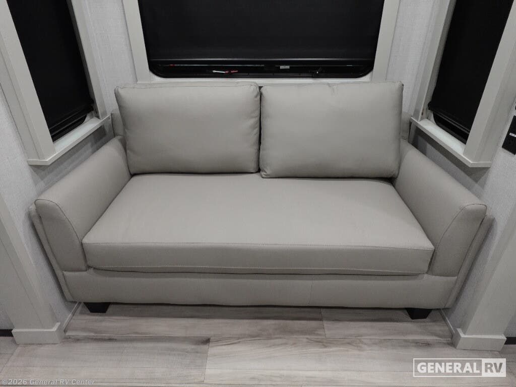 Experience the pinnacle of luxury and comfort with the 2026 Keystone Alpine 3820FK. This fifth wheel is designed to impress with its innovative front kitchen layout, perfect for culinary enthusiasts. The full-size, electric-powered refrigerator and convection cooking capabilities make meal prep a breeze. Enjoy the convenience of ample counter space and a thoughtfully arranged pantry, allowing you to bring all your favorite ingredients on the road. The center living area is a haven for relaxation, featuring plush theater seating and two tri-fold sofa sleepers, making it ideal for entertaining or unwinding after a day of adventure. The cozy fireplace adds a touch of warmth and ambiance, ensuring comfort in any season. Retreat to the center bedroom, where a king-sized bed awaits, offering a restful night’s sleep. The rear bath provides a spa-like experience with its spacious shower, while the RV is prepped for a washer and dryer, adding a layer of convenience to your travels. With two powered retractable awnings, outdoor enjoyment is effortless, whether rain or shine. The Alpine 3820FK is equipped with ample storage solutions, including colossal storage below, ensuring you have room for all your travel essentials. Visit your nearest General RV dealership to explore this luxurious model in person and start your next adventure with style and confidence.