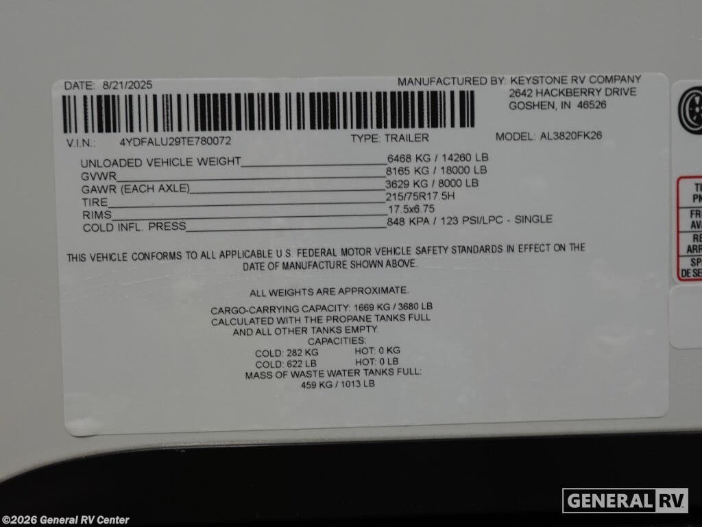 Request More Info on this 2026 Keystone Alpine 3820FK Offered for sale by General RV Center