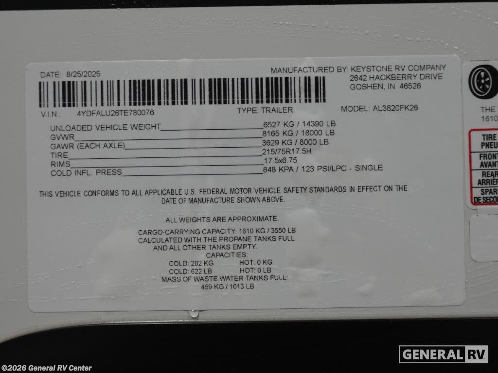 Request More Info on this 2026 Keystone Alpine 3820FK Offered for sale by General RV Center