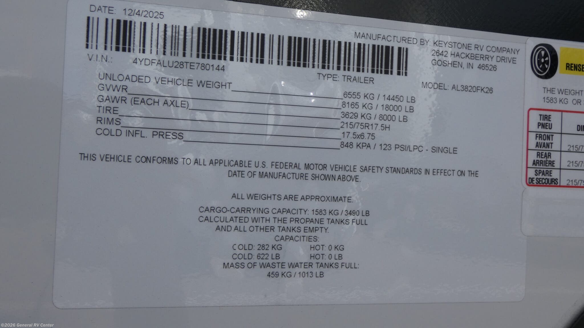 Request More Info on this 2026 Keystone Alpine 3820FK Offered for sale by General RV Center