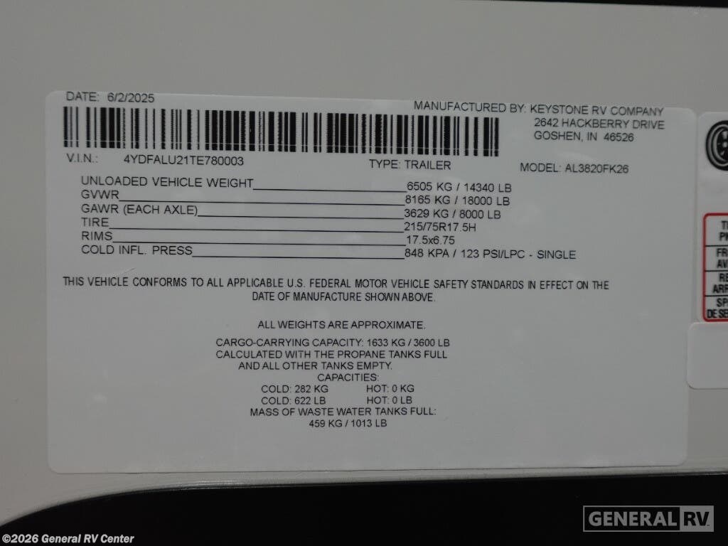 Request More Info on this 2026 Keystone Alpine 3820FK Offered for sale by General RV Center