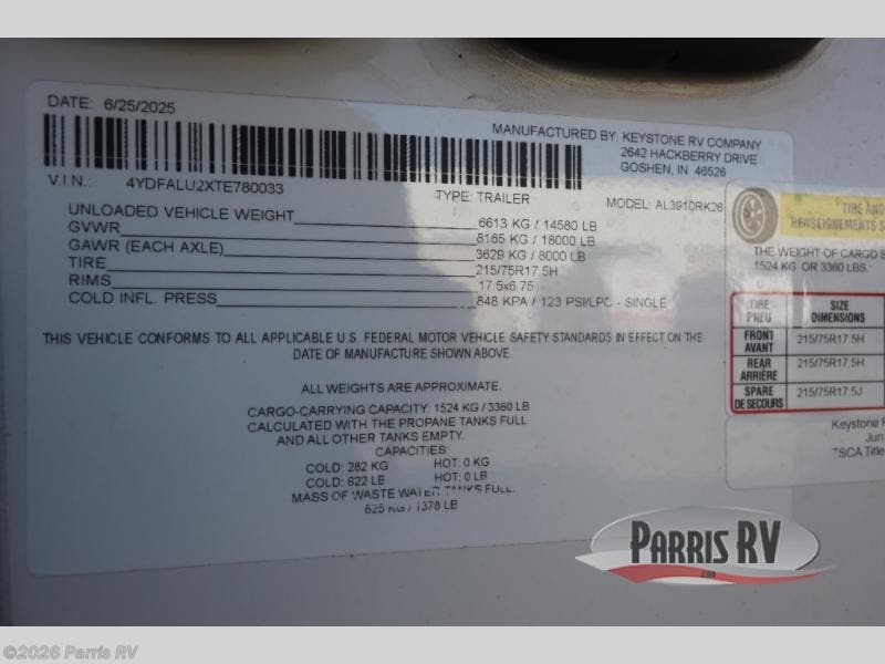 Request More Info on this 2026 Keystone Alpine 3910RK Offered for sale by Parris RV