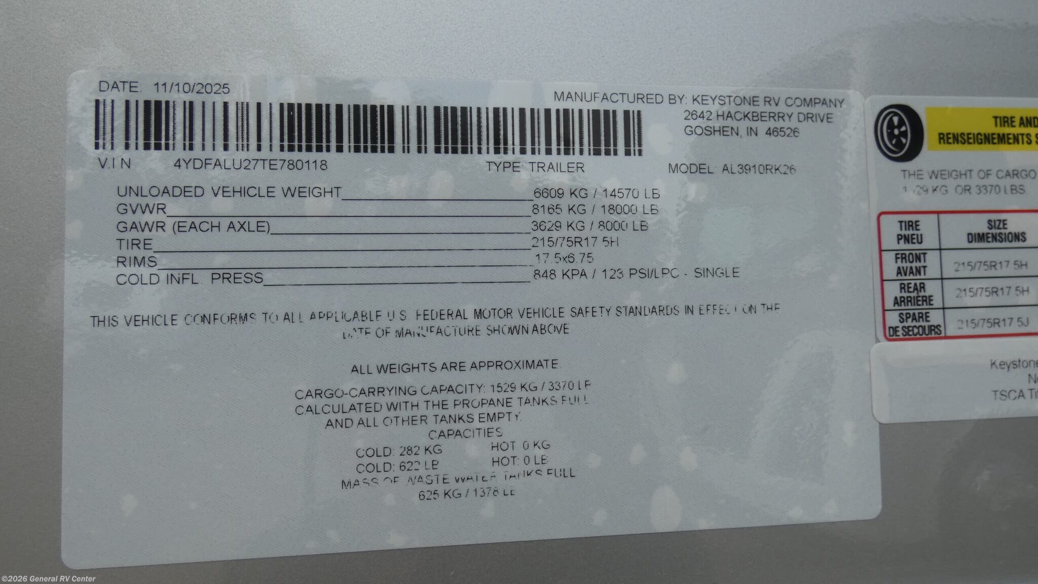 2026 Keystone Alpine 3910RK Specifications