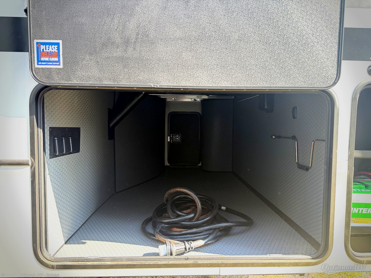 The whole gang will love camping in this fifth wheel since there is space for everyone! A front master bedroom includes a king bed slide out, master closet, and stackable washer and dryer prep if you choose to go full-time. Your guests or little ones will love the middle bunkhouse with a flip bunk above a hide-a-bed sofa, along with a pull-out table and storage space. Everyone can meet in the living area which features dual opposing slides for more space, theater seating, a sleeper sofa, and a U-shaped dinette, providing even more sleeping space. And check out the rear kitchen with its wrap-around counter space, Furrion appliances, and large pantry to keep snacks stocked!