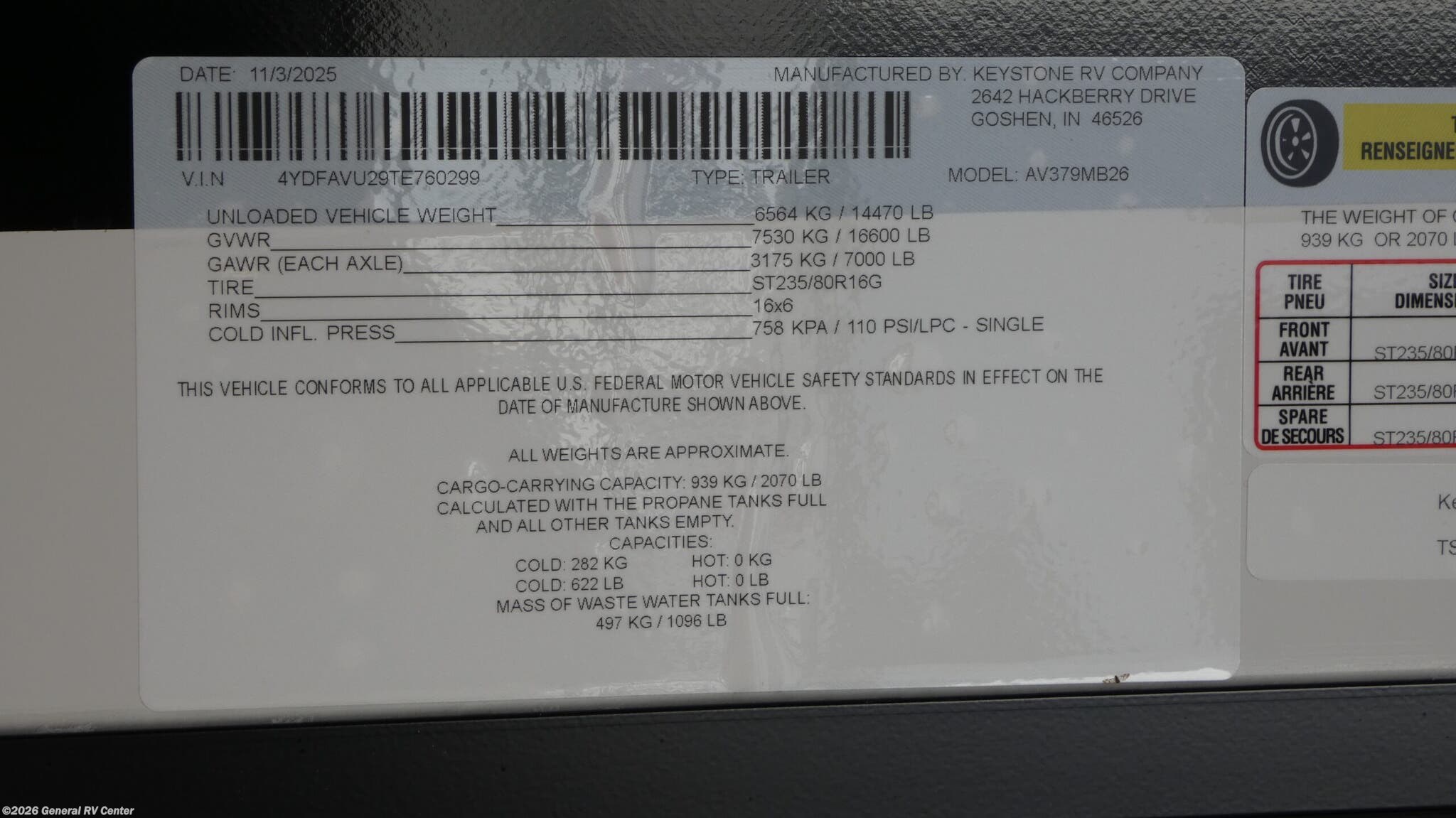 2026 Keystone Alpine Avalanche Edition 379MB Specifications