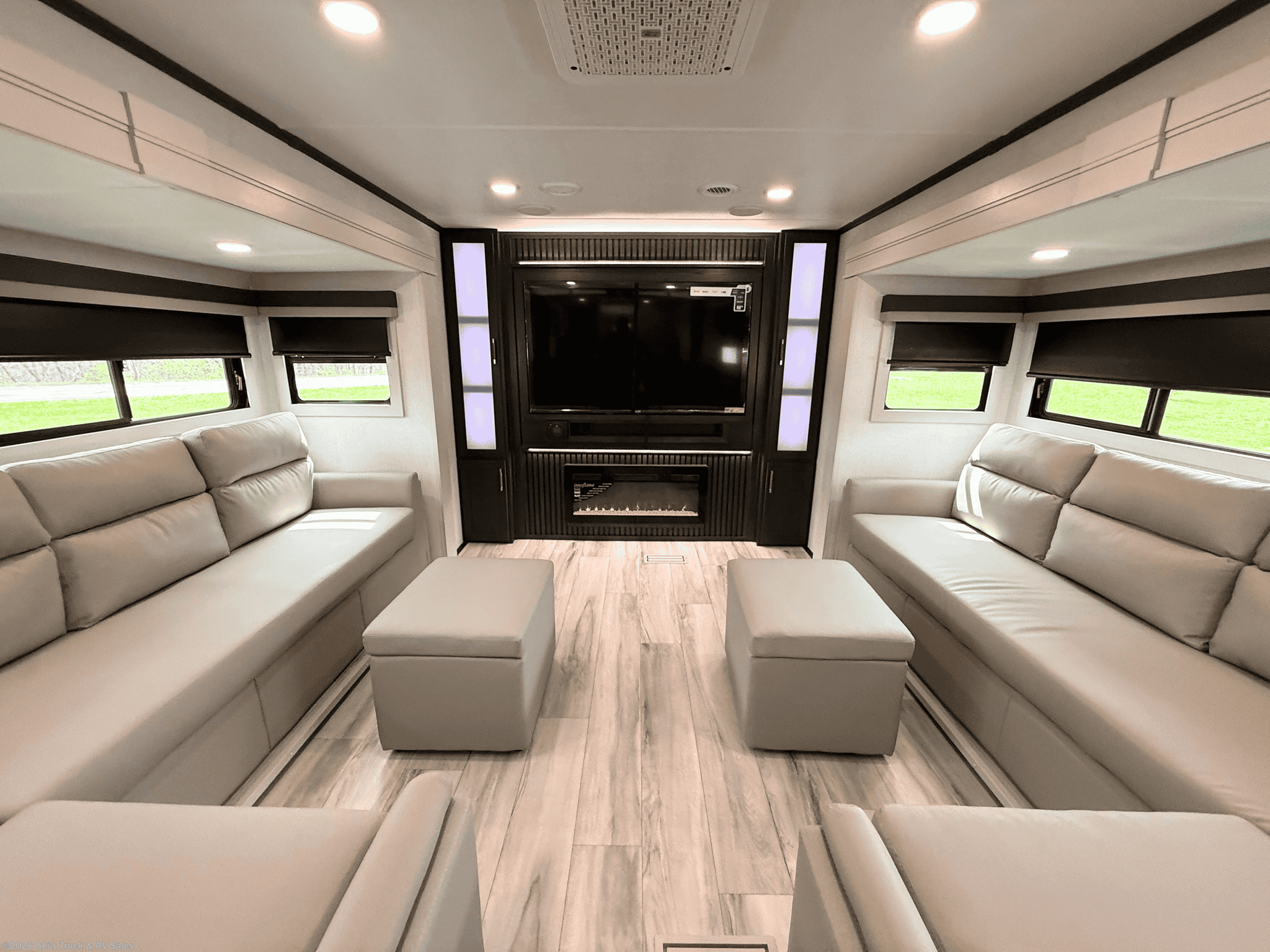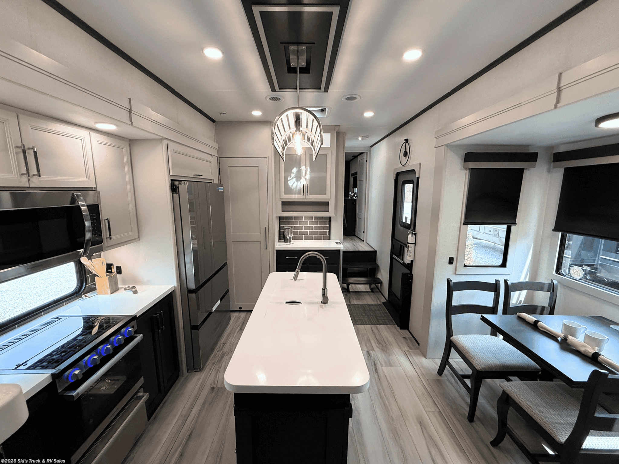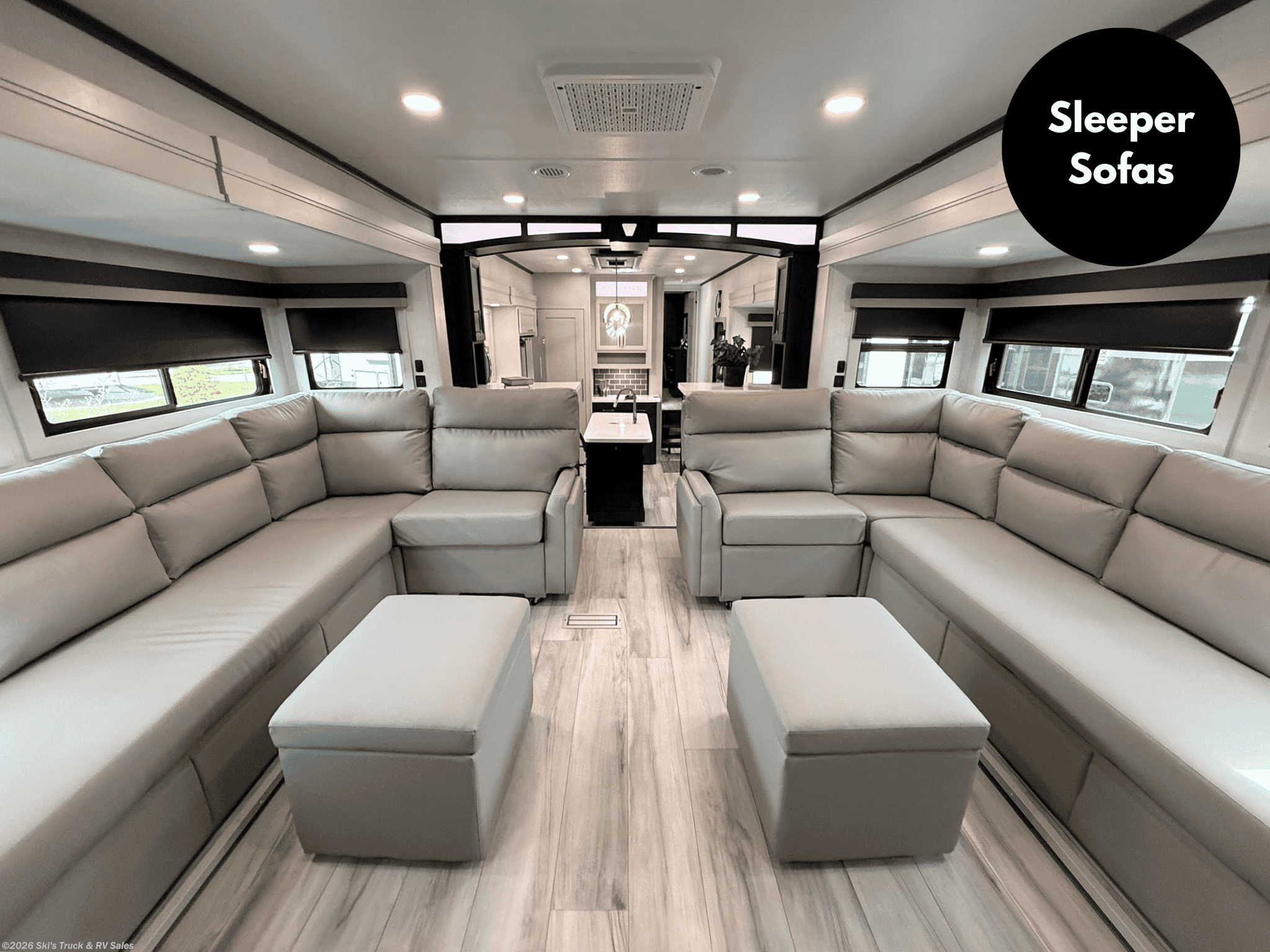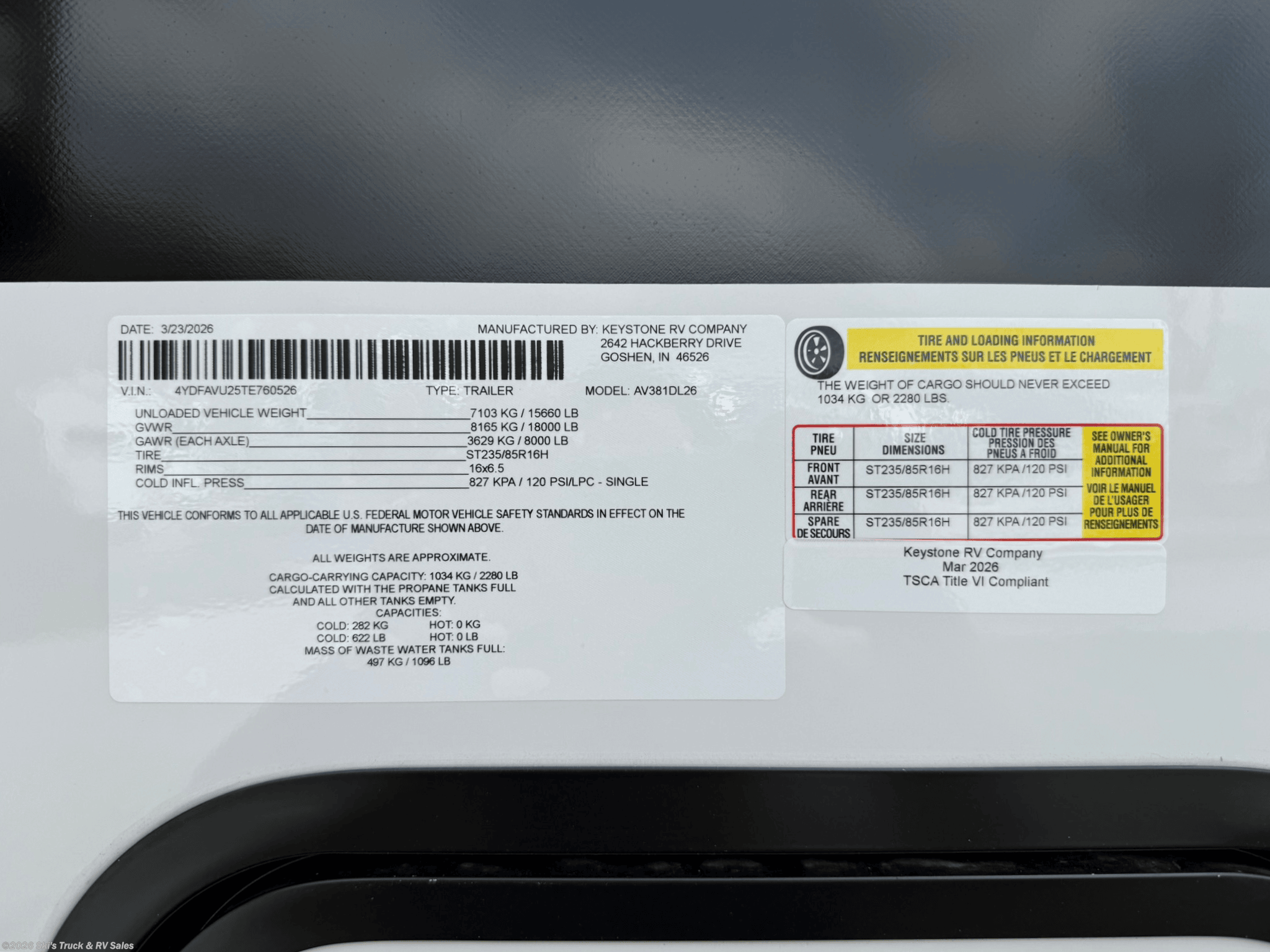 2026 Keystone Alpine Avalanche Edition 381DL Fifth Wheel; 42 Foot; 5 Slides with Toppers; Sleeps 6; 50 Amp; Hitch Weight: 2,900 Lbs.; Dry Weight: 15,660 Lbs.; Auto Leveling; 75 Gal. Fresh Water Cap.; 49 Gal. Black Water Cap.; 83 Gal. Gray Water Cap.; Two 30 Lbs. Propane Tanks; Two ACs: 15,000 / 15,000 BTUs (Wired for Third AC); 35,000 BTU Furnace; 20 C.F. (12V) Refrigerator; On Demand Water Heater; Microwave; 3-Burner Stove/Oven; Three TV Jacks; 65 In. TV; AM/FM; Speakers; One Fireplace; Pantry; Stainless Steel Sink; Solid Surface Countertops; Free Standing Dinette; Two L Shaped Sofas with Ottomans; King Bed; One Bathroom with Shower/Sitting Area; 16 Foot Power Awning with LED Lights; Solar Package; Backup Camera Prep.; Outside Shower; Lots of Exterior Storage; Foldup Steps; Grab Handle; Roof Ladder; Rear Hitch; Key Alike System; Battery Disconnect; Black Tank Flush; Climate Package; Tinted Windows; Roller Shades; Lots of Windows; Aluminum Wheels; Spare Tire; Road Armor Pin Box; One Year Limited Warranty; Financing Available; Great Floorplan in this Fifth Wheel: $83,995. Call 765-344-1111 or visit us online at for more information and photos.