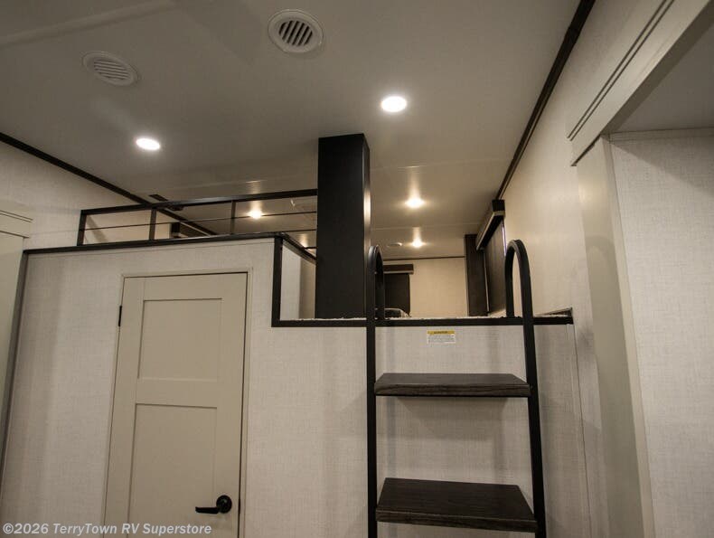 Get ready for family fun in this fifth wheel offering a front master bedroom with a king-size bed slide, plus a second master bedroom for your guests! The second bedroom includes a queen-size bed slide, a loft above the bedroom that sleeps three more, plus a rear full bathroom including a unique rear entry/exit door. And both entrances include the LCl SolidStep. The main living and kitchen area offers dual opposing slides and include theater seating, a free standing dinette, a fireplace, a center island and full kitchen amenities to feed your entire crew.