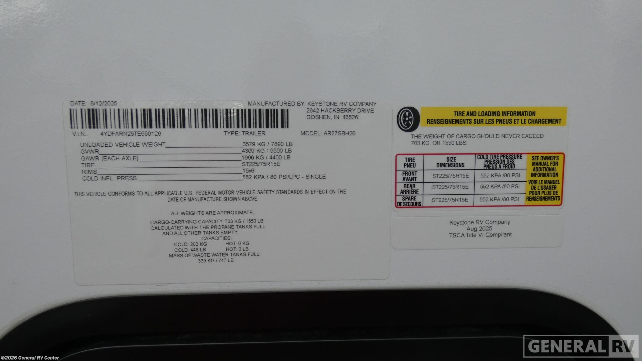 - VIN4YDFARN25TE550126