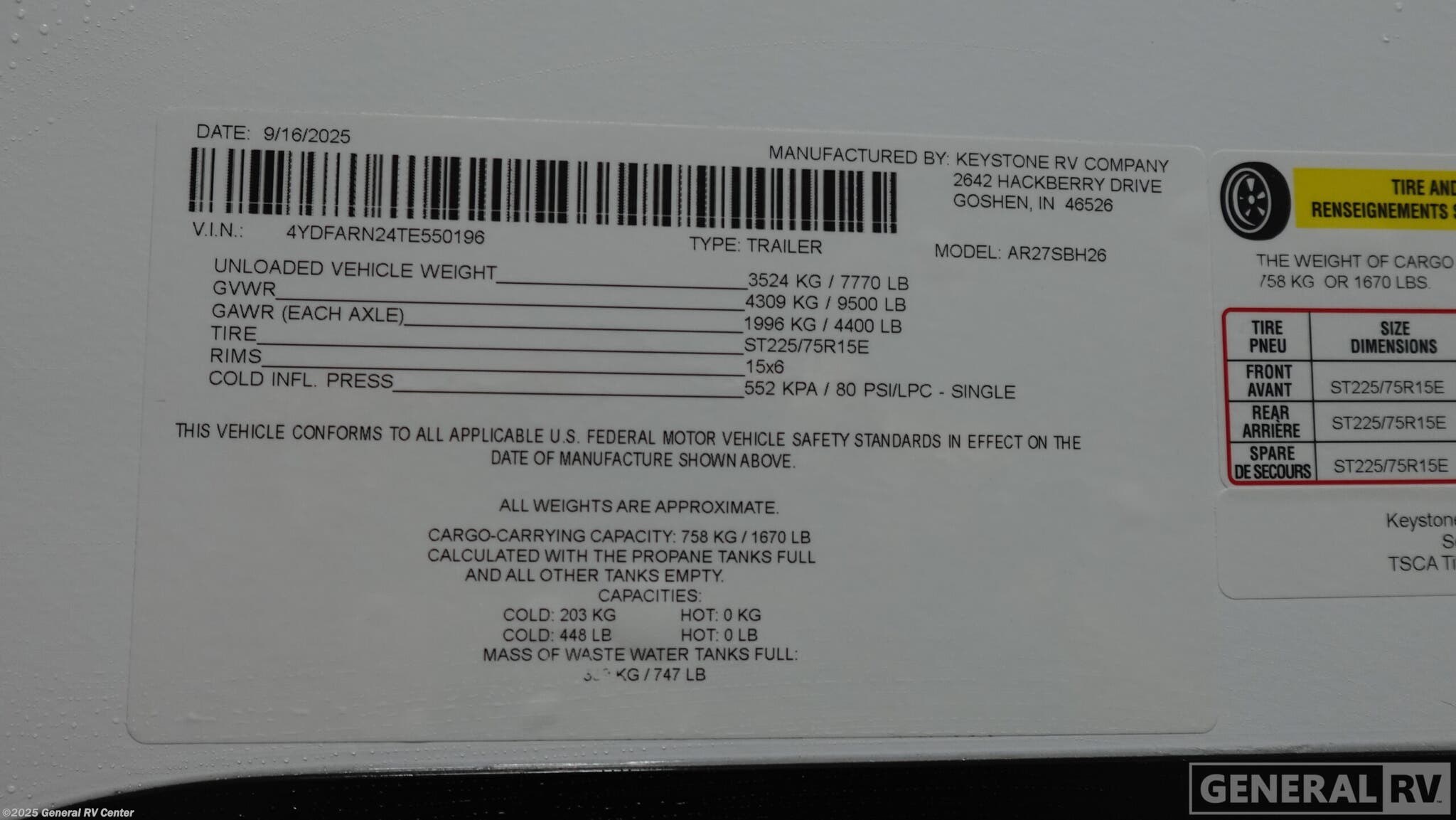 Request More Info on this 2026 Keystone Arcadia 27SBH Offered for sale by General RV Center