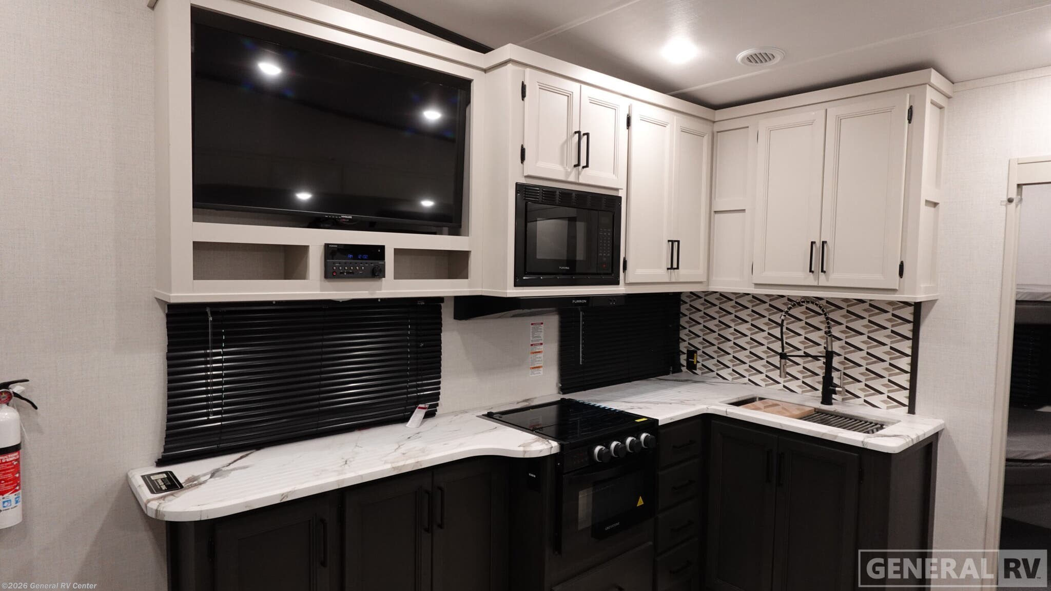 Experience the perfect blend of comfort and adventure with the 2026 Keystone Arcadia Select 27SBH. This thoughtfully designed RV offers ample space for up to ten travelers, making it ideal for family getaways or road trips with friends. The inviting interior features a center kitchen equipped with a full-size electric refrigerator and a three-burner cooktop, ensuring you can easily prepare meals on the go. The center living area, complete with a convertible sofa, is perfect for relaxing after a day of exploration. The 27SBH floorplan is designed with versatility in mind, boasting bunk beds and a cozy queen bed in the front bedroom for a restful night's sleep. The centrally located bath offers convenience and privacy, while the powered 20-foot retractable awning provides ample shade for outdoor relaxation. With a generous cargo capacity and a dry weight of 7,751 pounds, this RV is both spacious and maneuverable. Whether you're embarking on a weekend getaway or an extended journey, the Arcadia Select 27SBH is your home away from home. For more information, visit your nearest General RV dealership.