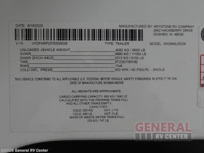 Request More Info on this 2026 Keystone Arcadia Super Lite 294SLRD Offered for sale by General RV Center
