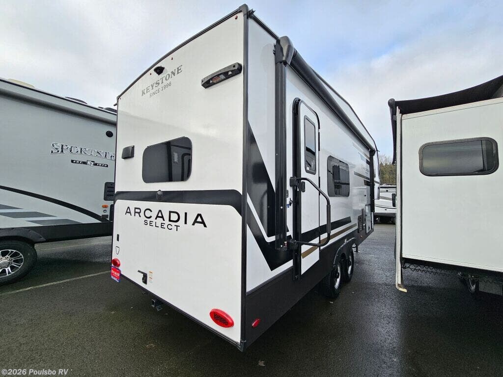 Experience the freedom of the open road with the 2026 Keystone Arcadia 21SRK, a modern new travel trailer designed to elevate your RV lifestyle. With a generous length of 26.8 feet and a dry weight of 7026 pounds, this model offers an ideal balance of spacious comfort and manageable towability. The Arcadia welcomes up to six sleepers, providing flexible accommodations perfect for families or groups seeking memorable adventures. Inside, the living area is thoughtfully arranged to maximize comfort and usability, creating a welcoming space to relax after a day of exploration. Unique features include a single slide-out that expands your living quarters, enhancing roominess without sacrificing maneuverability. Convenience is paramount with amenities such as a sturdy awning to enjoy outdoor shade and leveling jacks that simplify setup wherever you choose to park. Whether you are preparing meals or socializing, the well-planned interior supports a seamless flow that makes RV living comfortable and enjoyable. Every aspect of the 2026 Keystone Arcadia 21SRK is crafted to make your travels more convenient, comfortable, and fun. As a family owned, award winning local RV dealer with multiple locations in Sumner, Everett, Kent, and Mt Vernon Washington, Poulsbo RV here to help you find the perfect RV. Stock#: S962, VIN: 4YDFARL20TE550389.