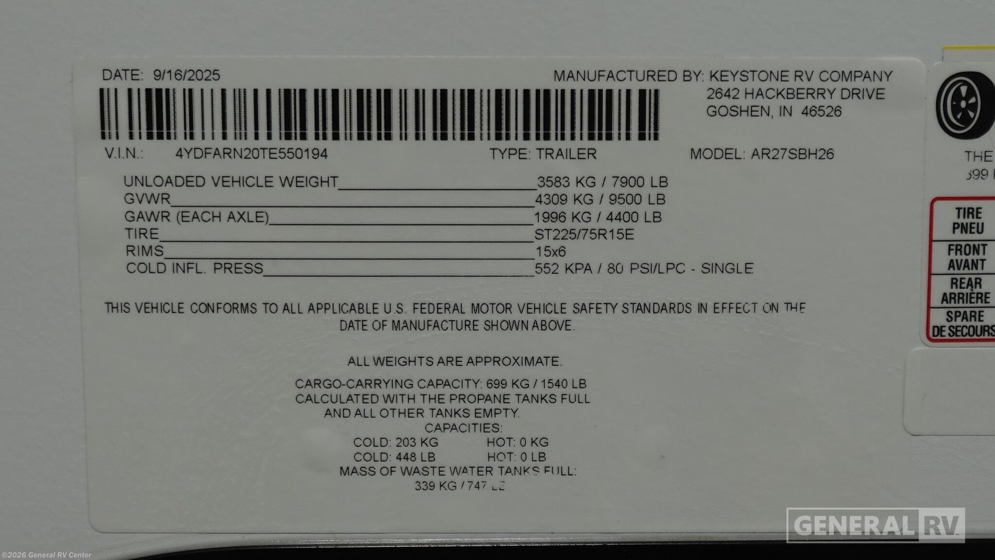 Request More Info on this 2026 Keystone Arcadia Select 27SBH Offered for sale by General RV Center