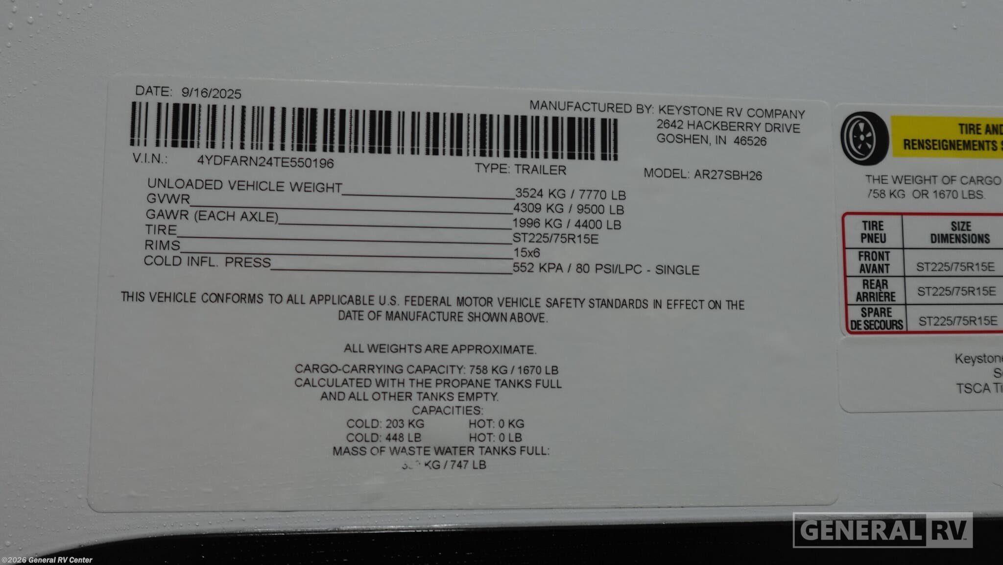 Request More Info on this 2026 Keystone Arcadia Select 27SBH Offered for sale by General RV Center