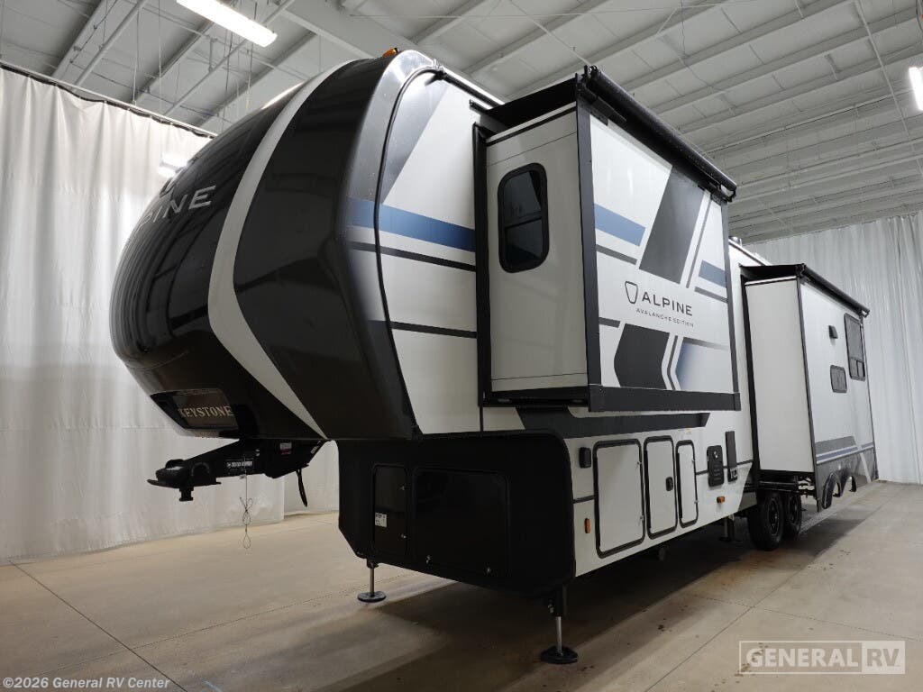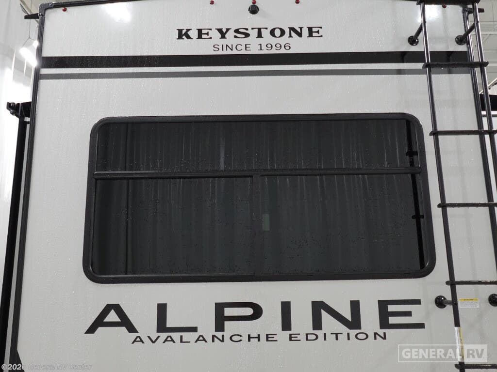 Keystone Alpine Avalanche Edition fifth wheel 302RS highlights: King Bed Kitchen Island Fireplace Hide-a-Bed Sleeper Outside Kitchen For the couple that enjoys entertaining, this fifth wheel is sure to catch your eye! Triple slides open up the interior to create an inviting place to call home while on the road. You will enjoy entertaining friends in the RV park, or even friends that come and stay a night or two since you have a hide-a-bed sofa sleeper for two! Theater seating opposite the entertainment center with 50" LED TV and fireplace makes it a cozy evening inside. The kitchen island with prep space and double sink makes it easy to be part of the conversation when prepping dinner with your guests, and you will love the refrigerator to keep your perishables fresh, along with a curio cabinet for storage and a pantry for your dry goods and snacks. You can even cook outside under the 11' Carefree awning protected from the elements at the Grill-N-Chill outside kitchen. Back inside and up the steps, you will find a front private bedroom and bath with dual entry. A king bed slide with storage beneath offers ample room for sleeping and a place to store extra blankets and things when not in use. With any Keystone luxury Alpine Avalanche Edition fifth wheel, you will experience wide-body construction that allows you to stretch out and stay awhile during any season thanks to the Polar Pack All Season Protection that includes a heated and enclosed underbelly, an Astro foil reflective layer on the roof, front and rear walls, and two static attic vents, plus more! The interior offers hardwood slide out fascia with wood accents, designer upholstered window valances with custom wood window frame, plus your choice of modern interior design. There are many more Keystone exclusives, like the Tru-Fit slide construction, the in-floor heating ducts, KeyTV™, and much more to bring you a full-packed, luxury fifth wheel!