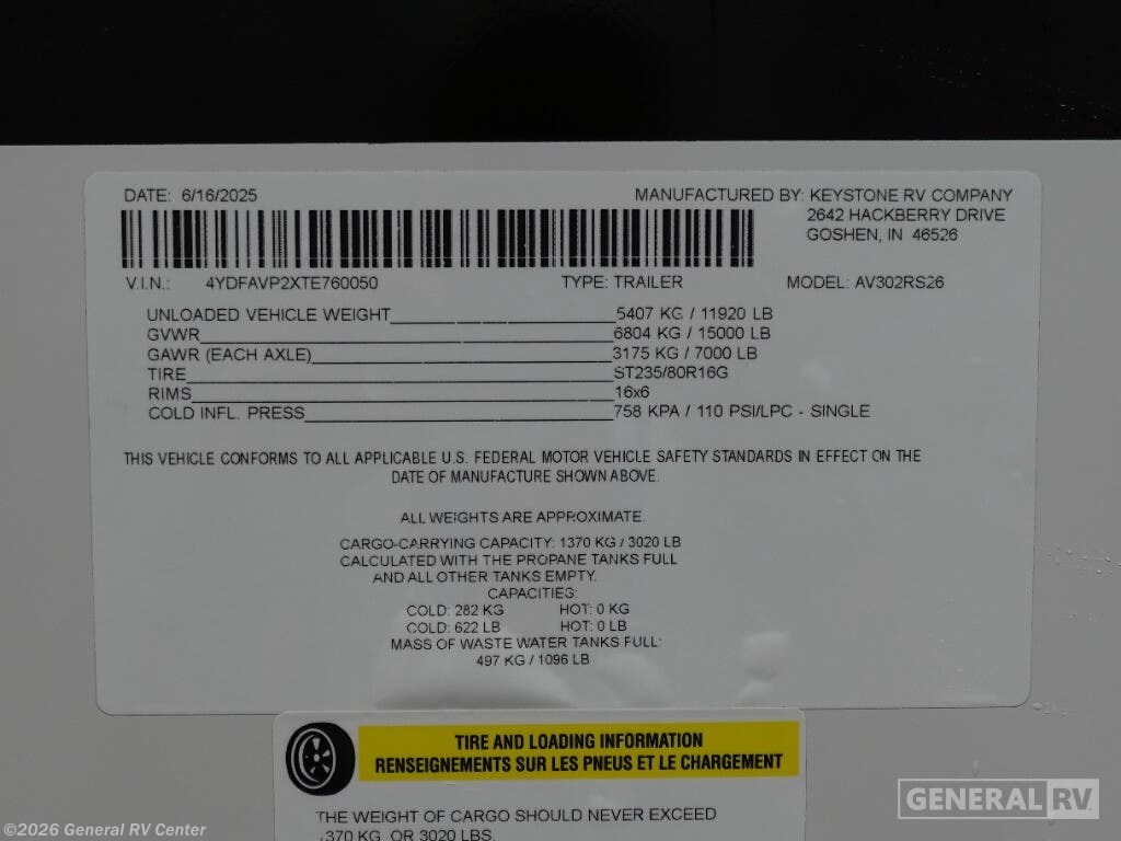 Request More Info on this 2026 Keystone Avalanche 302RS Offered for sale by General RV Center
