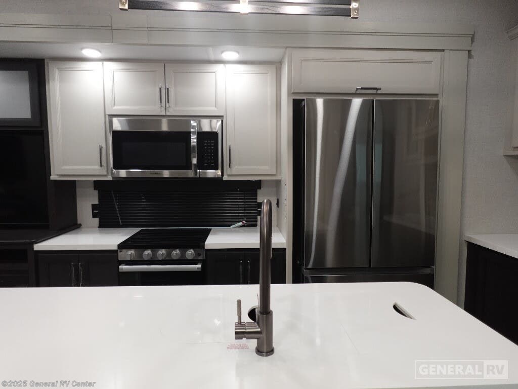 Experience the ultimate in luxury and comfort with the 2025 Keystone Avalanche 321RL. This exquisite fifth wheel is designed to make every journey memorable, boasting a spacious interior that comfortably sleeps four. The master bedroom features a plush king-size bed, while the convertible seating in the living area offers additional sleeping space for guests. The rear living area is a haven of relaxation, complete with theater seating and a cozy fireplace, perfect for unwinding after a day of adventure. The Avalanche 321RL is equipped with a full-size residential refrigerator and a well-appointed kitchen featuring a three-burner cooktop, ensuring you can prepare meals with ease. The center kitchen layout provides ample counter space and storage, making it ideal for culinary enthusiasts. The RV is prepped for a washer and dryer, adding convenience for extended stays. With its dual awnings and powered retractable shade, outdoor living is as enjoyable as the indoors. Whether you're exploring the countryside or setting up camp with friends, the Keystone Avalanche 321RL offers the perfect blend of luxury and functionality. Visit your nearest General RV Dealership to learn more and start your adventure today!