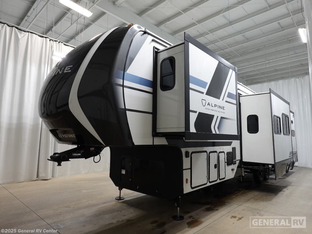 Keystone Alpine Avalanche Edition fifth wheel 366LS highlights: Five Slides King Bed Free-Standing Dinette Largest L-Shaped Sofa Desk with a Chair This rear kitchen fifth wheel makes extended stays or weekend trips to the lake enjoyable! The chef of your group will find plenty of counter space with the included kitchen island, plus there is a pantry and 18 cu. ft. residential refrigerator for food storage. A free-standing dinette provides a place to dine together, and the largest L-shaped sofa with recliners will be the perfect spot to relax with a movie. If you have guests, they could sleep here or on the hide-a-bed sofa sleeper. The dual entry bath includes a shower with a seat for added comfort, and the front master bedroom will feel just like home with its king bed slide out and master closet. There is also a dresser and stackable washer and dryer prep if you want to add those appliances! With any Keystone luxury Alpine Avalanche Edition fifth wheel, you will experience wide-body construction that allows you to stretch out and stay awhile during any season thanks to the Polar Pack All Season Protection that includes a heated and enclosed underbelly, an Astro foil reflective layer on the roof, front and rear walls, and two static attic vents, plus more! The interior offers hardwood slide out fascia with wood accents, designer upholstered window valances with custom wood window frame, plus your choice of modern interior design. There are many more Keystone exclusives, like the Tru-Fit slide construction, the in-floor heating ducts, KeyTV™, and much more to bring you a full-packed, luxury fifth wheel!
